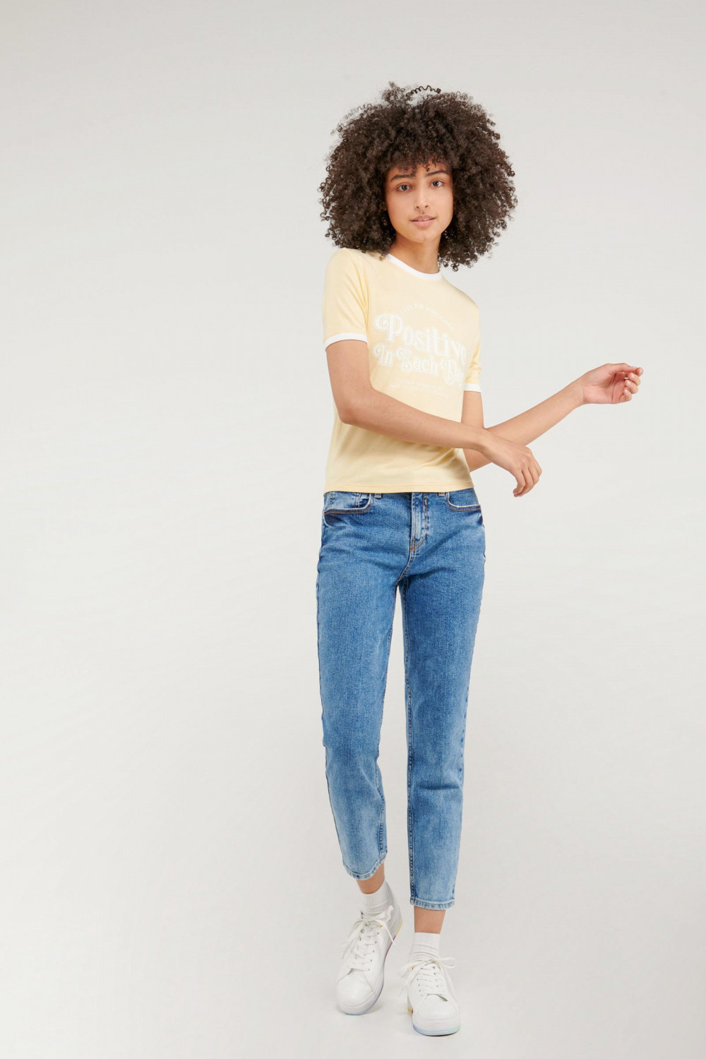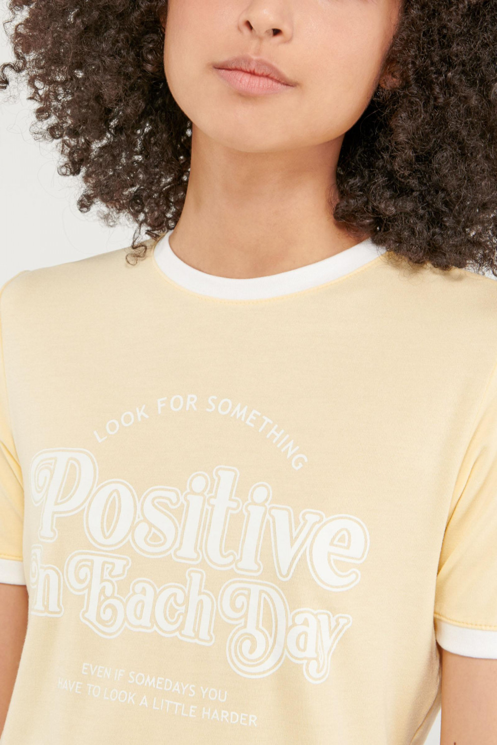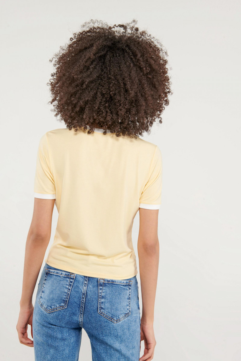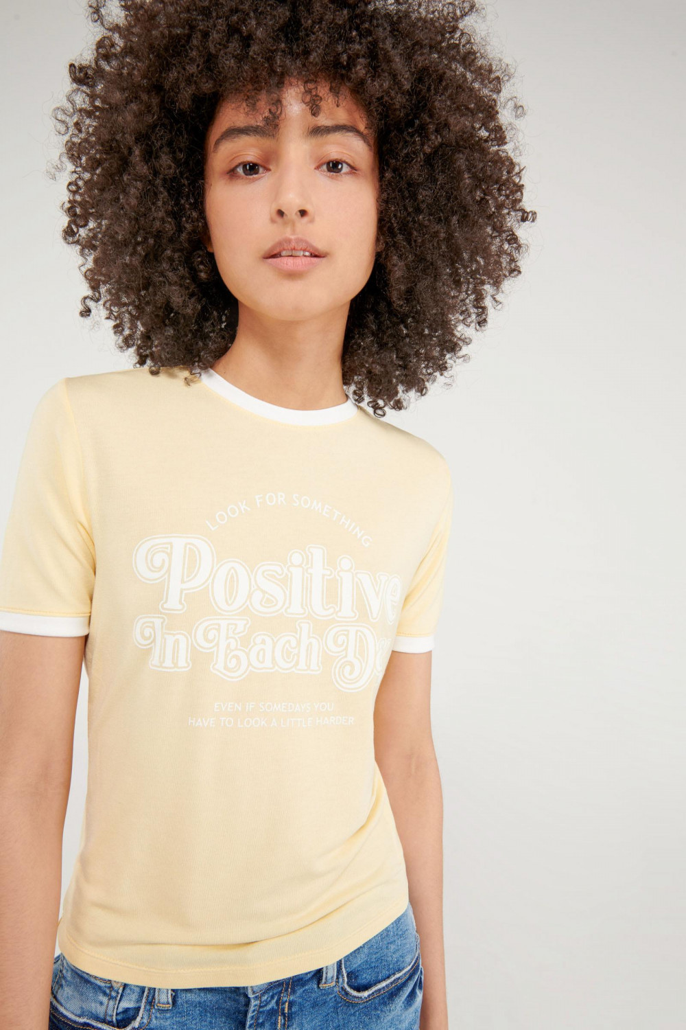 Camiseta cuello redondo para mujer, manga corta con puño en contraste, con estampado