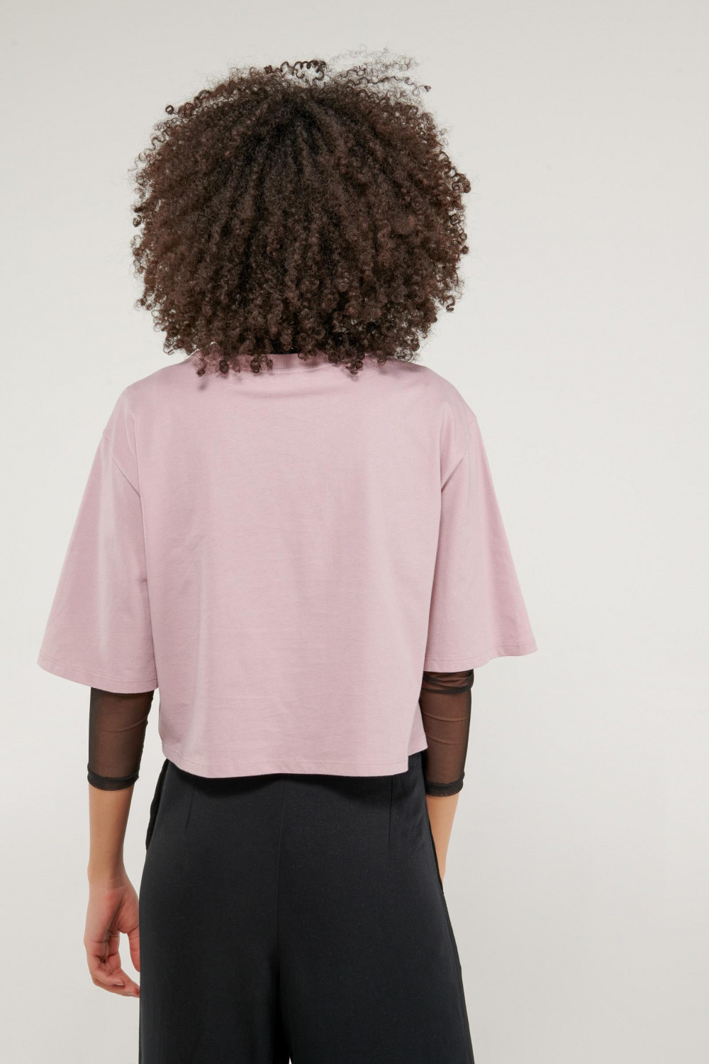 Camiseta para mujer manga corta, en tela unicolor con estampado minimalista en frente.
