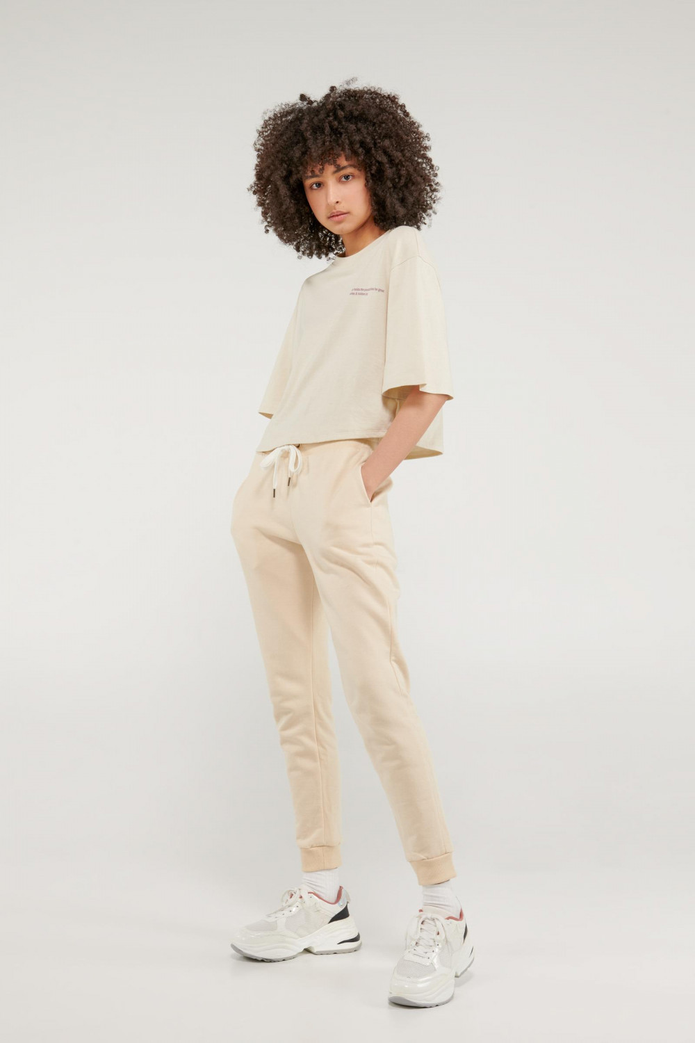 Camiseta cuello redondo para mujer, manga corta con estampado loungewear.