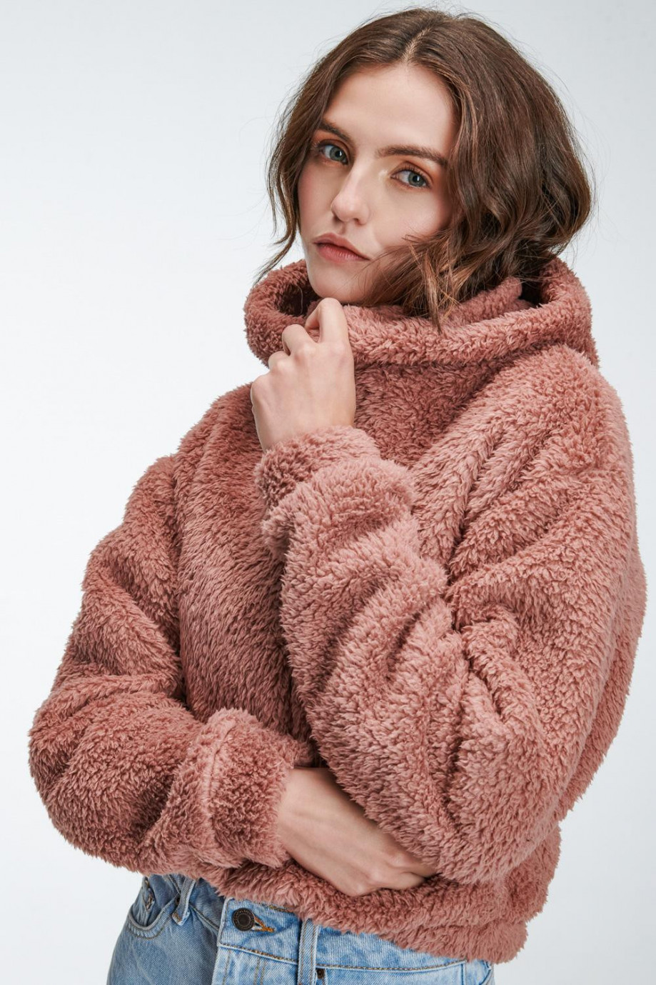 Buzo para mujer, con capota y cordón, mangas amplias con englobado en puño, sin estampado con elástico en el ruedo.