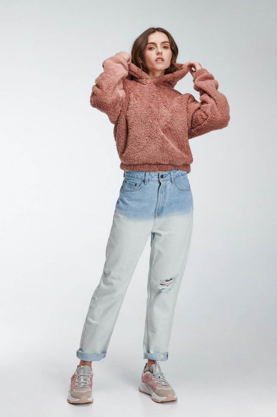 Buzo para mujer sin estampado, con capota y elástico en ruedo.