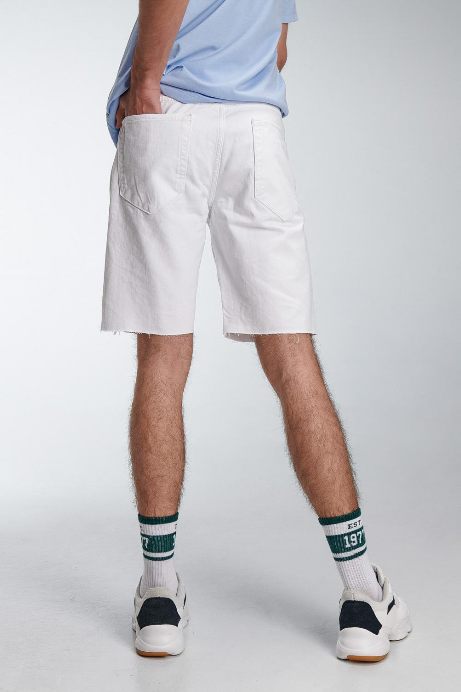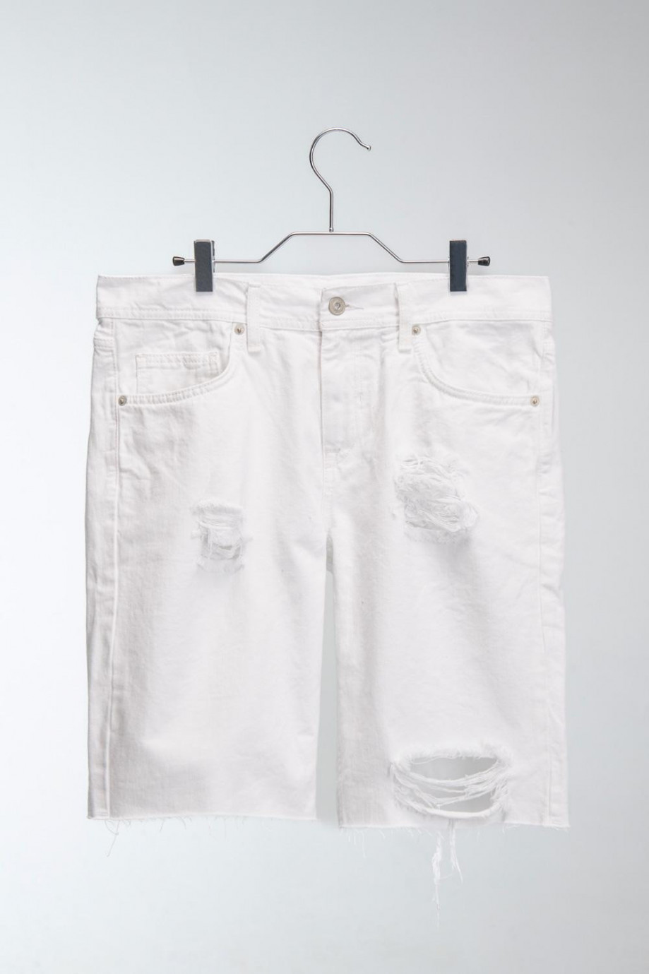 Bermuda para hombre, 5 bolsillos, tiro bajo, con lavado blanco y rotos
