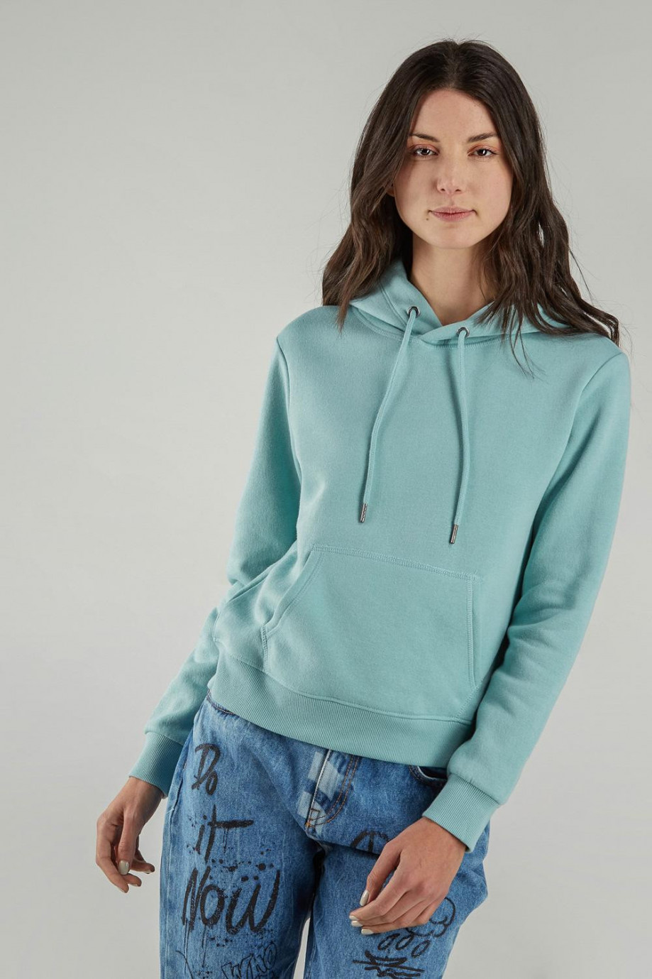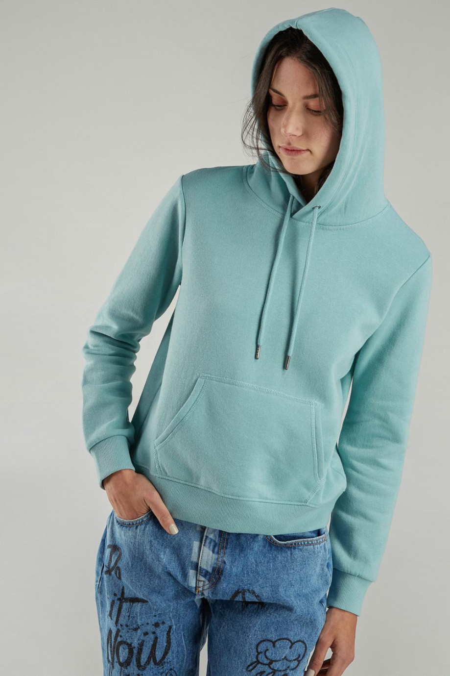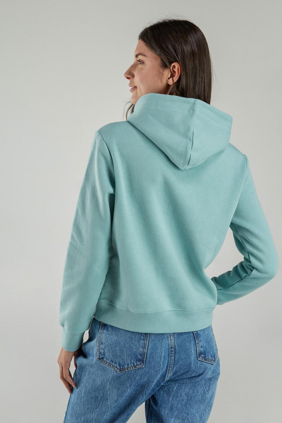 Buzo para mujer con bolsillo y capota, estampado.
