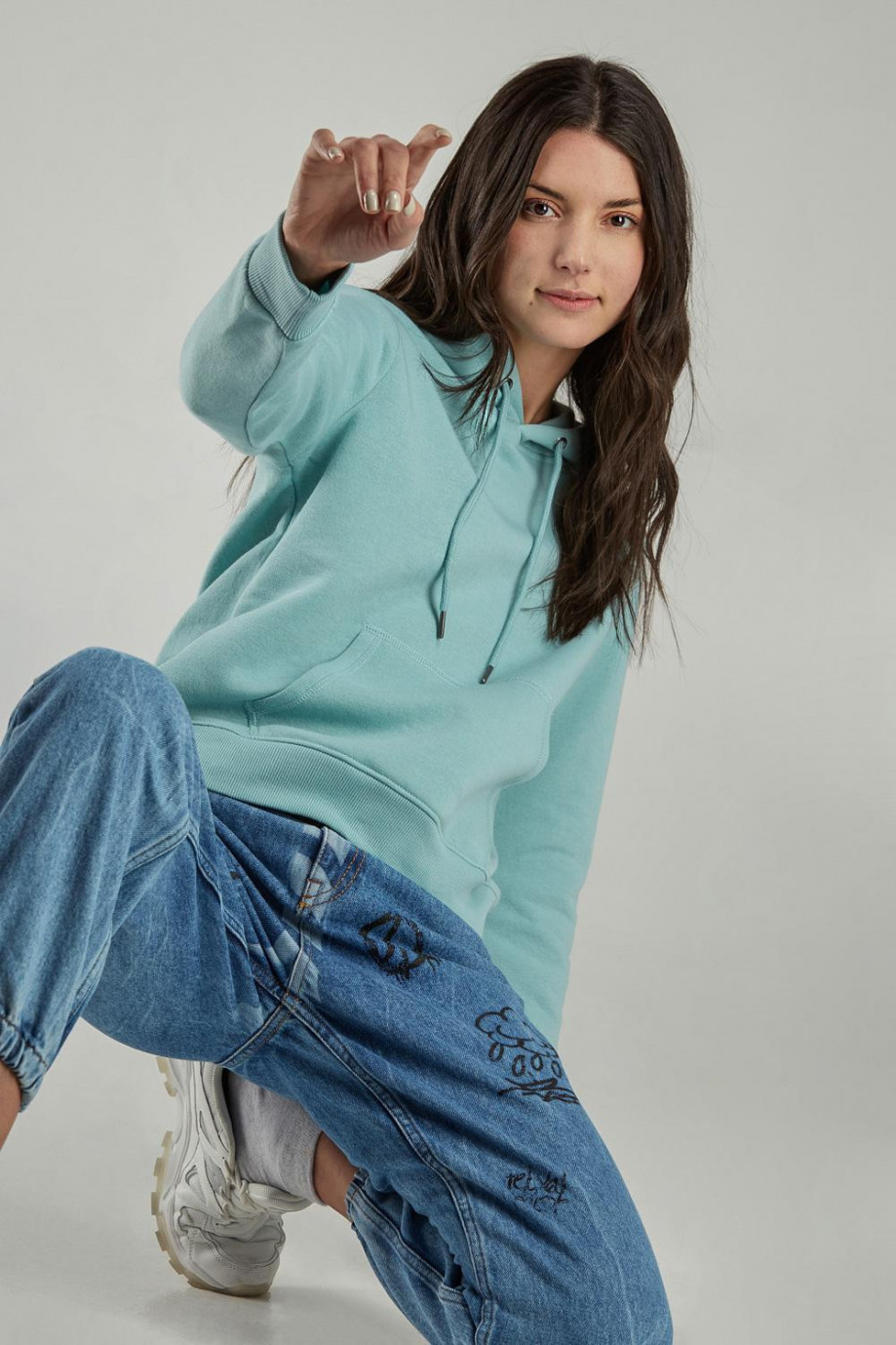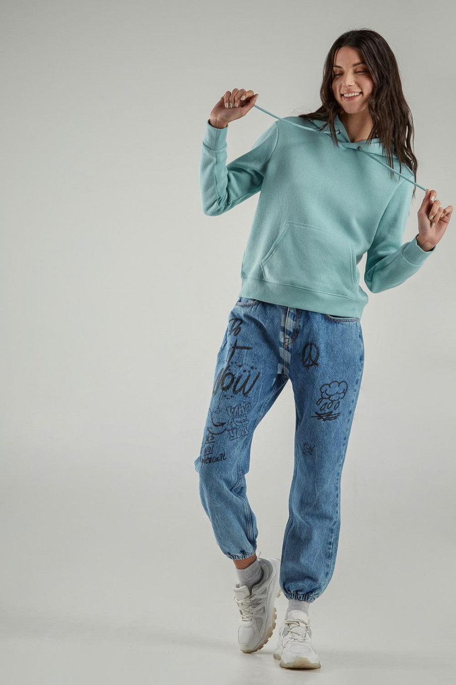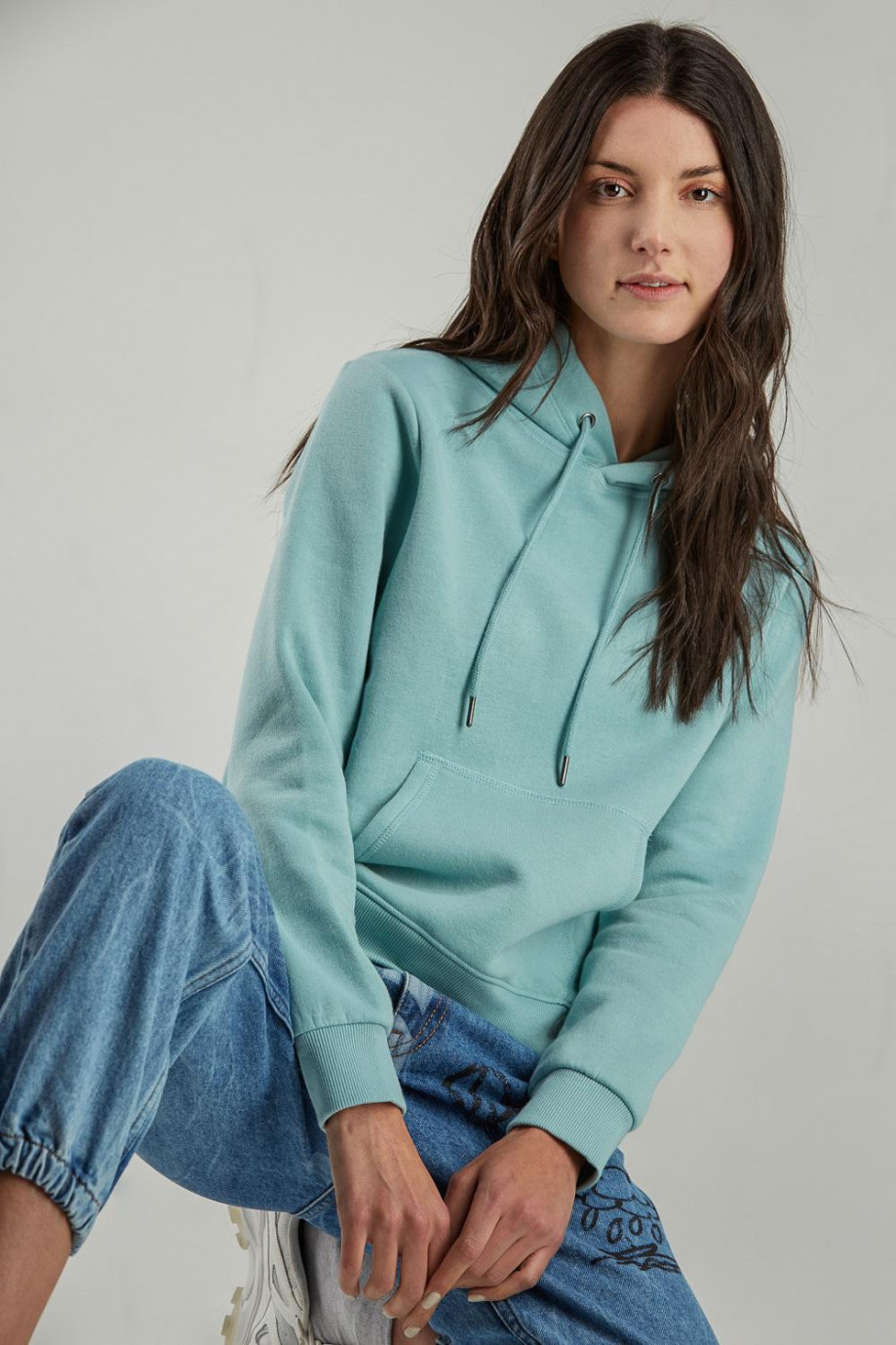Buzo para mujer con bolsillo y capota, estampado.