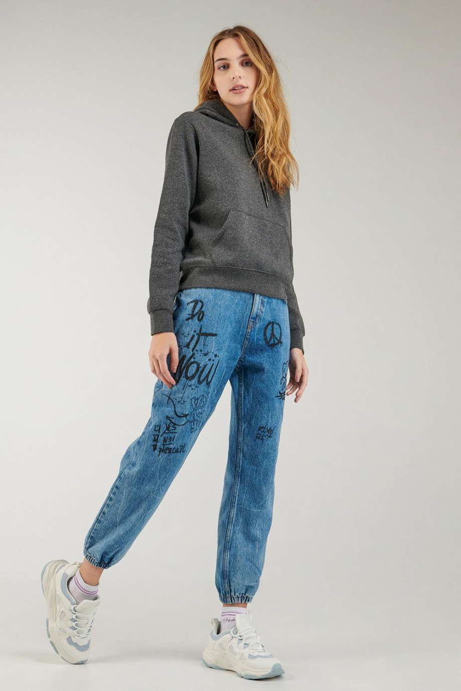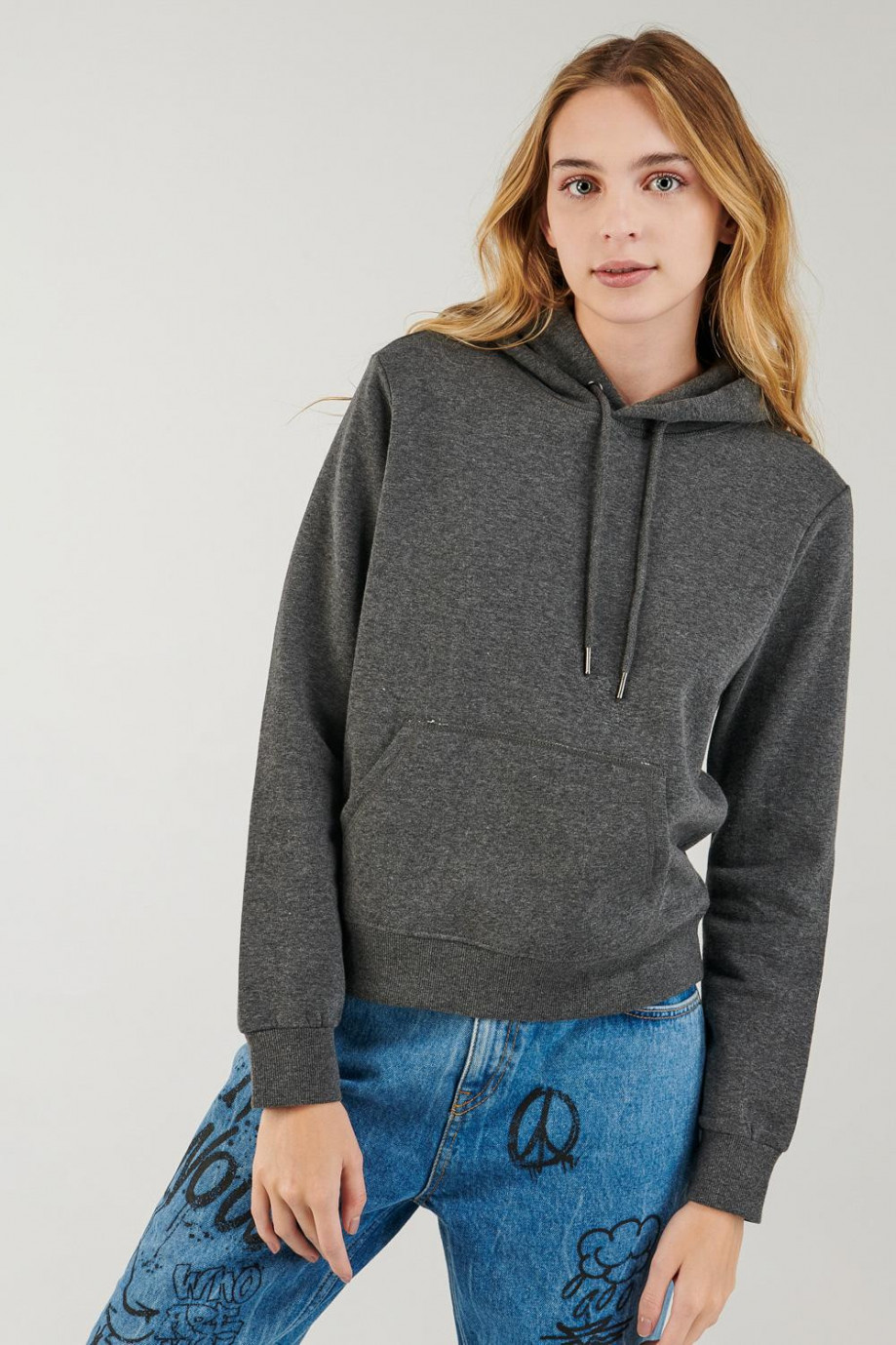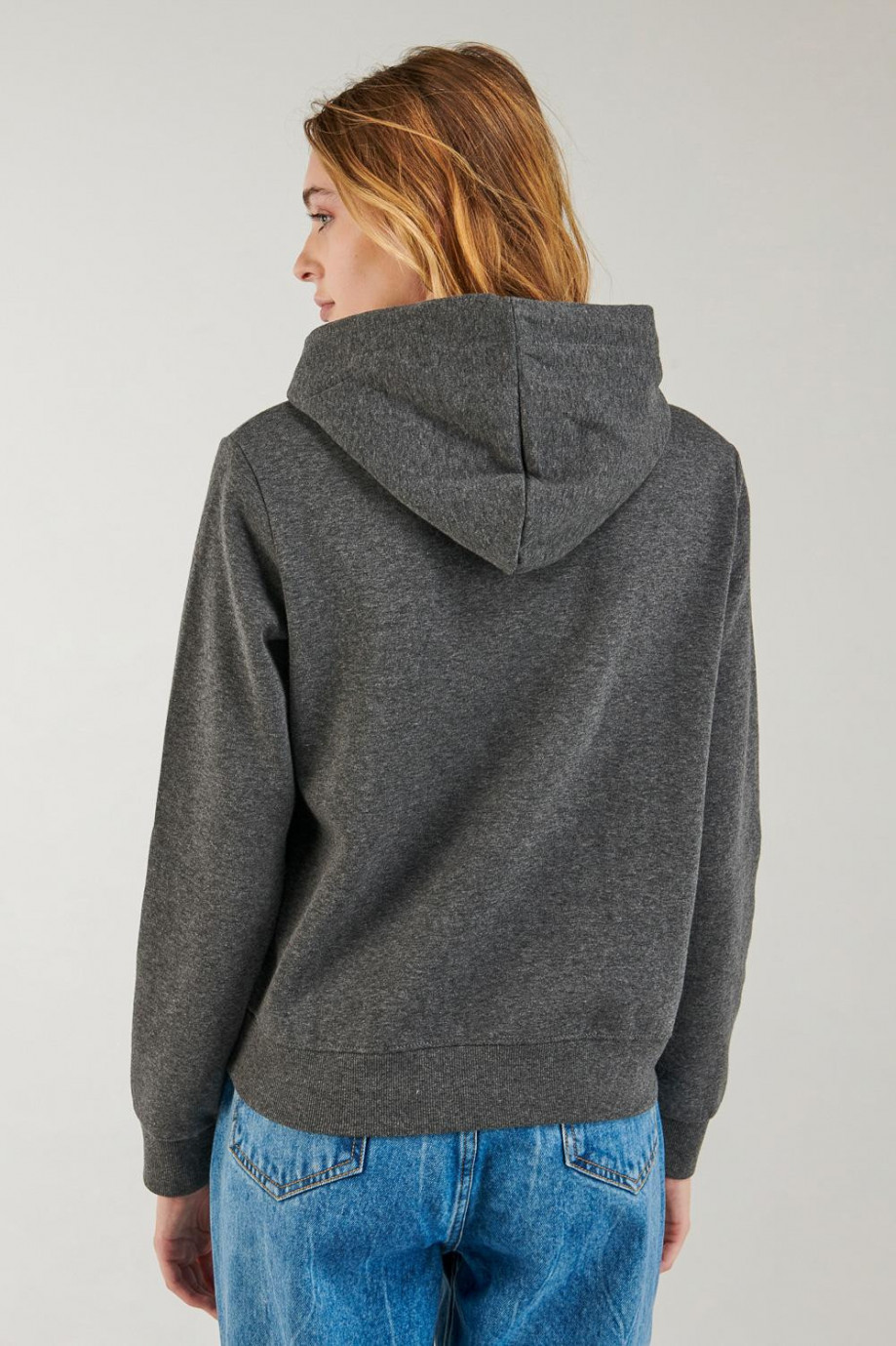 Buzo para mujer con bolsillo y capota, estampado.