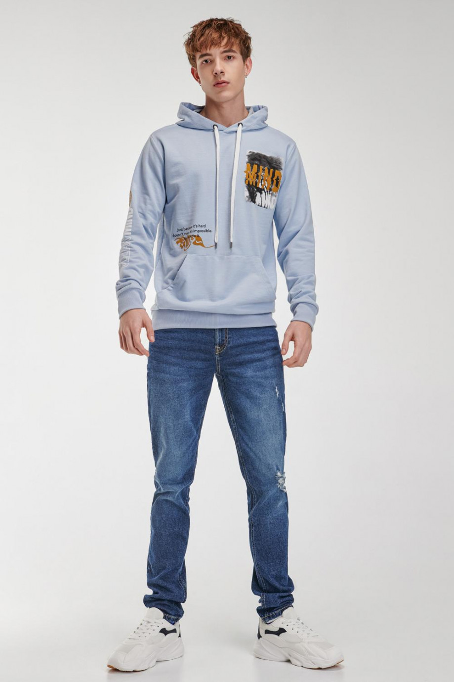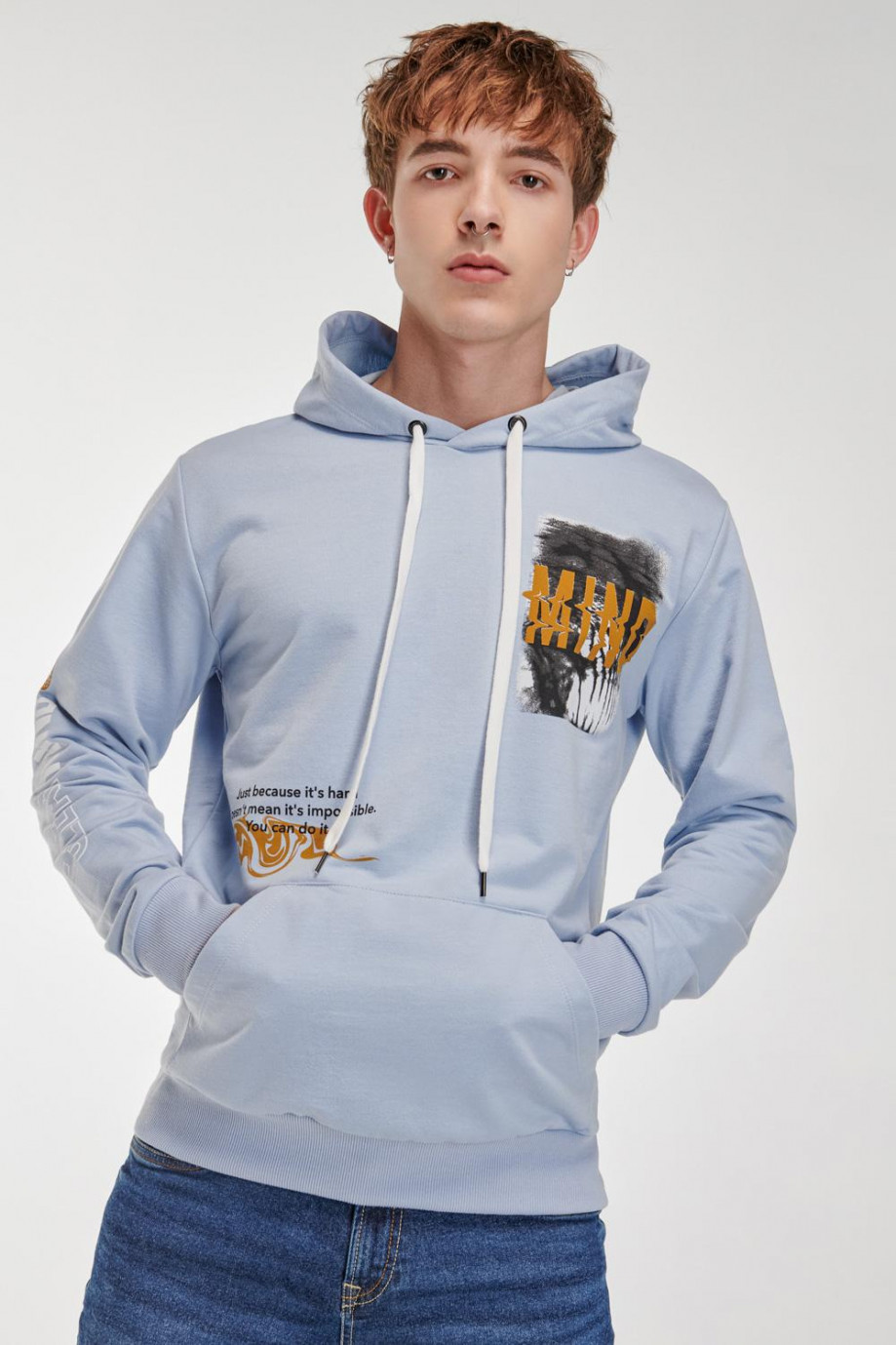 Buzo para hombre con capota, bolsillo en frente, estampado.