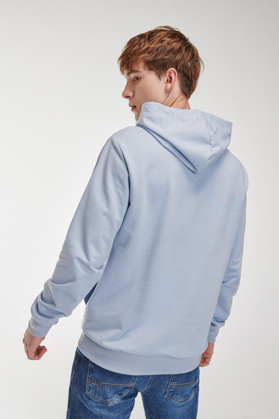 Buzo básico cerrado con capota estampado.