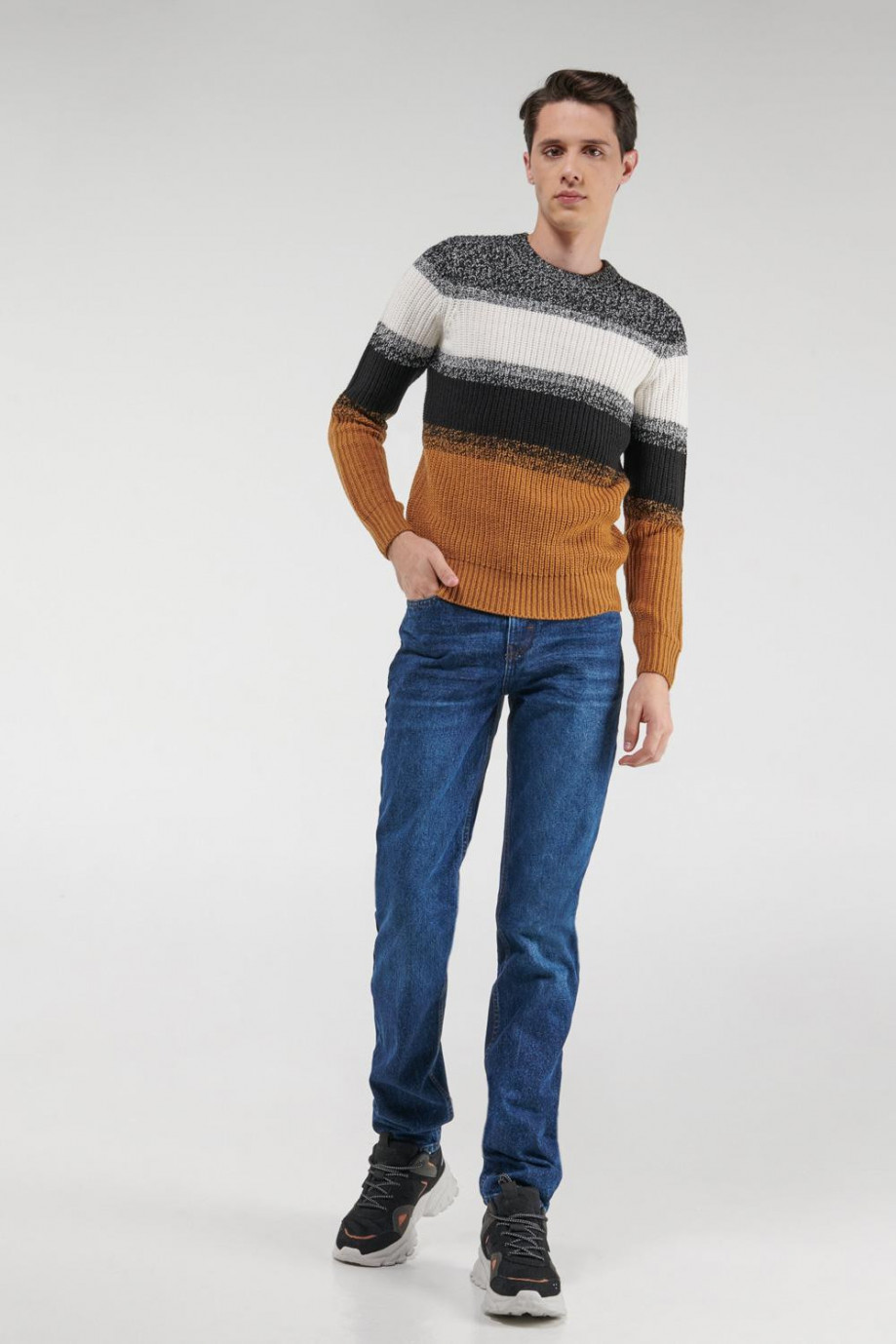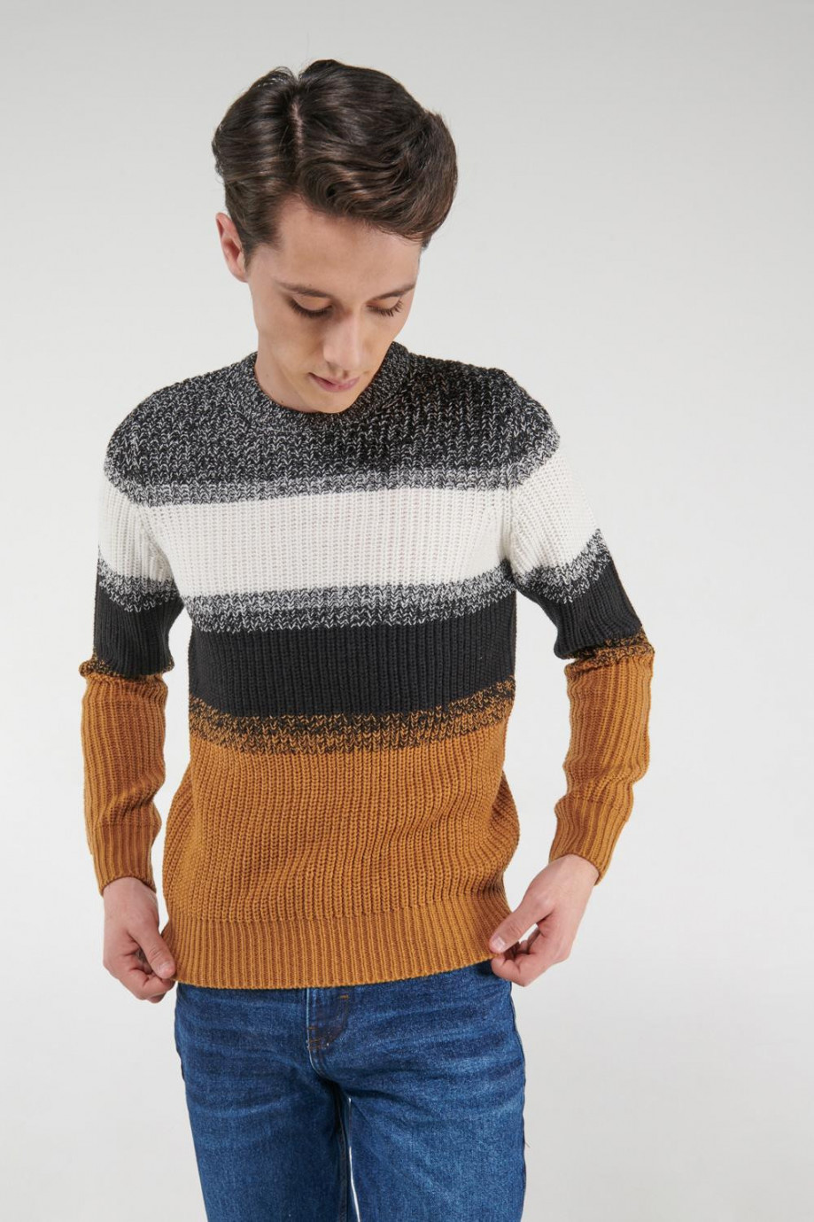 Suéter cuello redondo con rayas