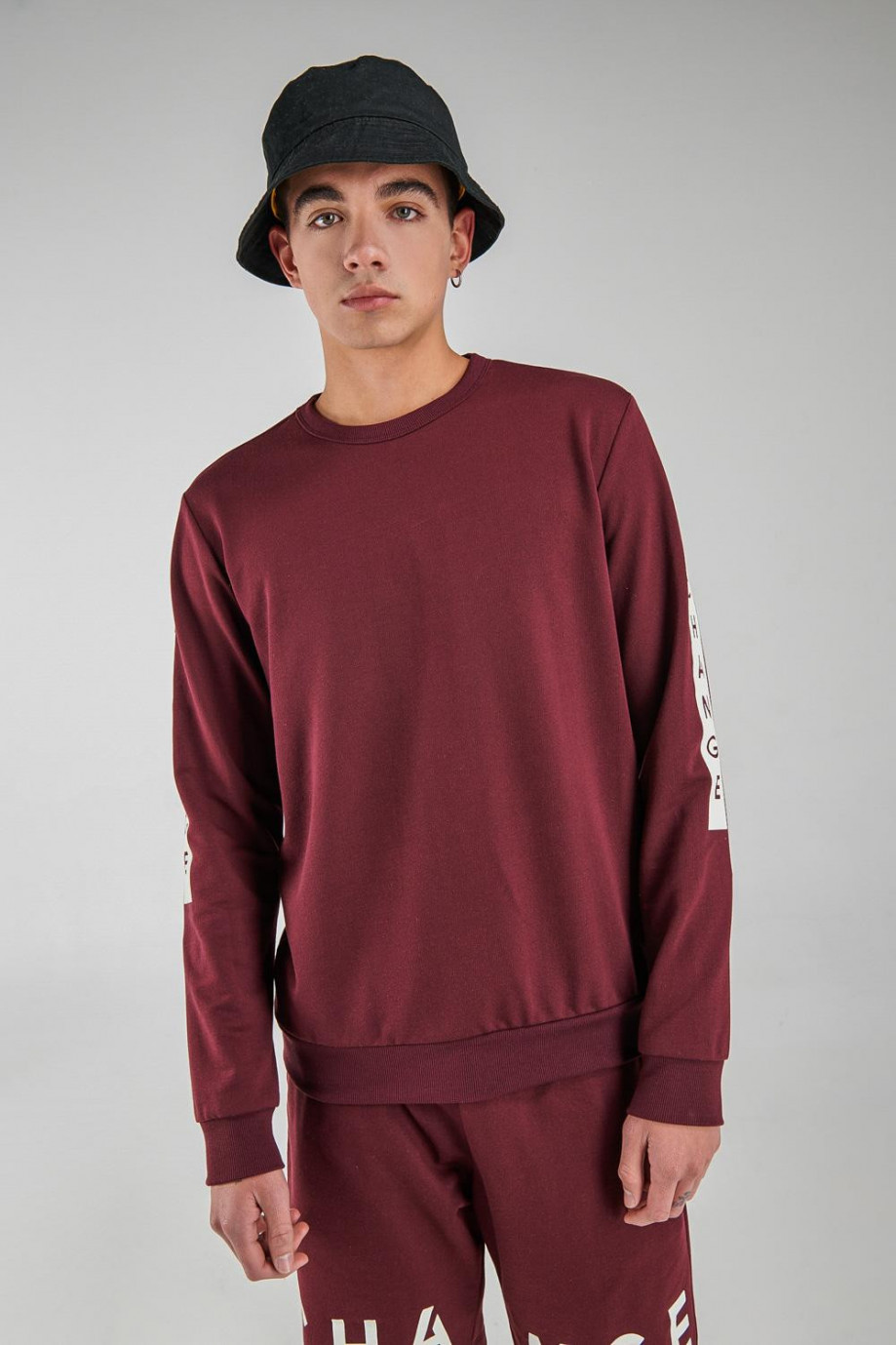 Buzo cuello redondo para hombre estampado frente.