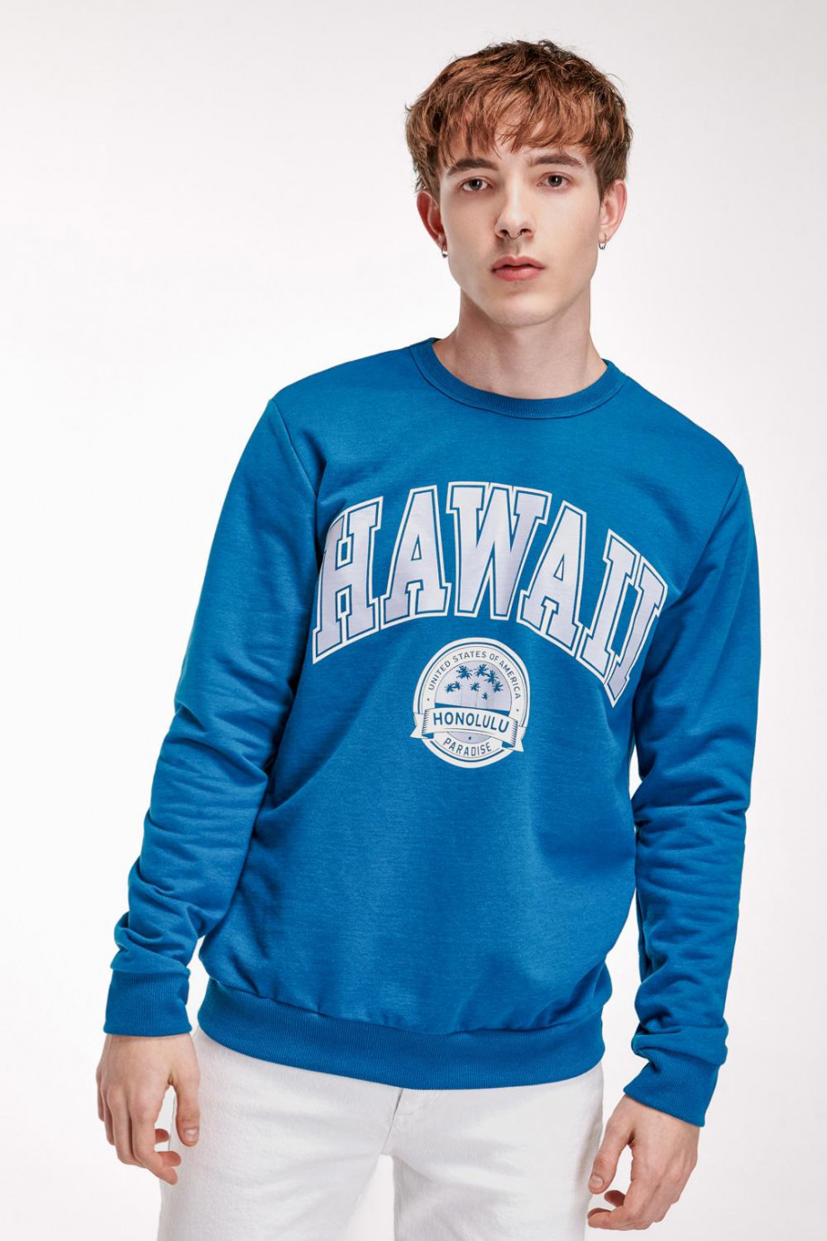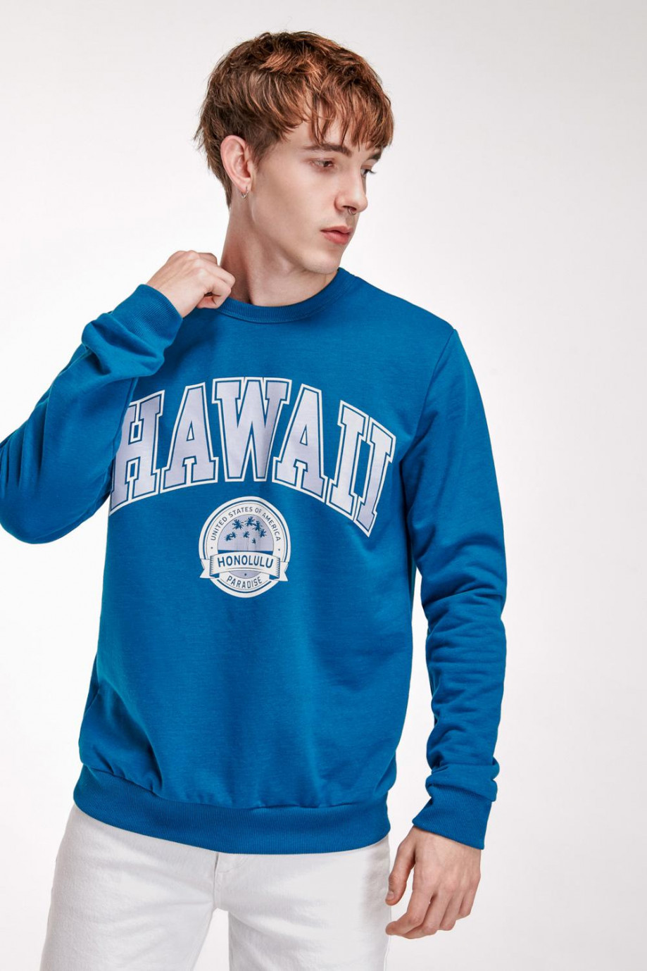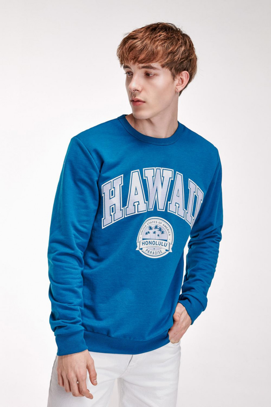 Buzo cuello redondo para hombre estampado frente.