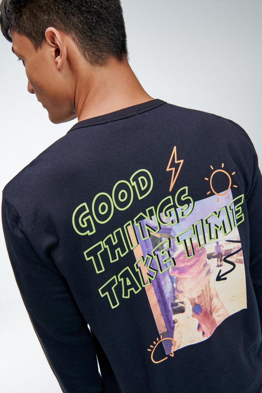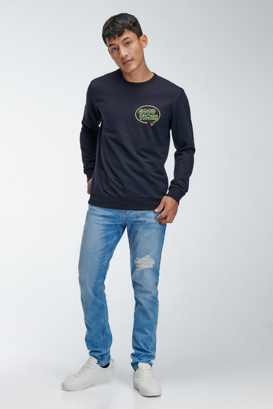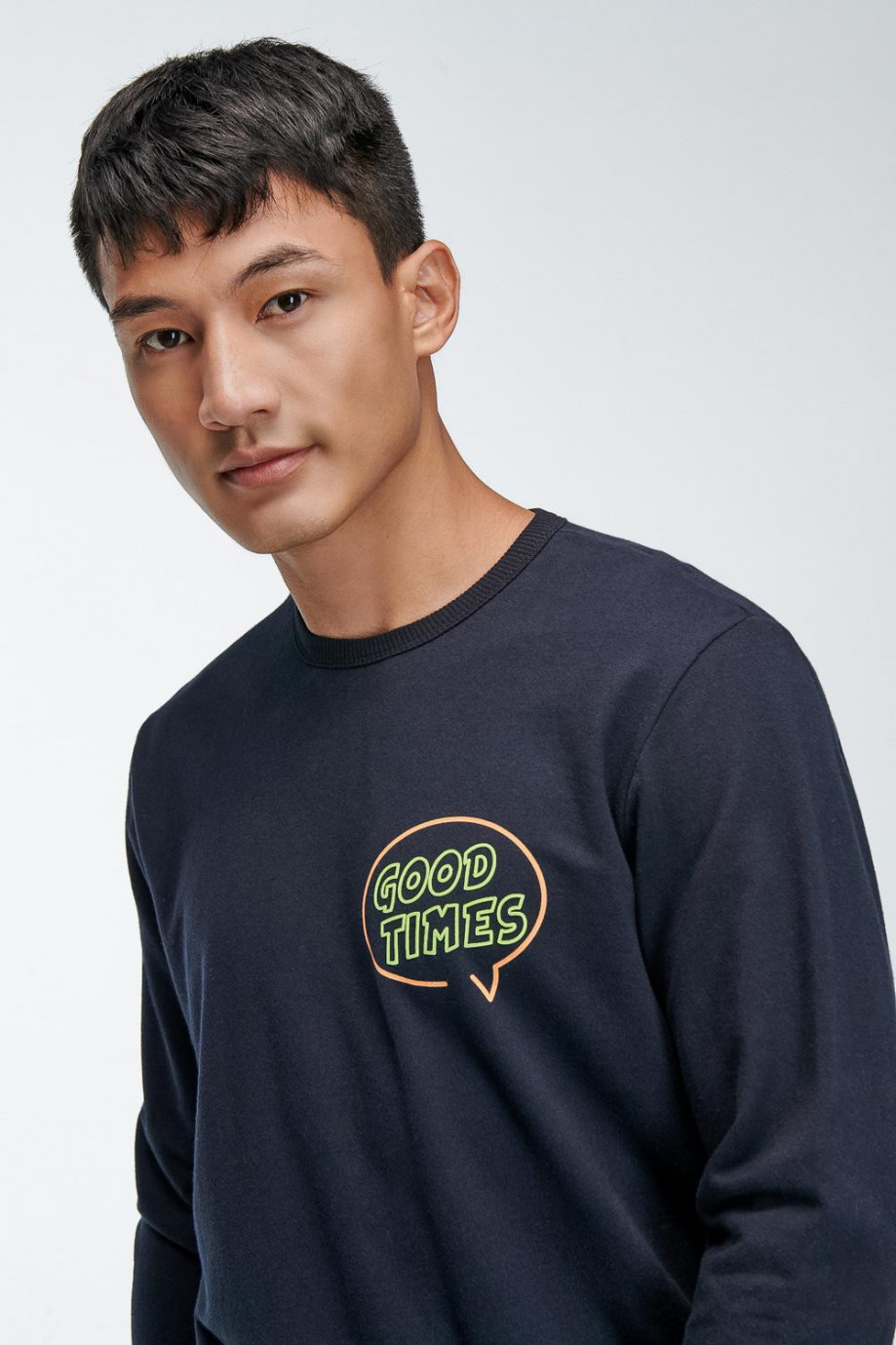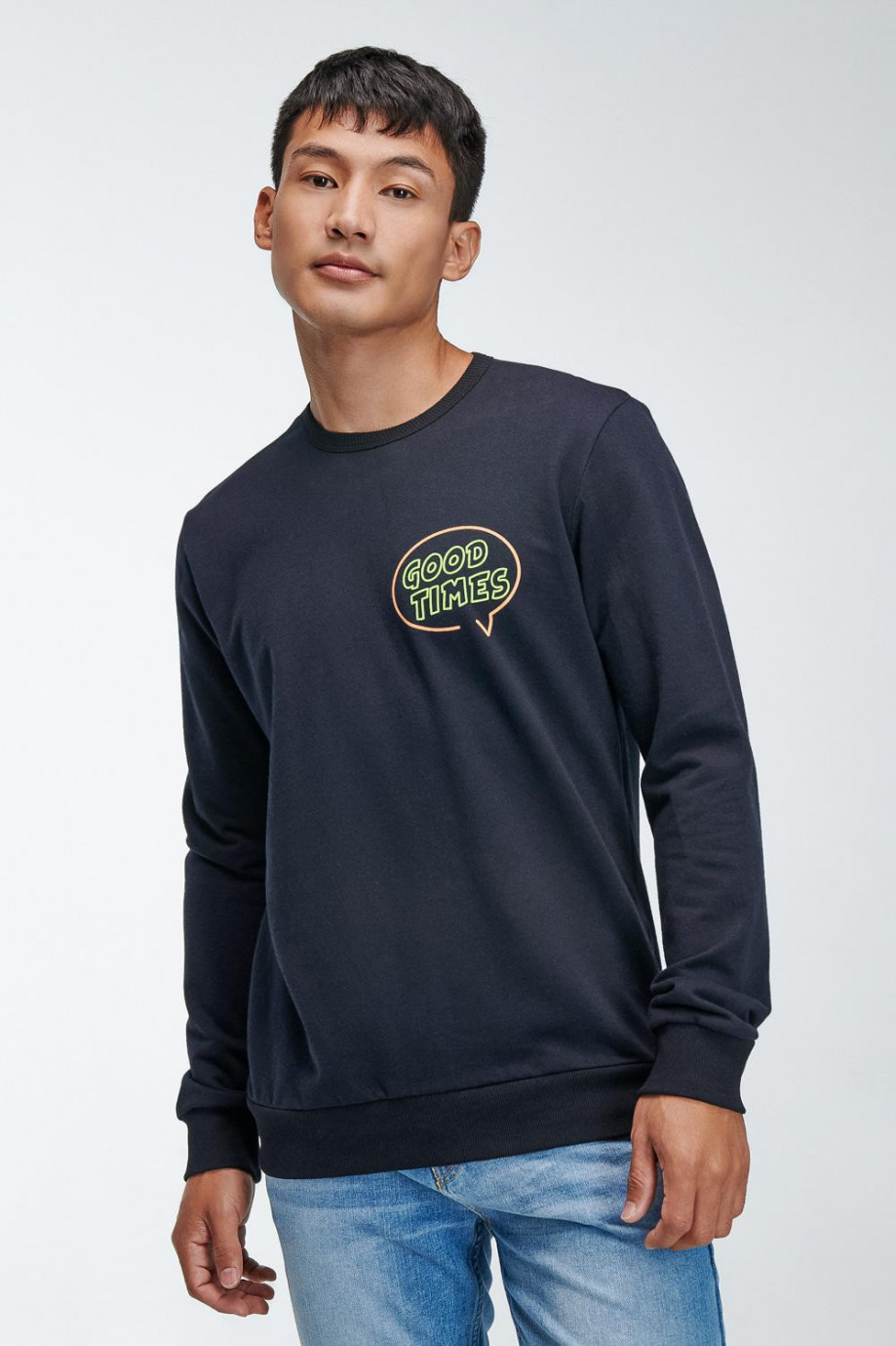 Buzo cuello redondo para hombre estampado en frente y espalda, mensaje.