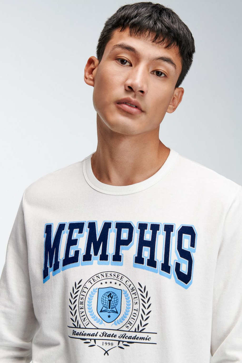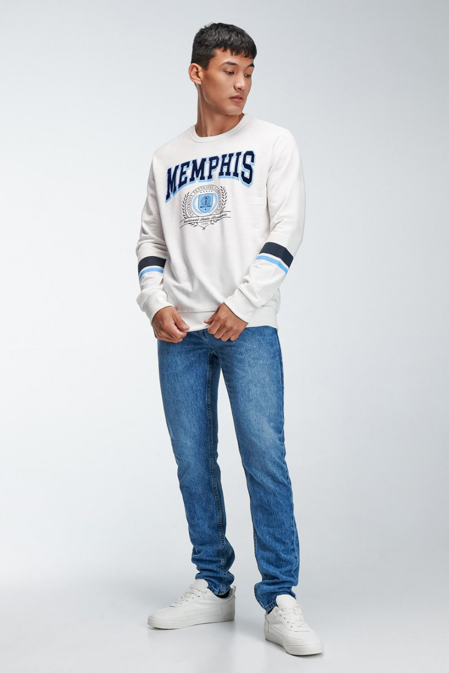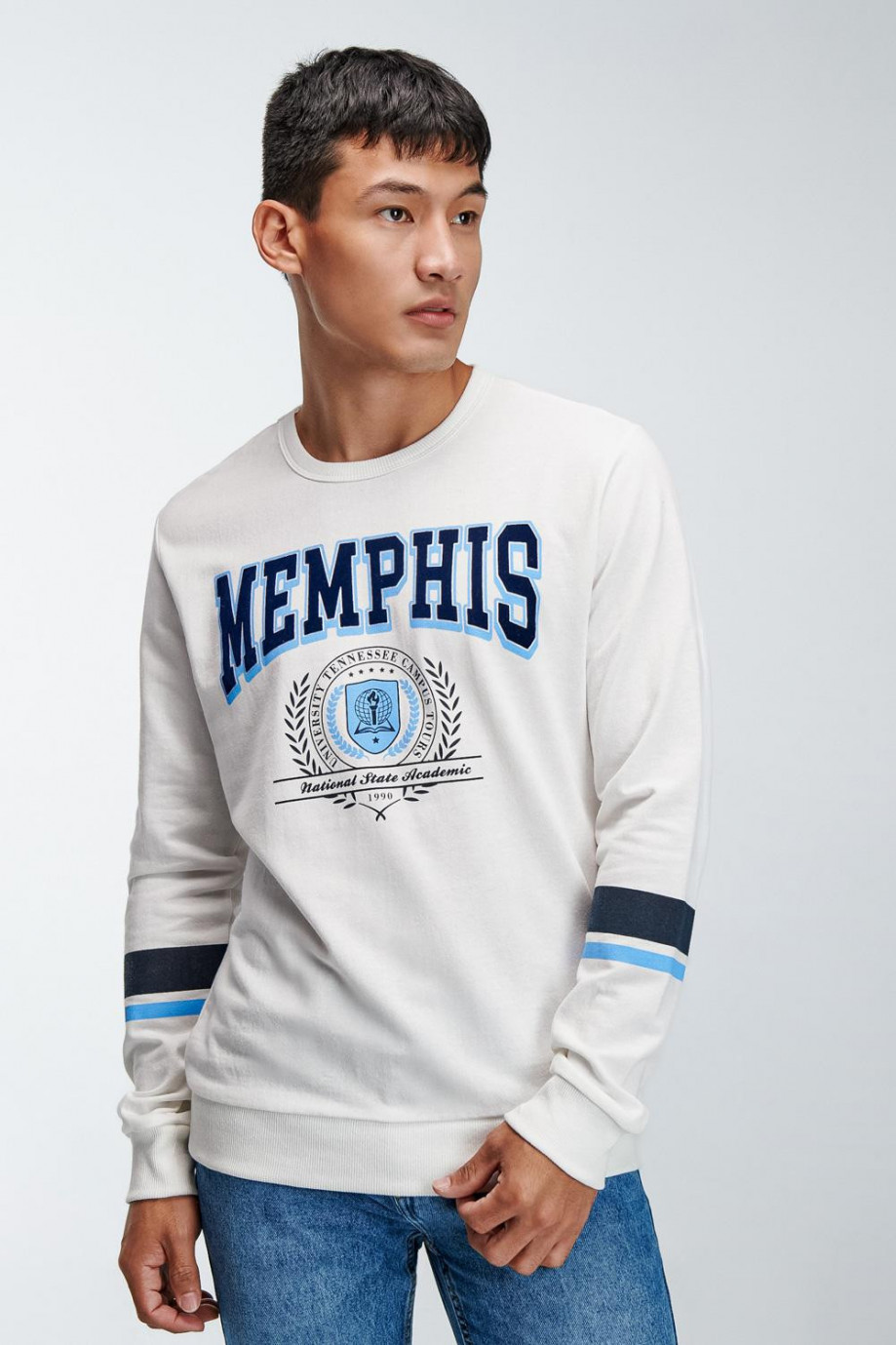Buzo cuello redondo para hombre estampado en frente y mangas, college.