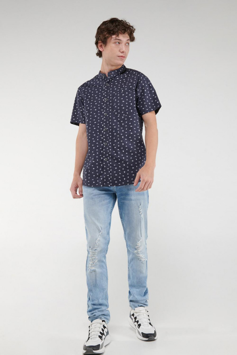 Camisa para hombre, en tela estampada, con abotonadura en frente y bolsillo