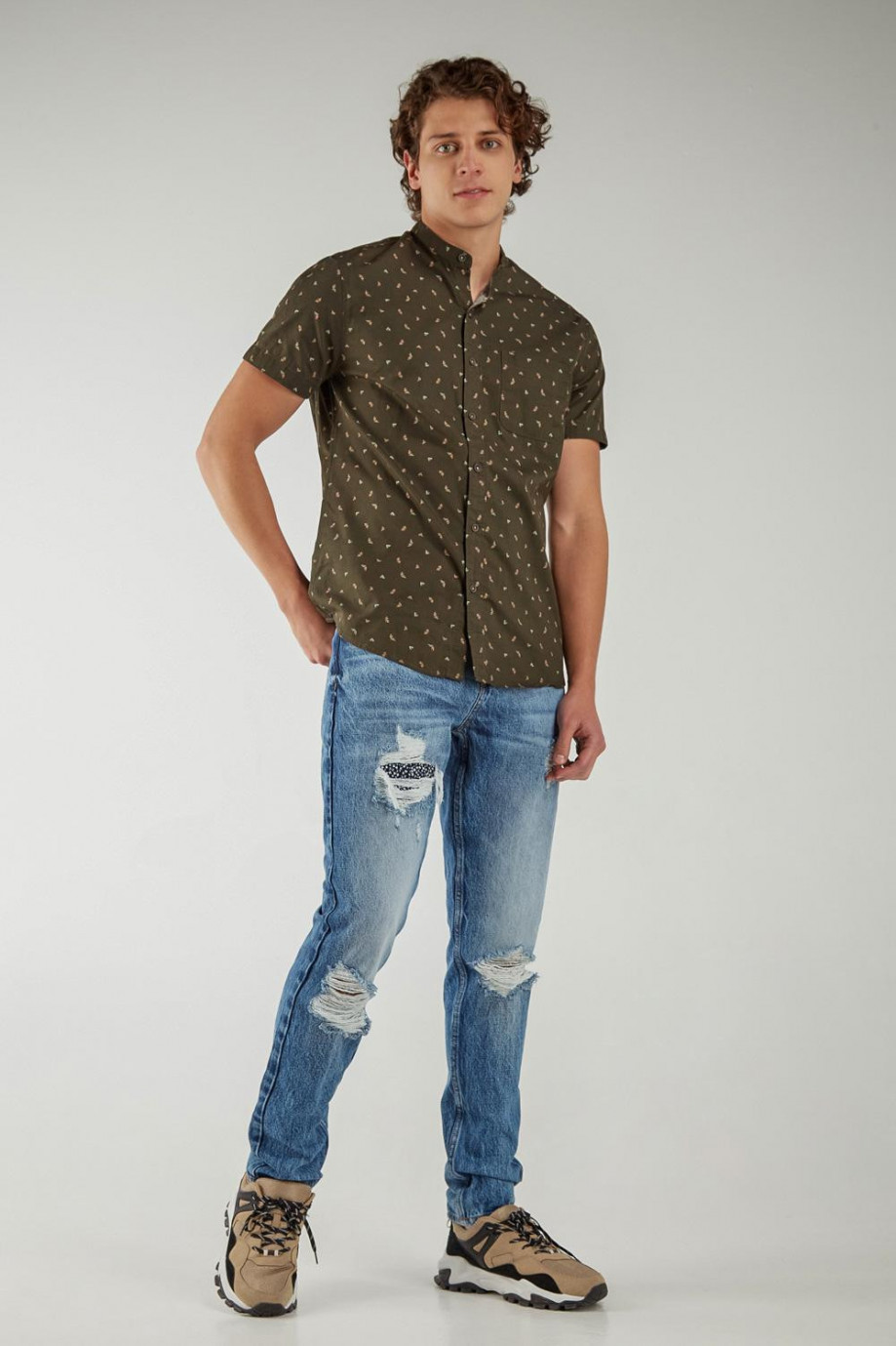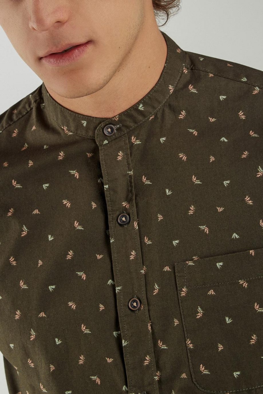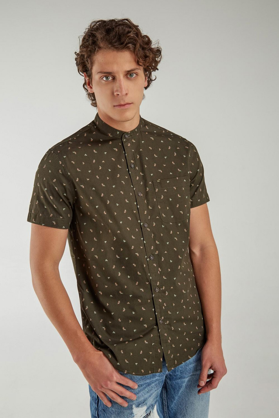 Camisa cuello mao manga corta con tela con estampación de mini print y botonadura en el frente