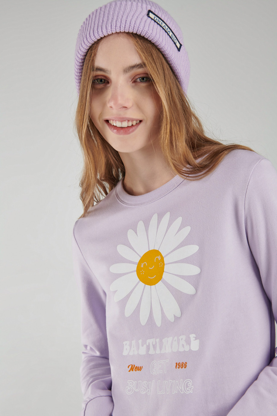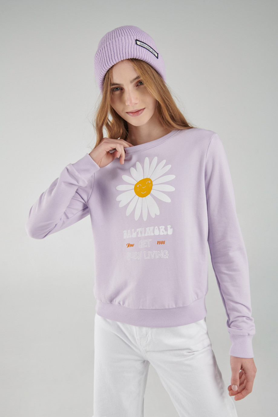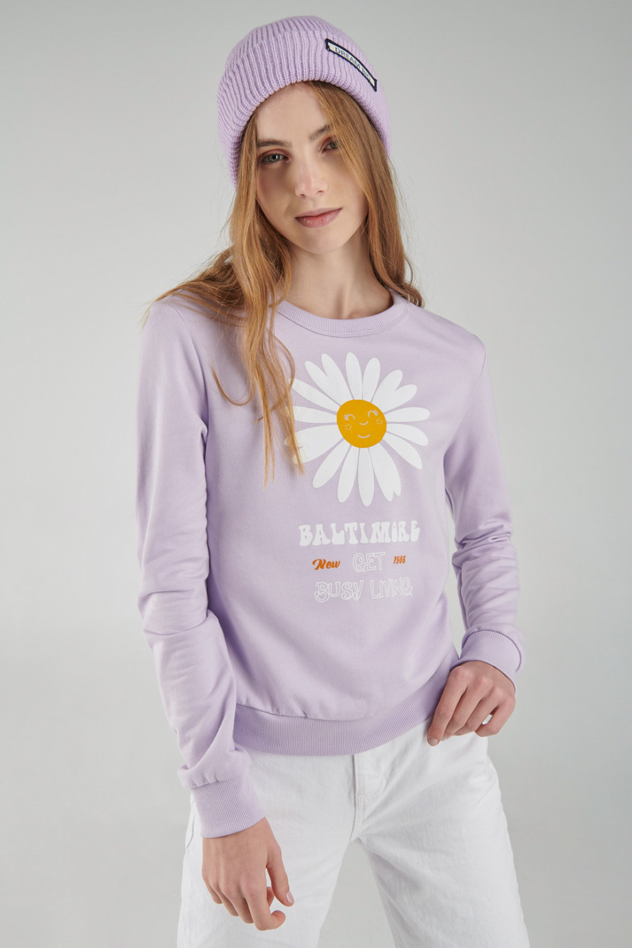 Buzo cuello redondo para mujer con estampado.