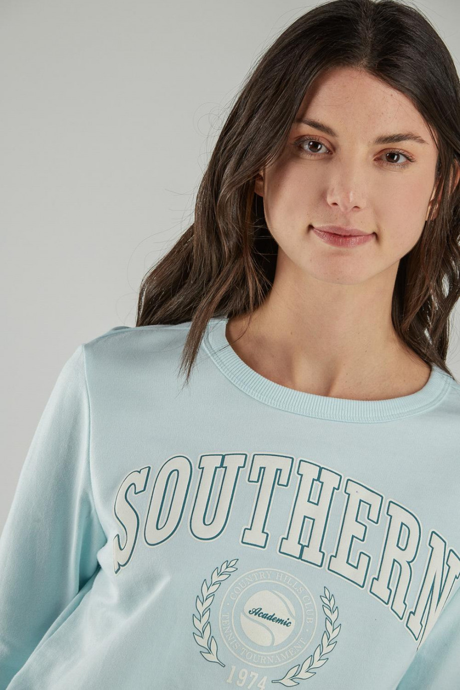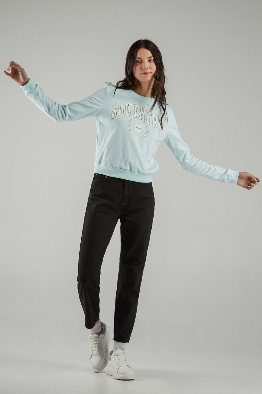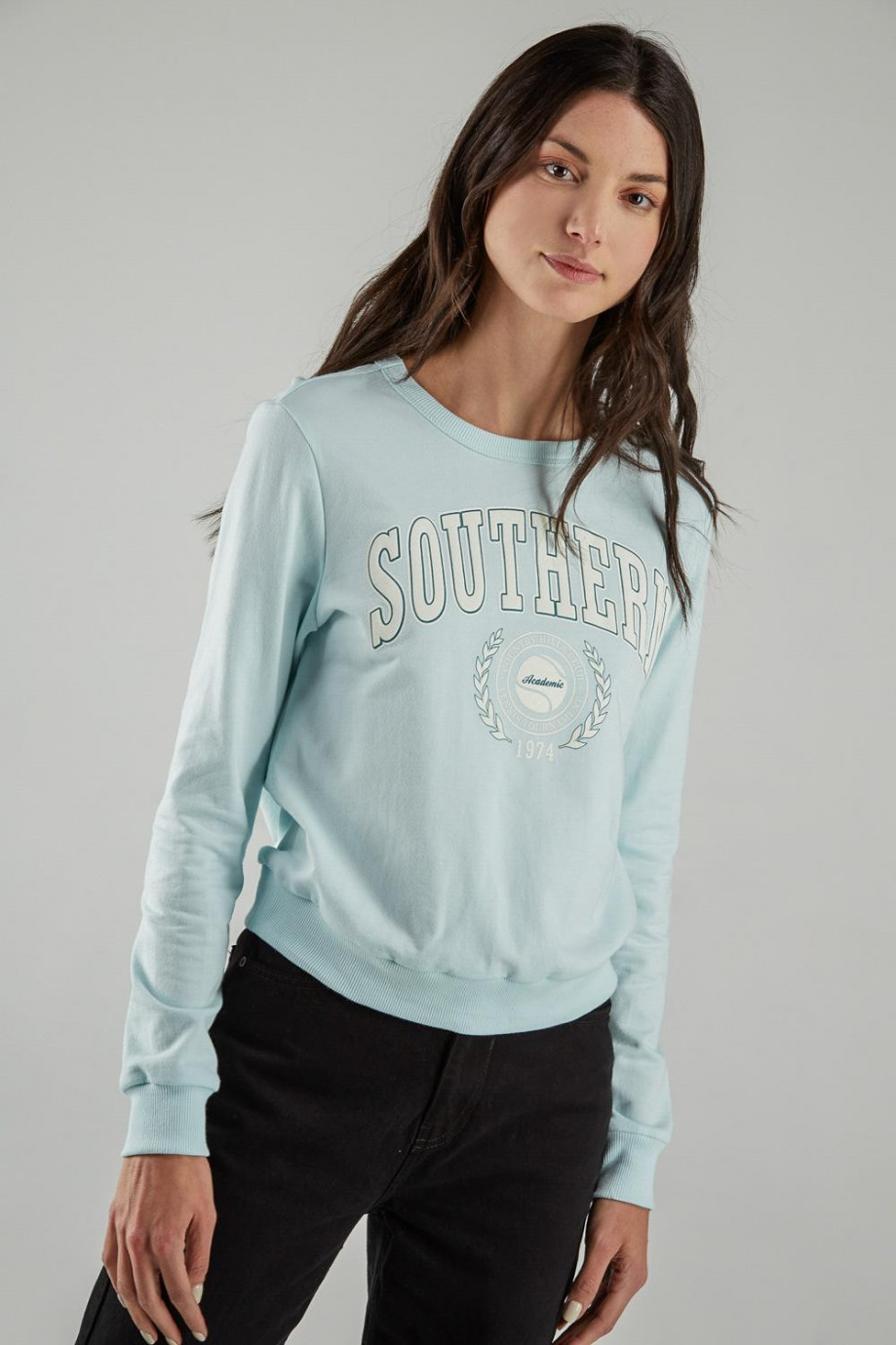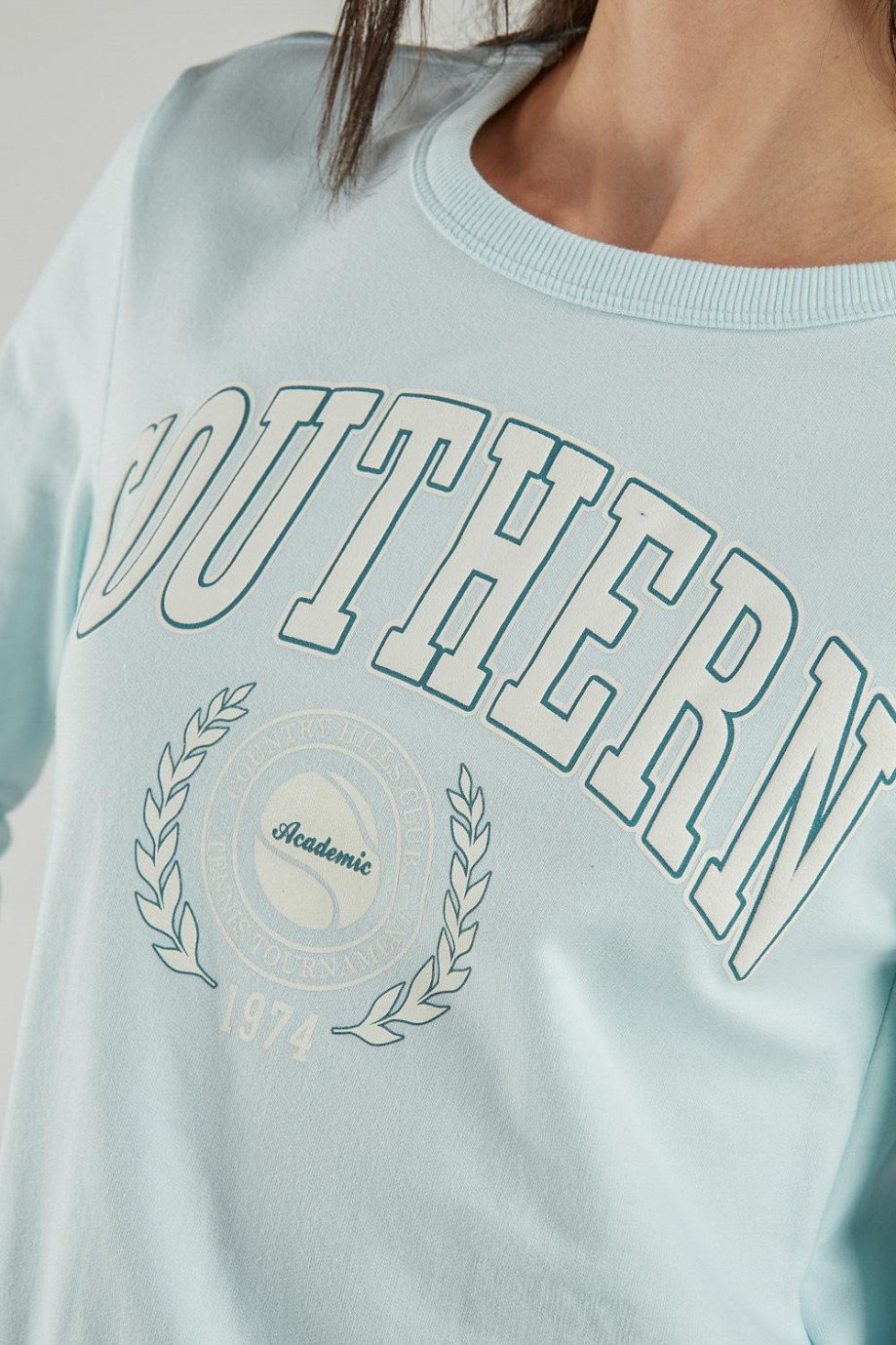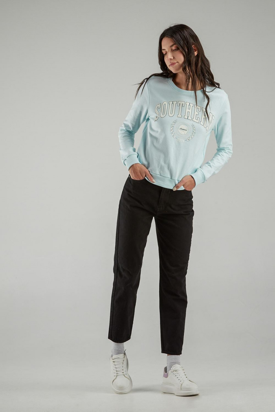 Buzo cuello redondo para mujer con estampado.