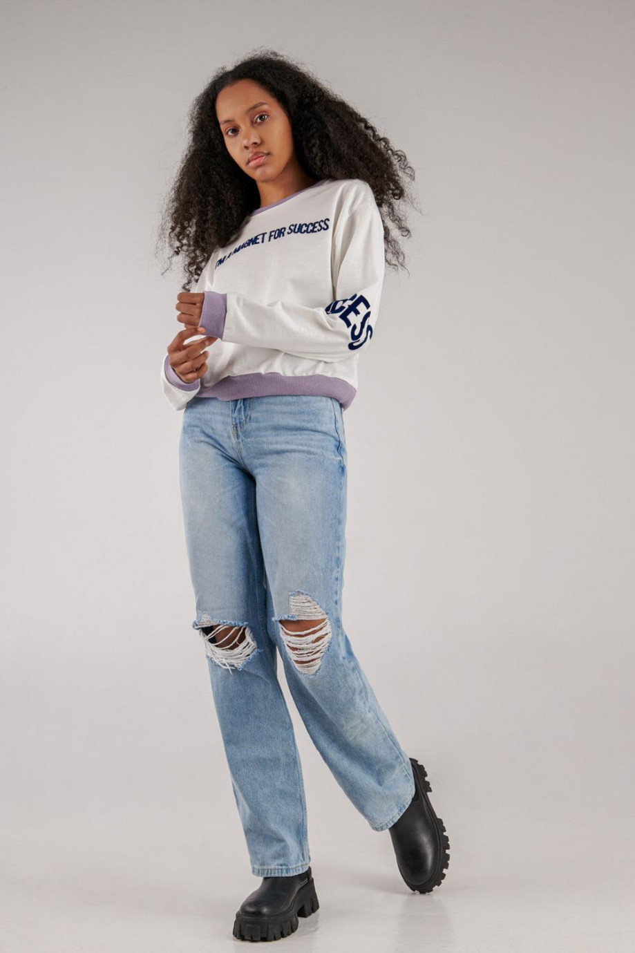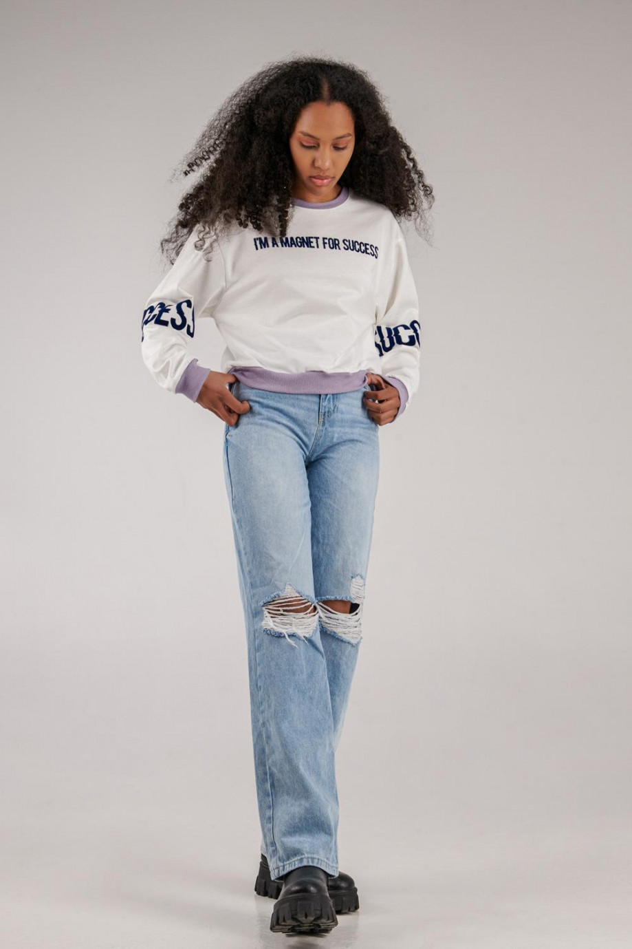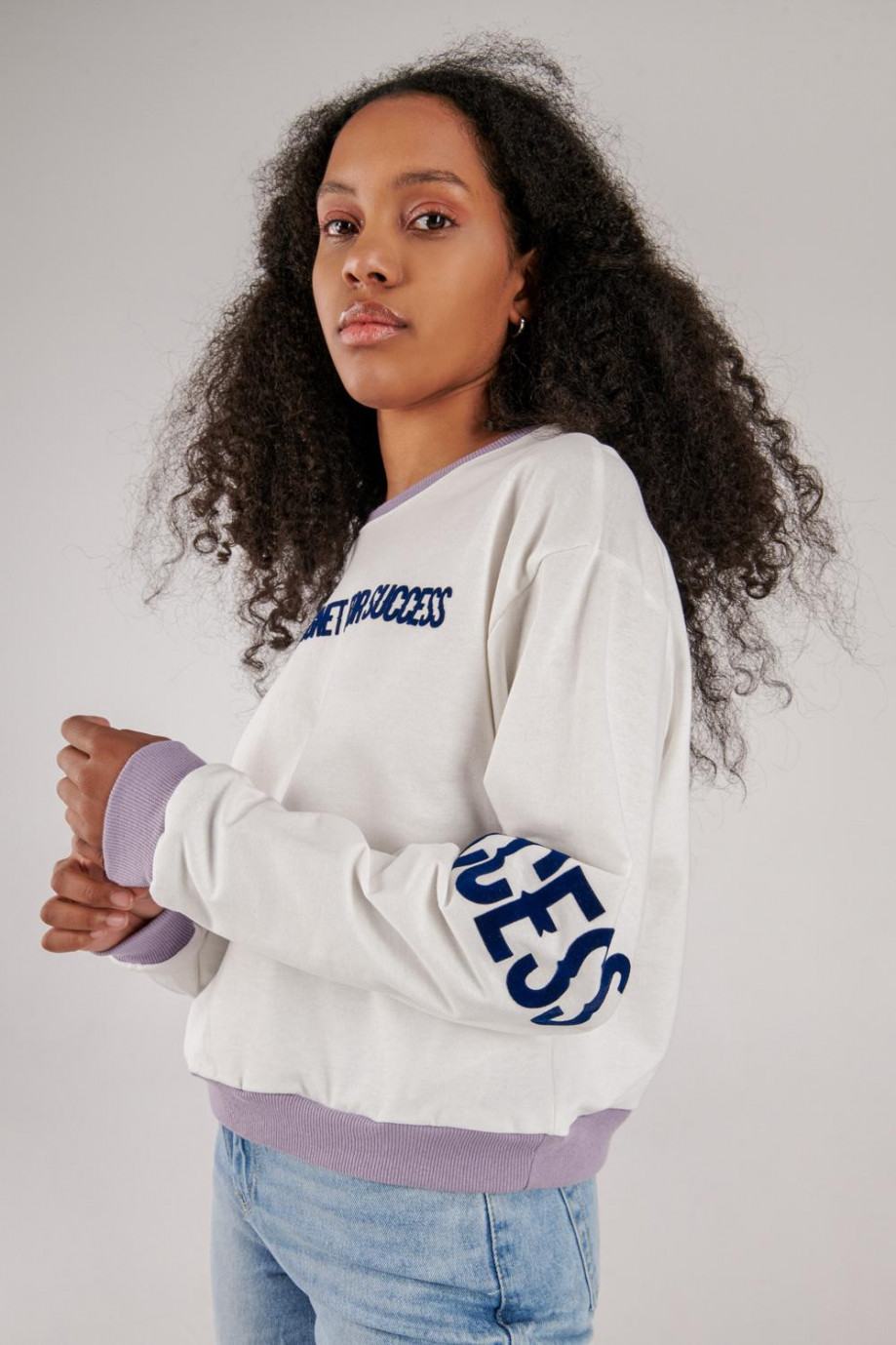 Buzo cuello redondo para mujer con estampado.