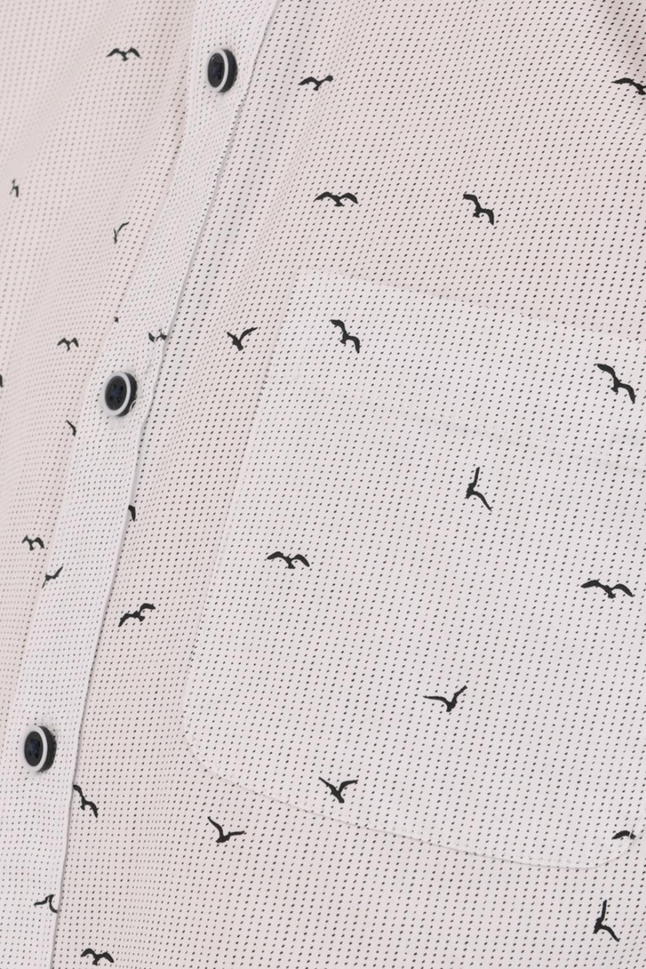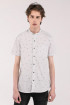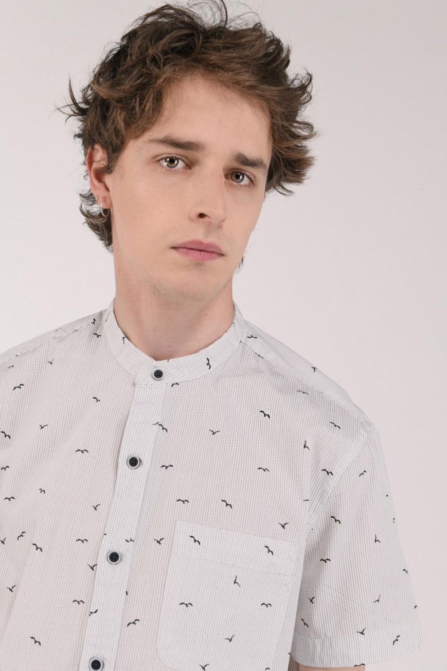 Camisa cuello mao manga corta con tela con estampación de mini print y botonadura en el frente