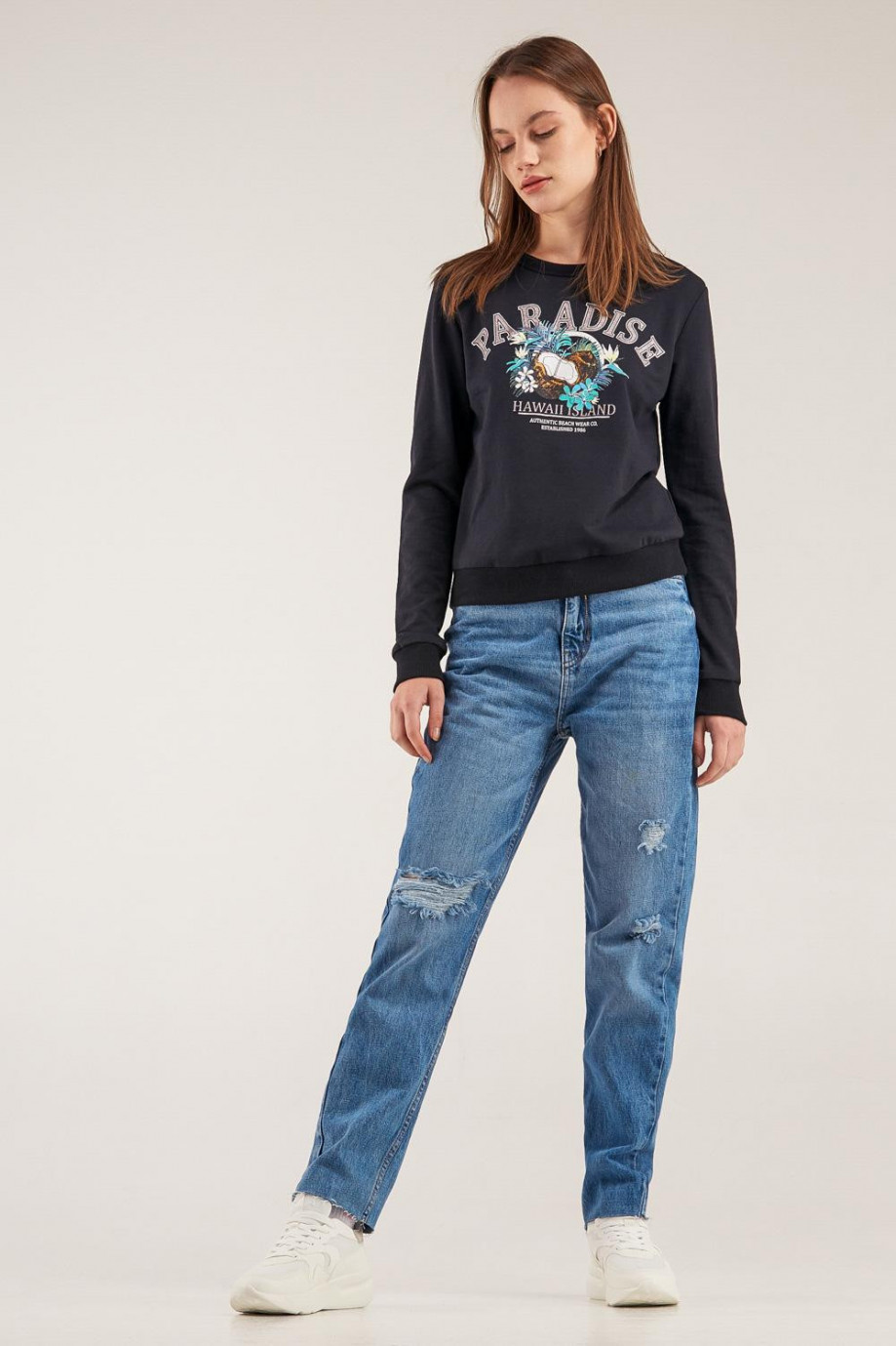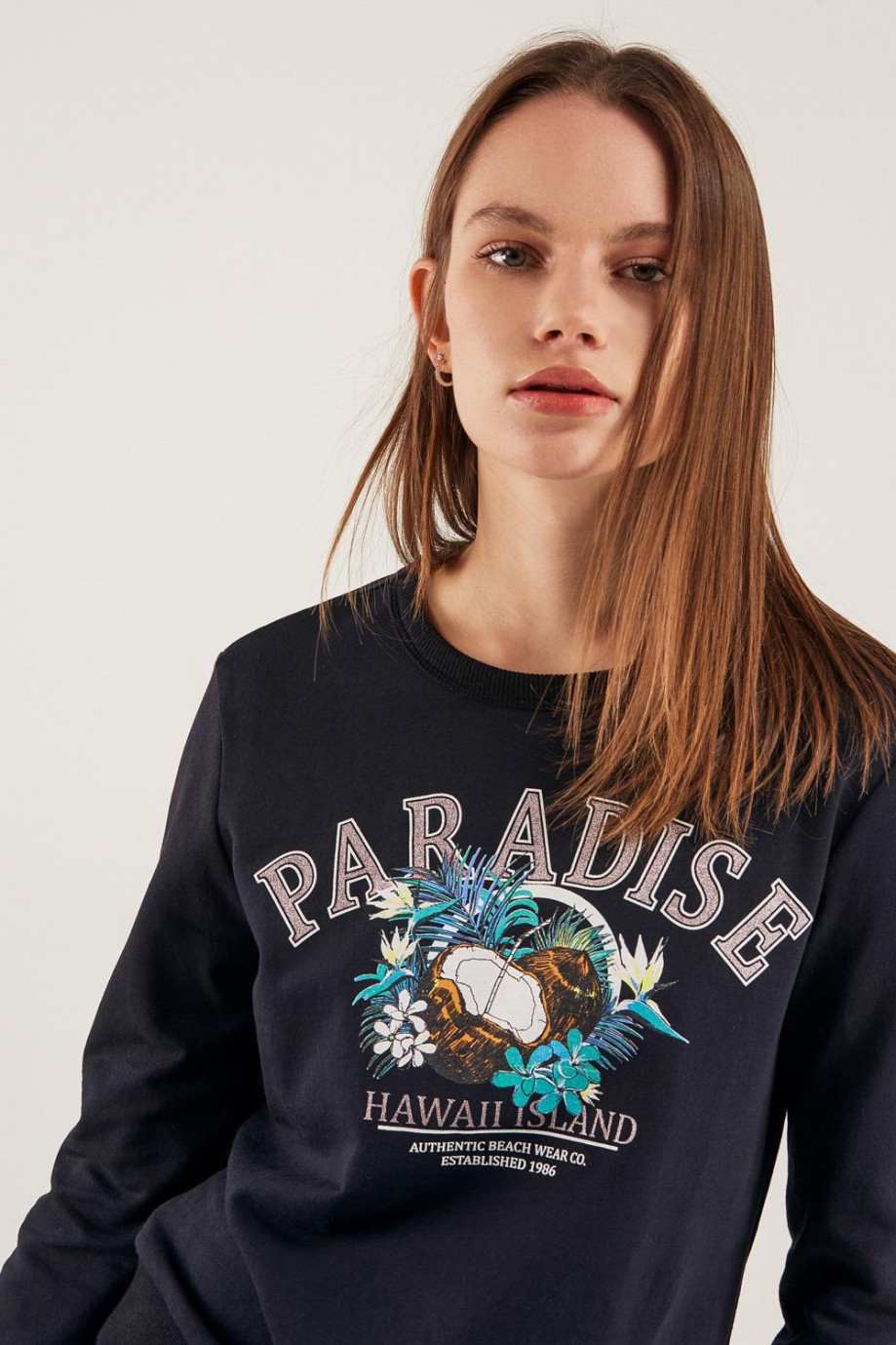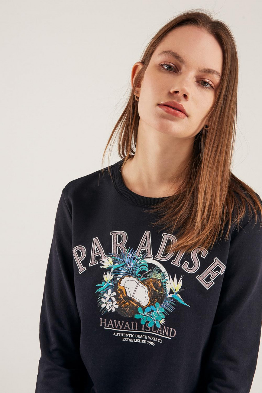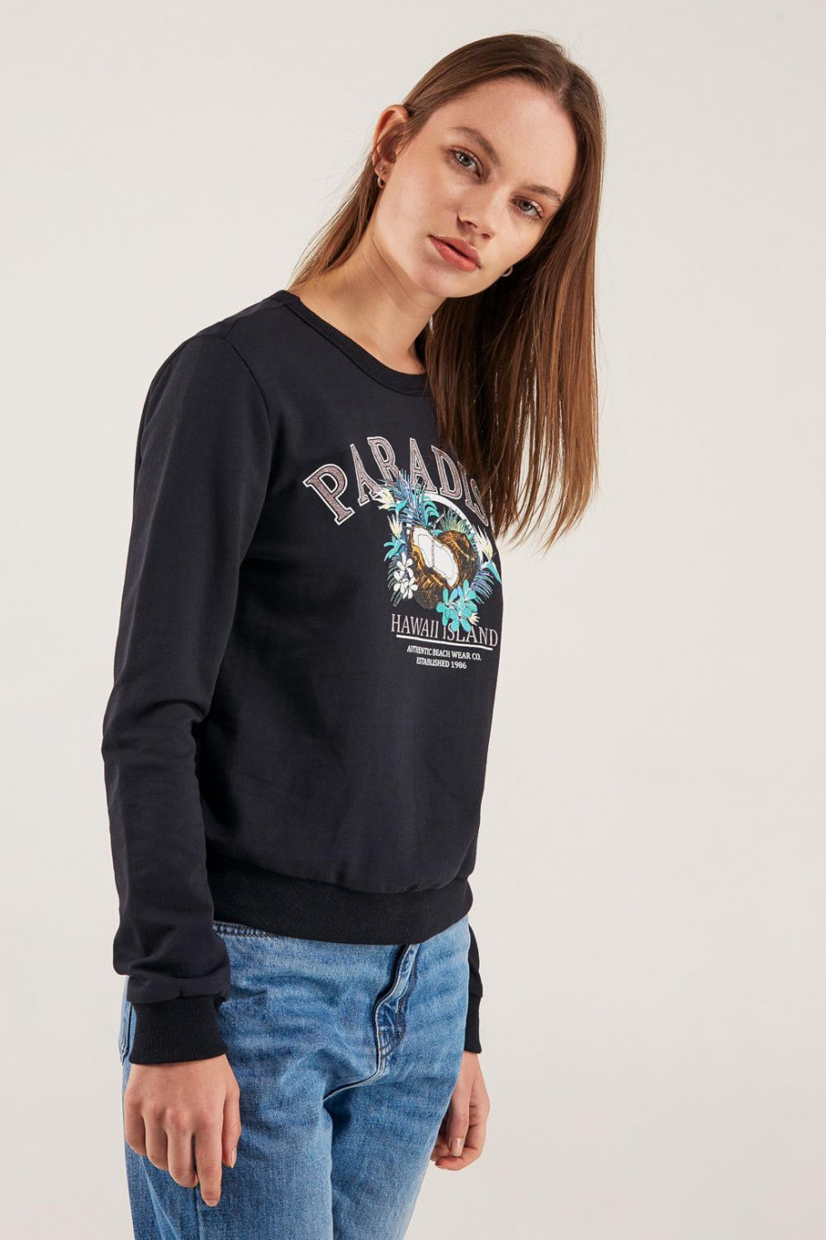 Buzo cuello redondo para mujer con estampado.