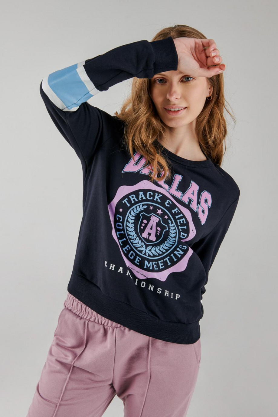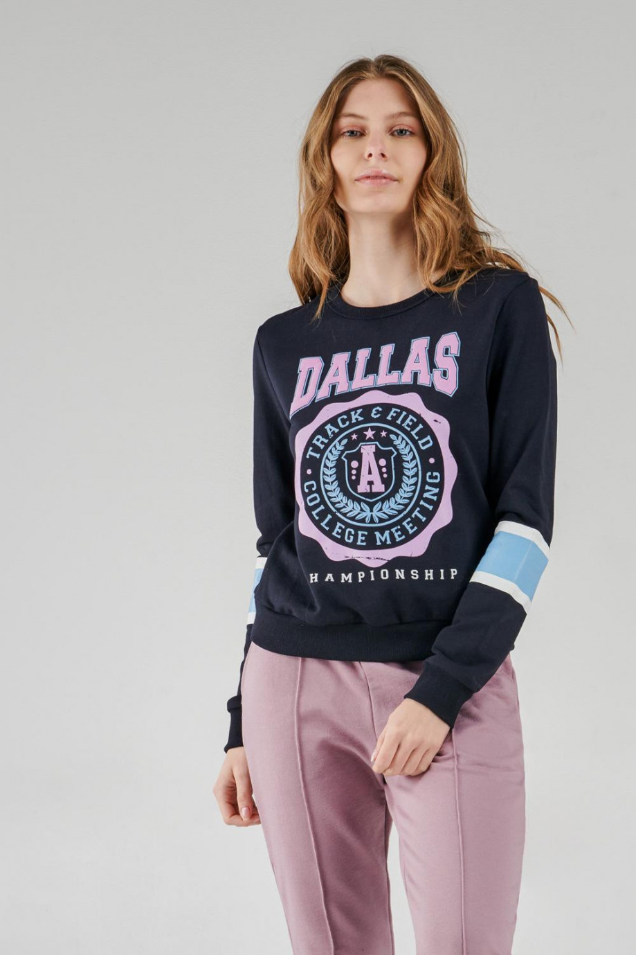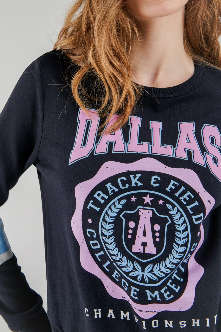 Buzo cuello redondo para mujer con estampado.