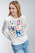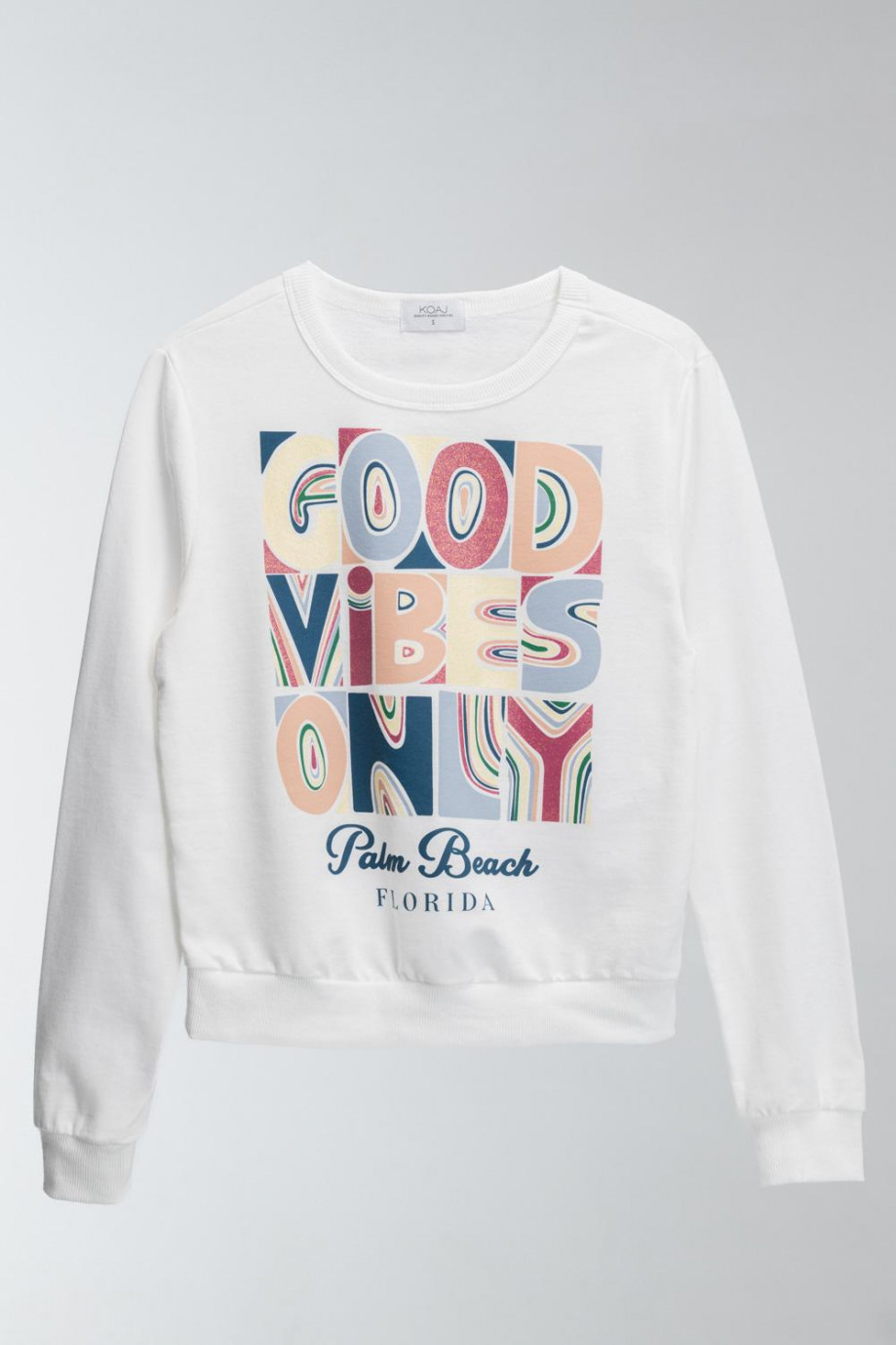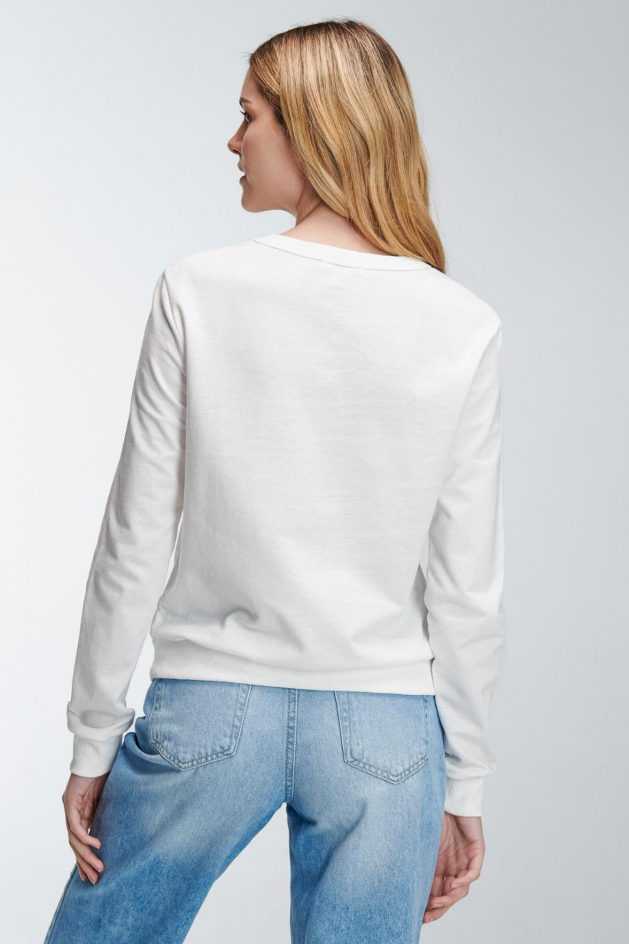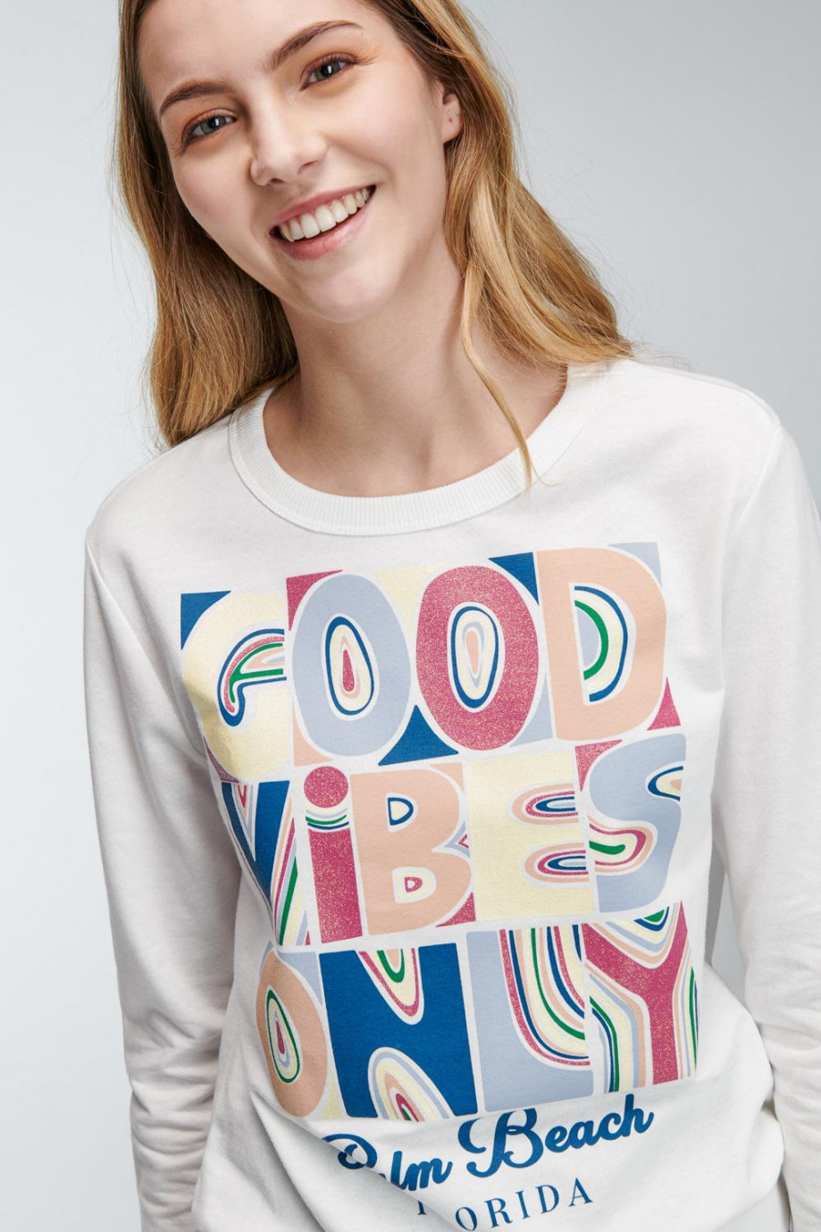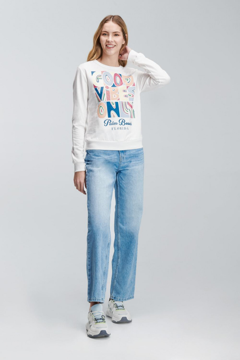 Buzo cuello redondo para mujer con estampado en frente, estampado multicolor.