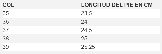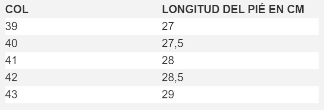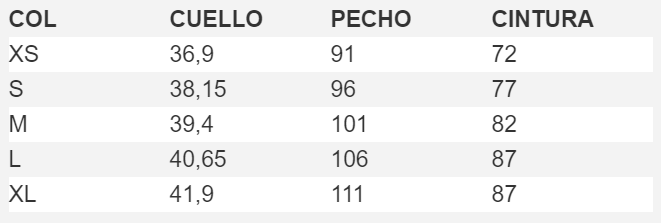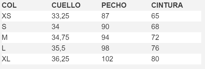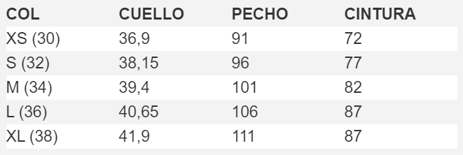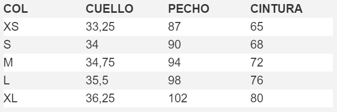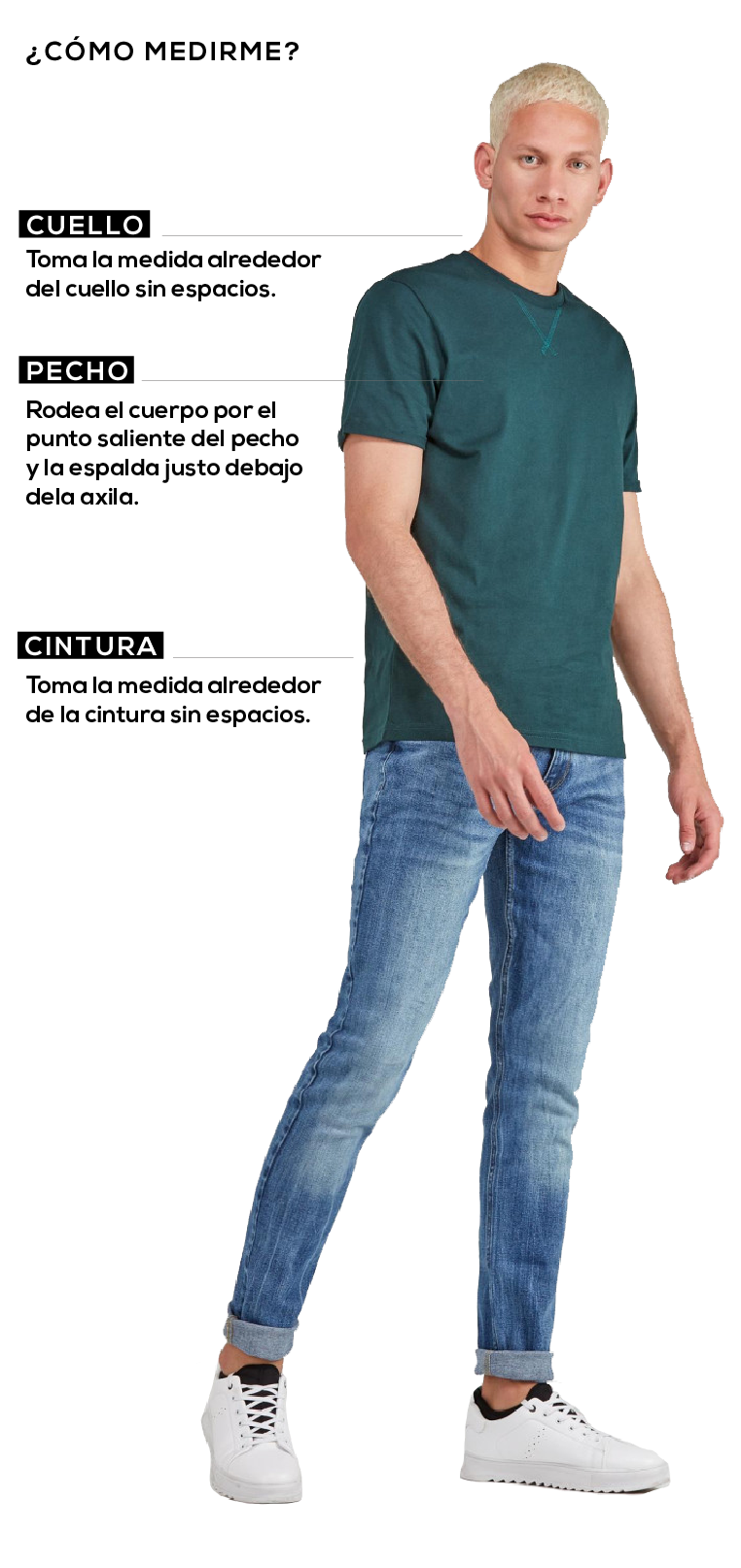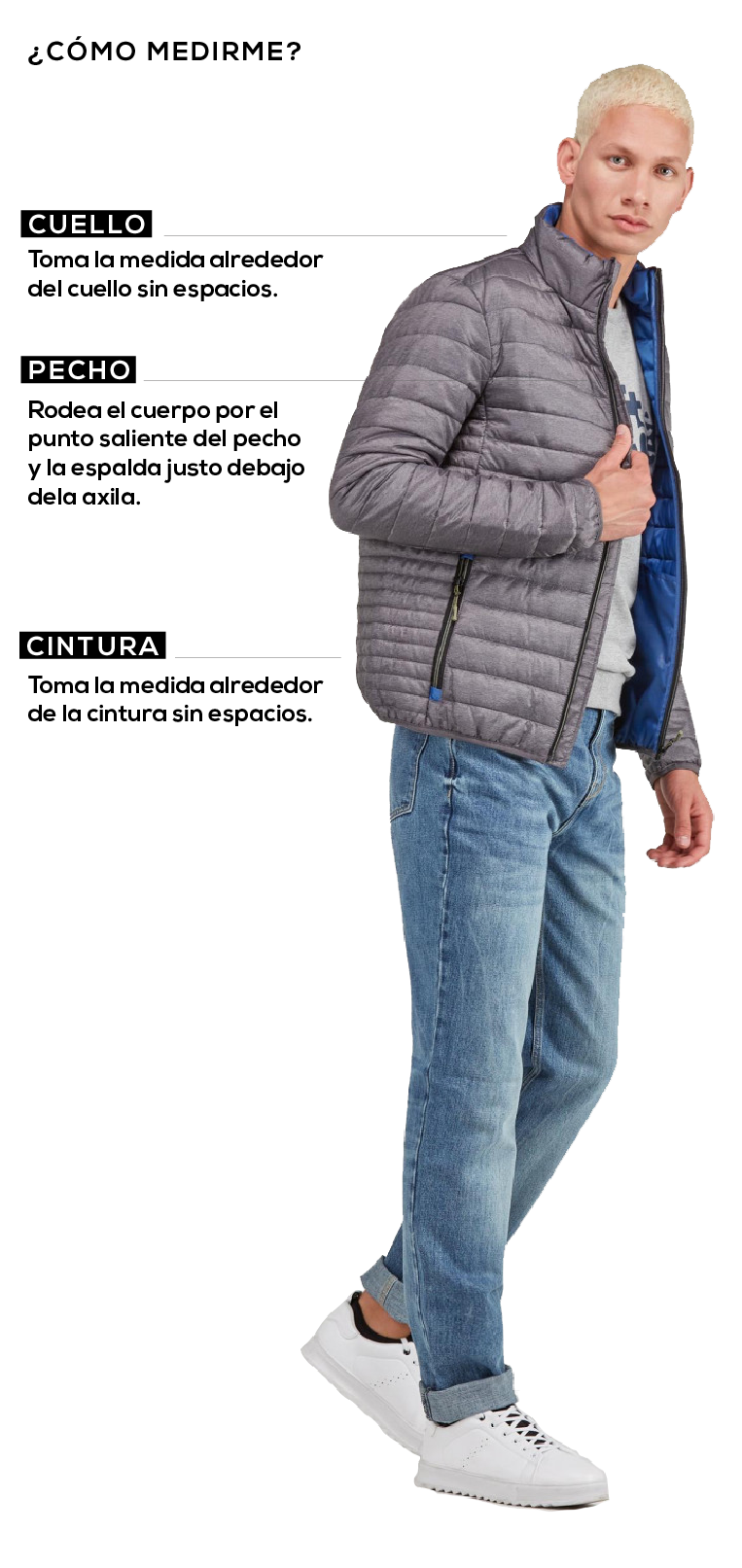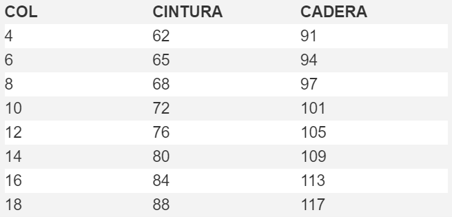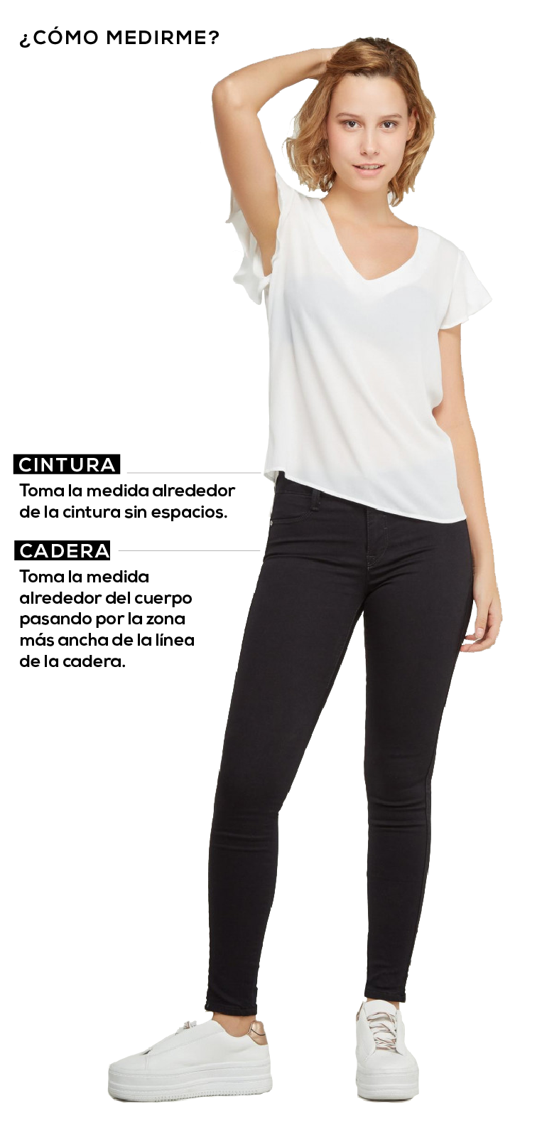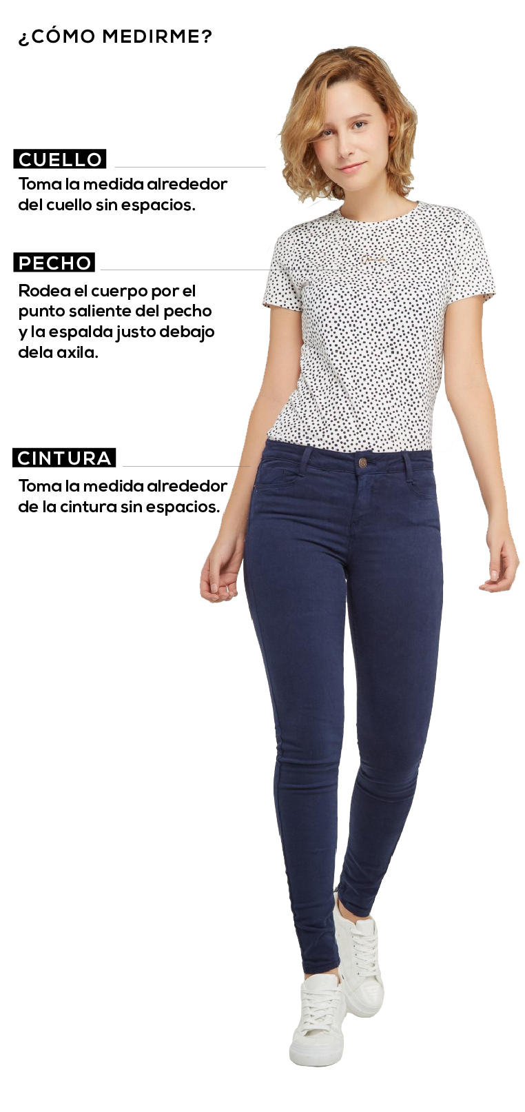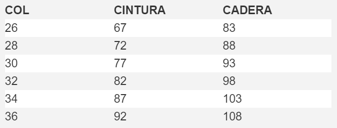 * Las medidas de la guía de tallas están basadas en medidas tomadas directamente sobre el cuerpo, no sobre la prenda. En caso de tener una medida entre dos tallas, es preferible que selecciones la talla mayor.