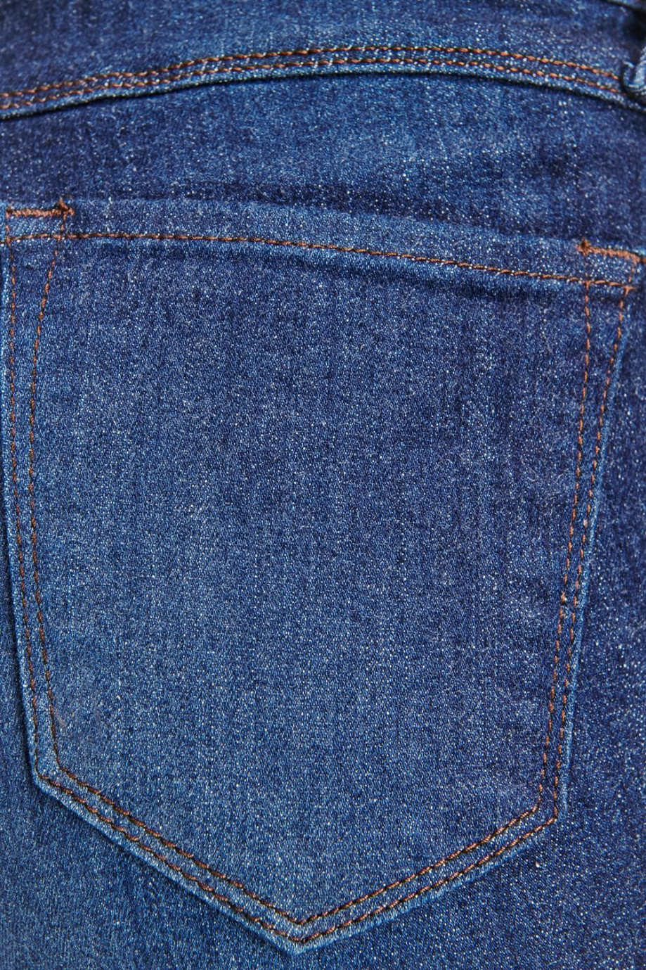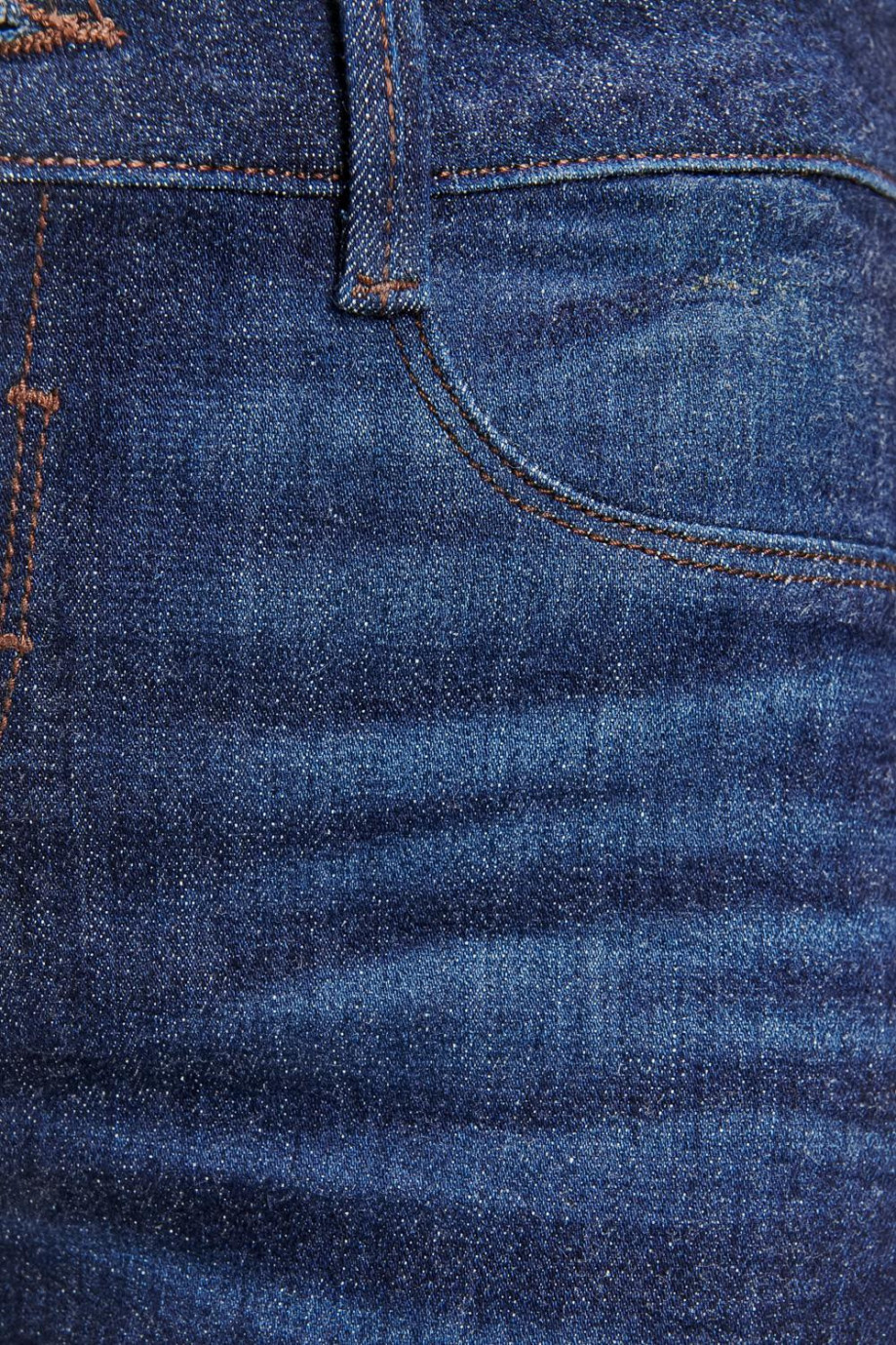 Jean para mujer, 5 bolsillos, tiro alto, ajuste ceñido con lavado azul oscuro.
