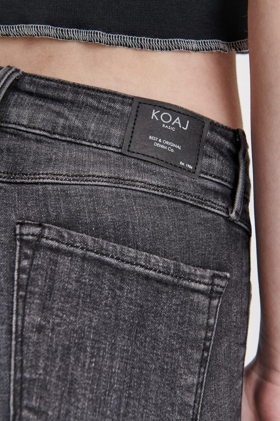 Jean para mujer, 5 bolsillos, tiro alto, ajuste ceñido con lavado Gris.