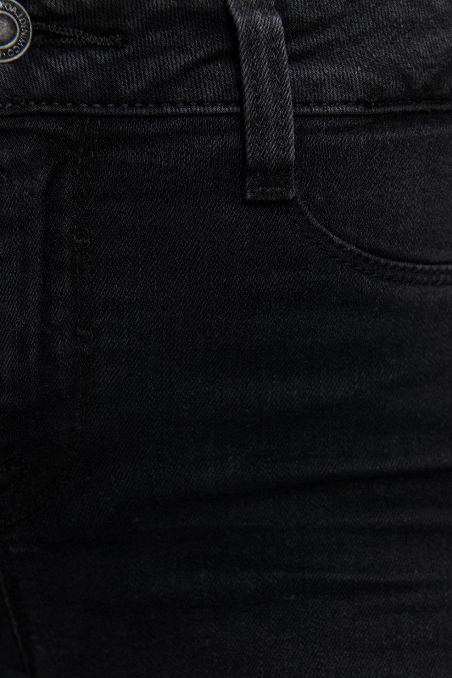 Jean para mujer, 5 bolsillos, tiro alto, ajuste ceñido con lavado negro.