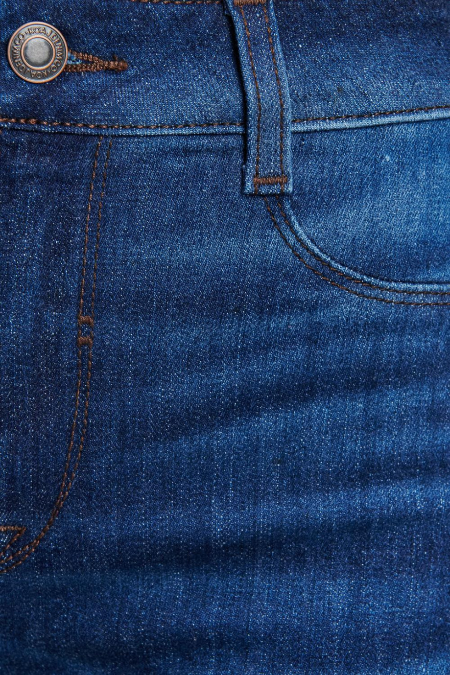 Jean para mujer, 5 bolsillos, tiro alto, ajuste ceñido con lavado azul oscuro