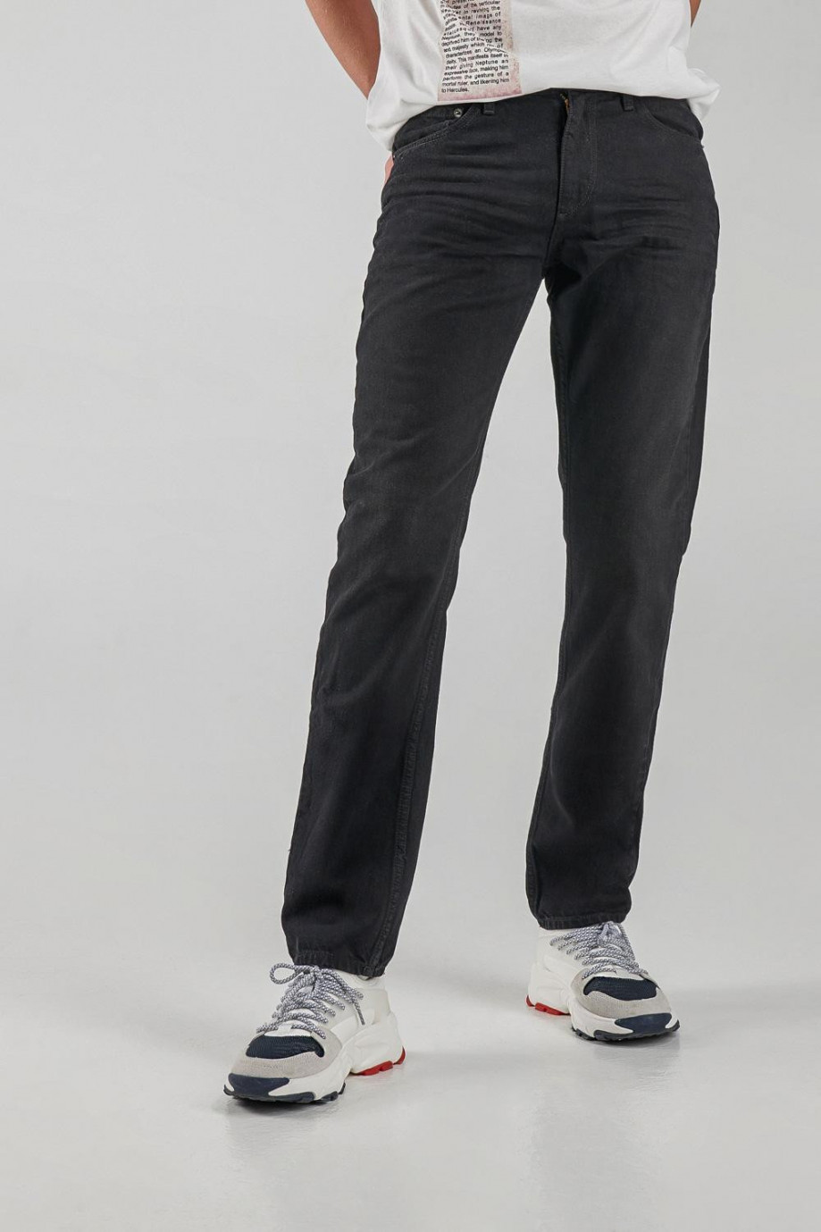 Jean para hombre, 5 bolsillos, tiro bajo ajuste semi recto con lavado negro