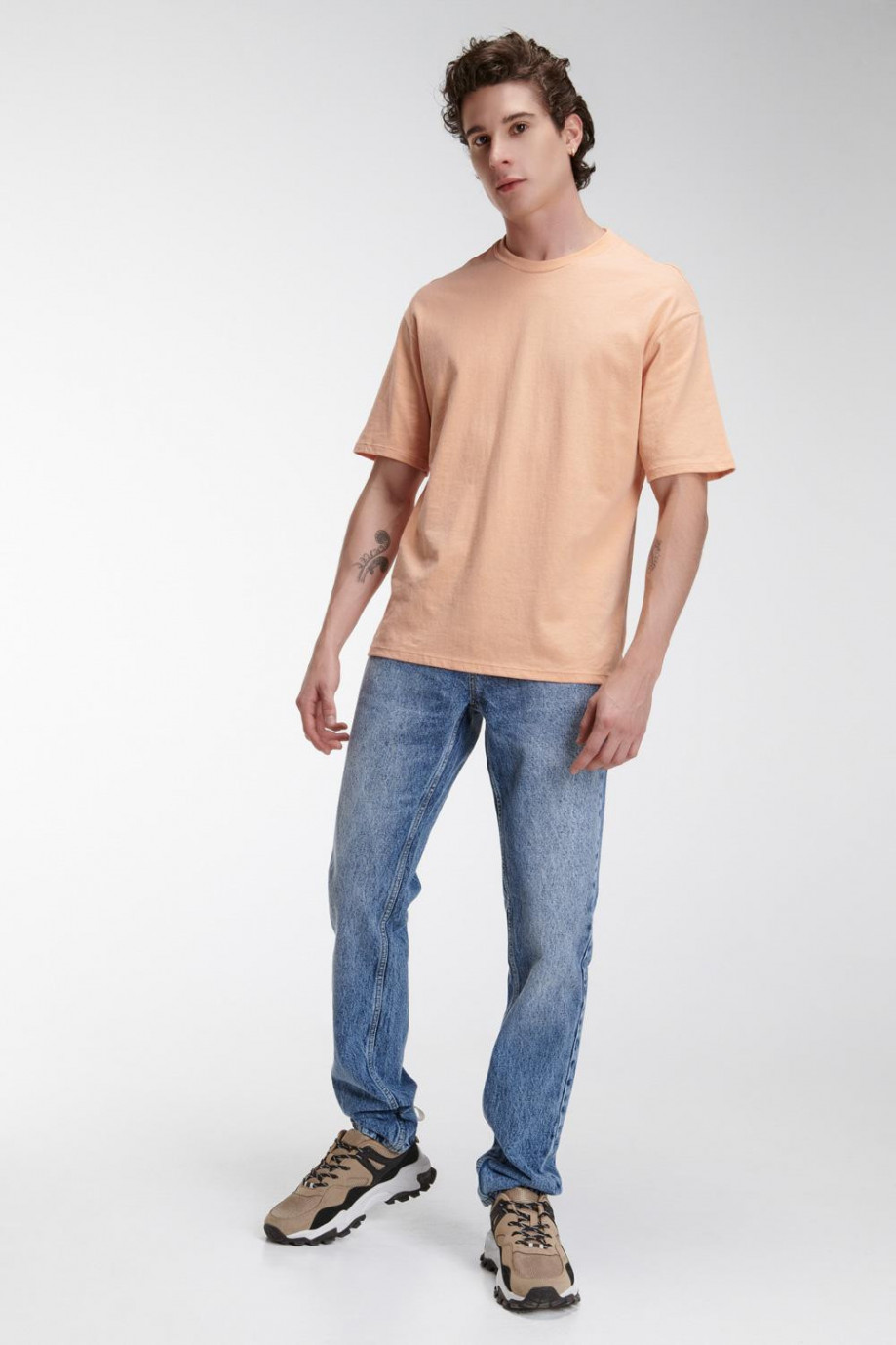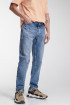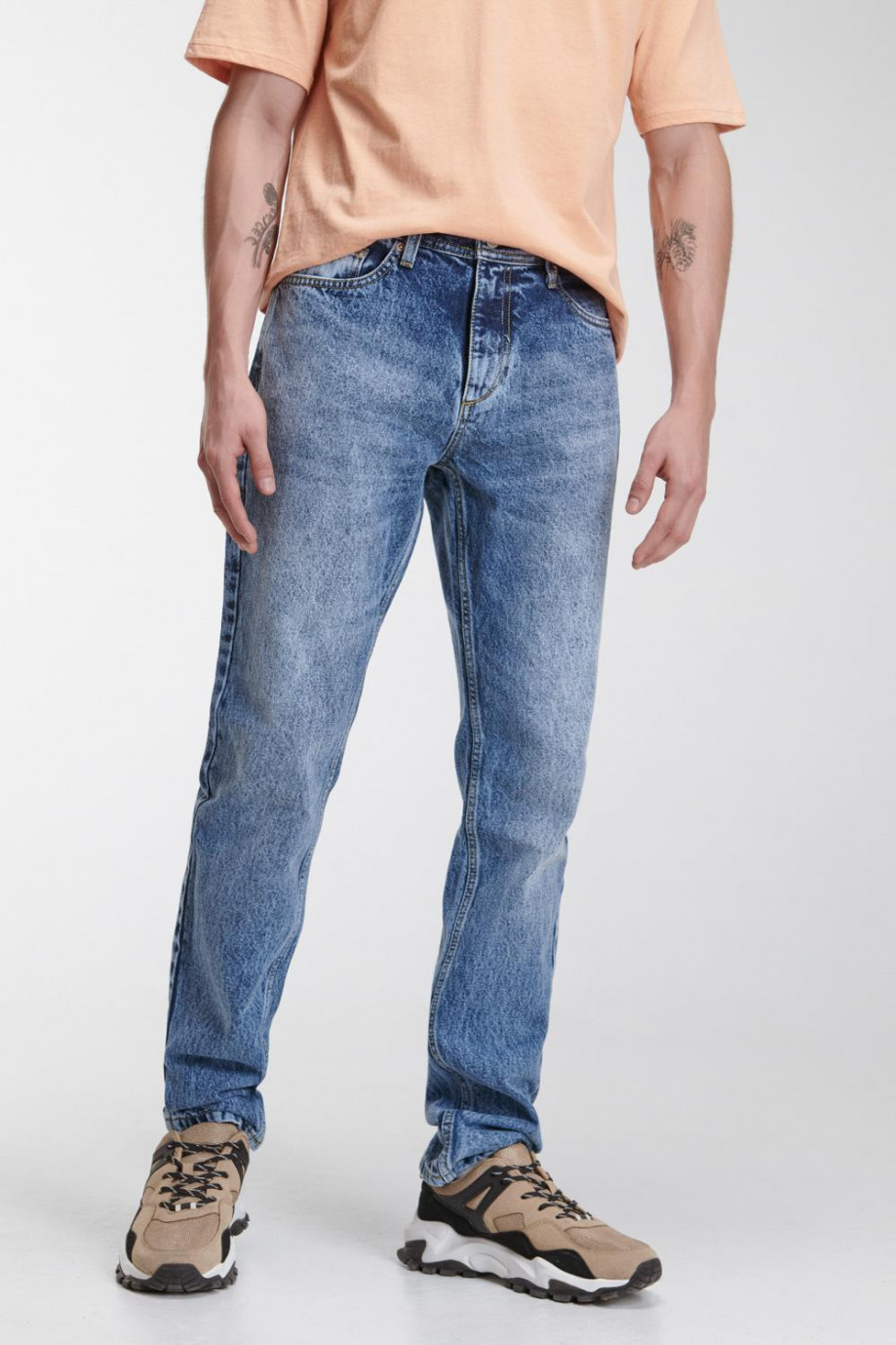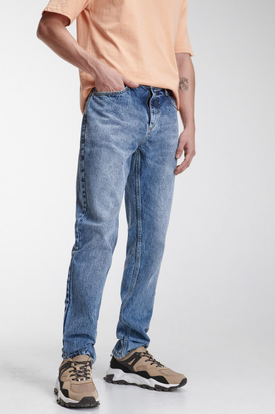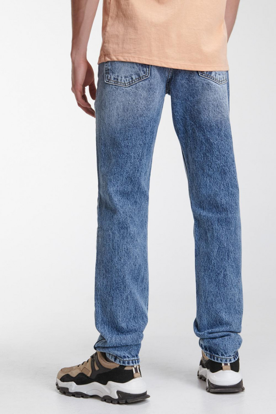 Jean para hombre, 5 bolsillos, tiro bajo ajuste semi recto con lavado azul claro