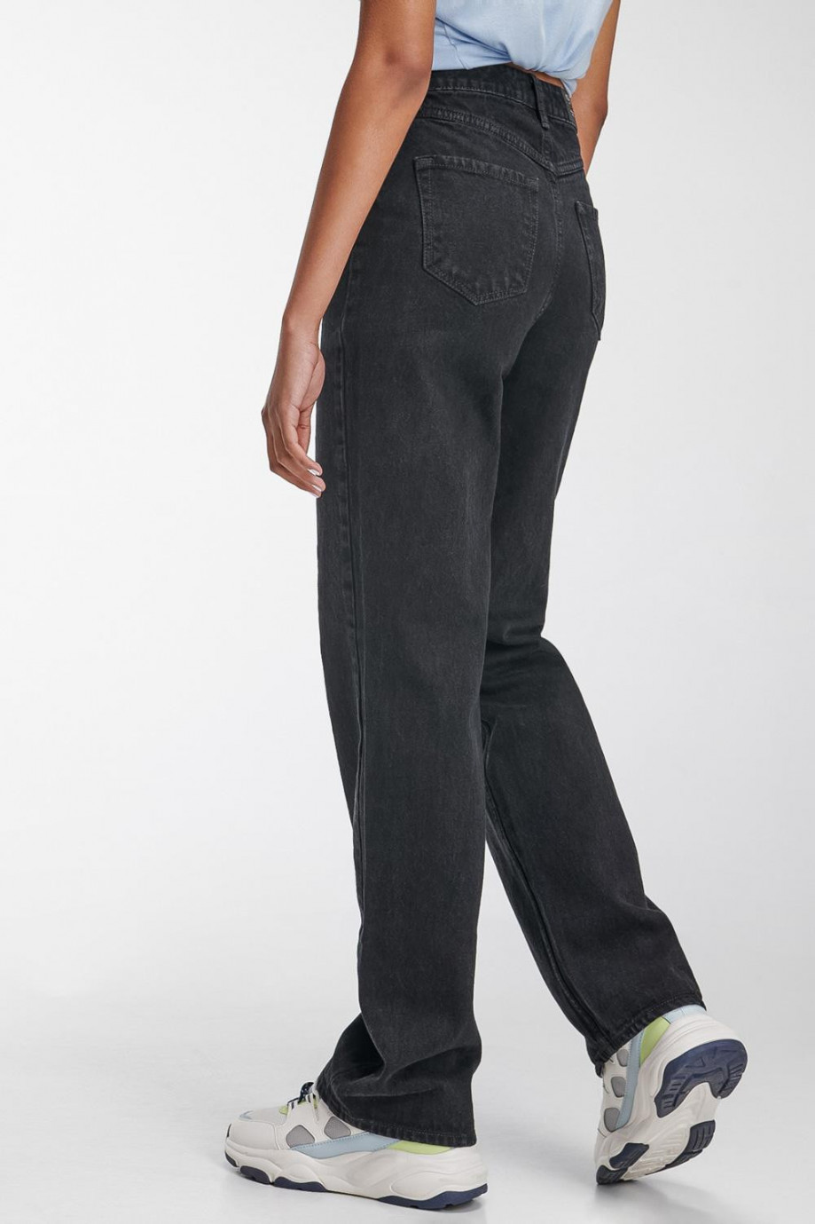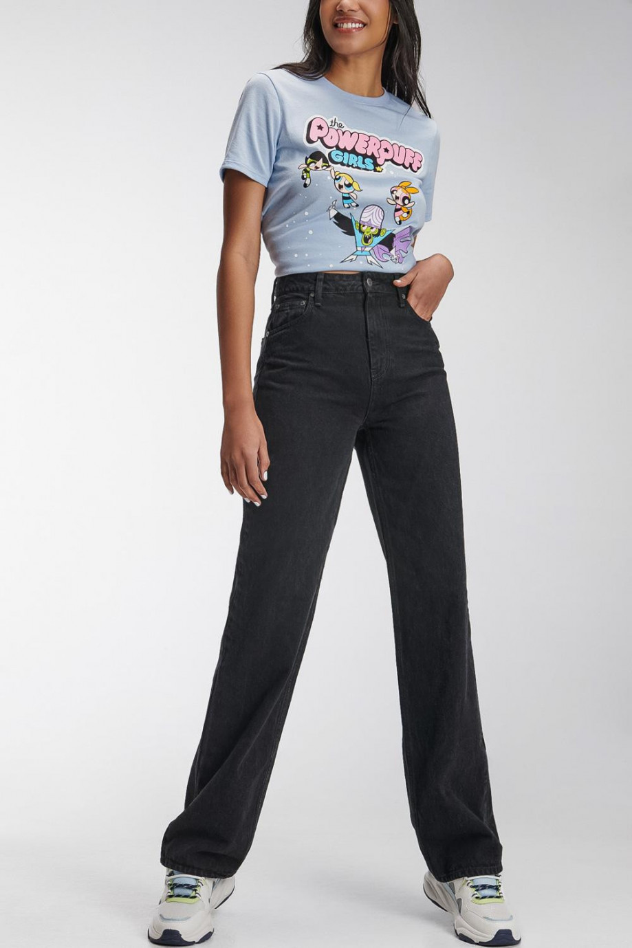 Jean para mujer, 5 bolsillos, super tiro alto, lavado con rotos color azul negro.