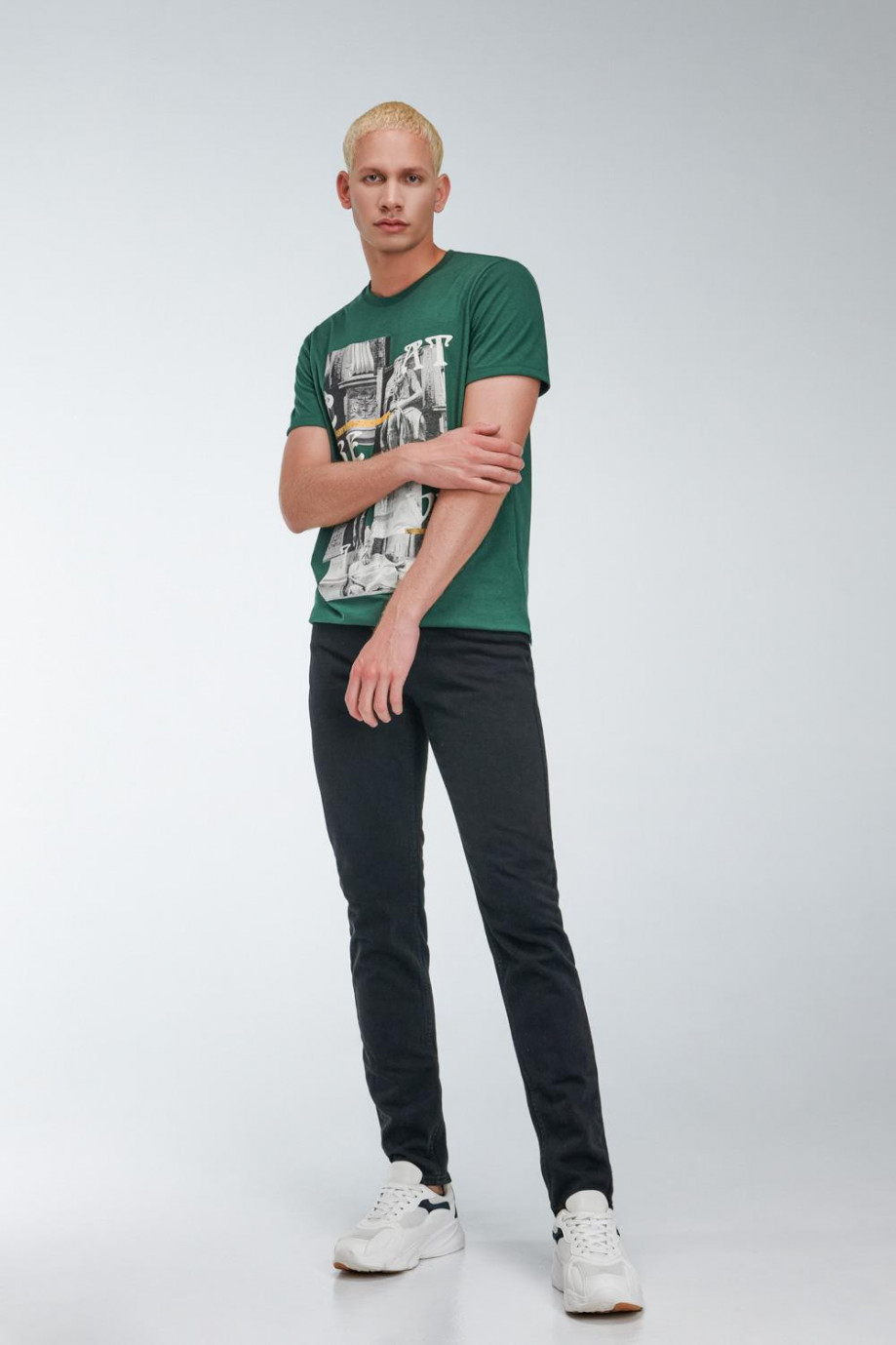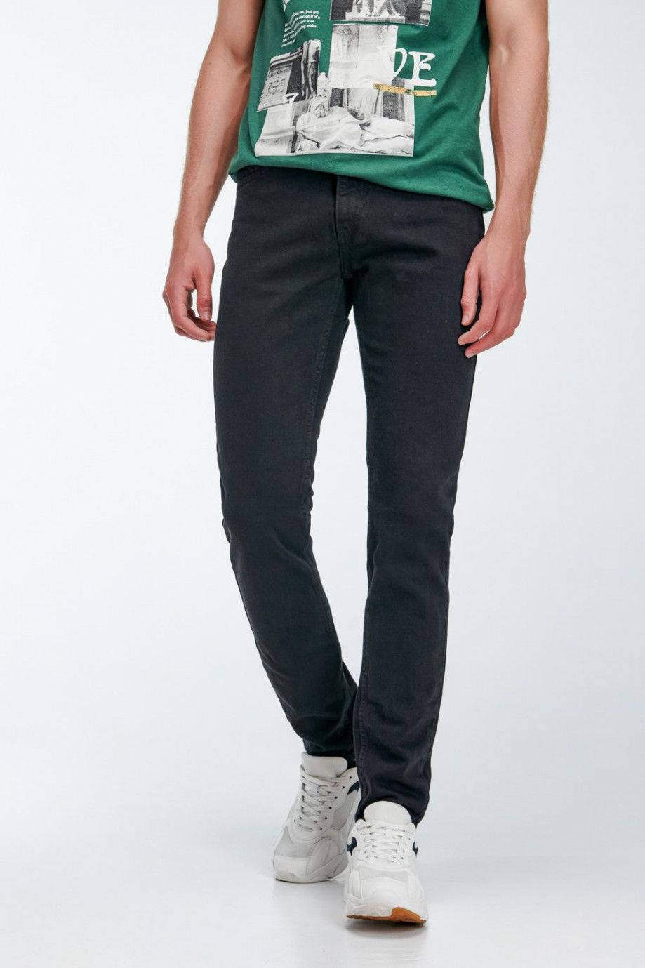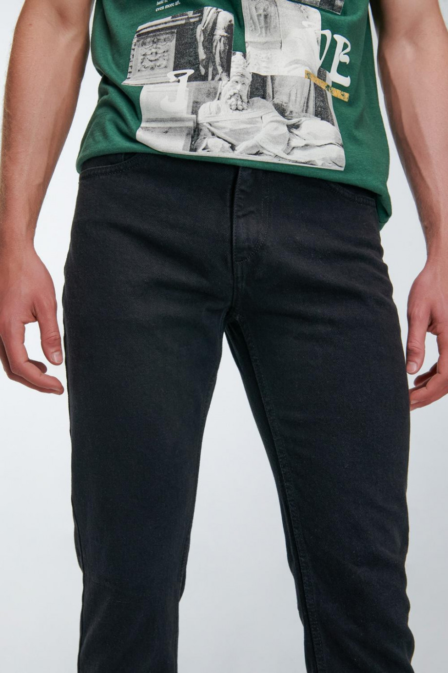 Jean para hombre, 5 bolsillos, tiro bajo ajuste semi recto con lavado negro.