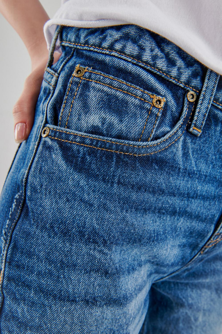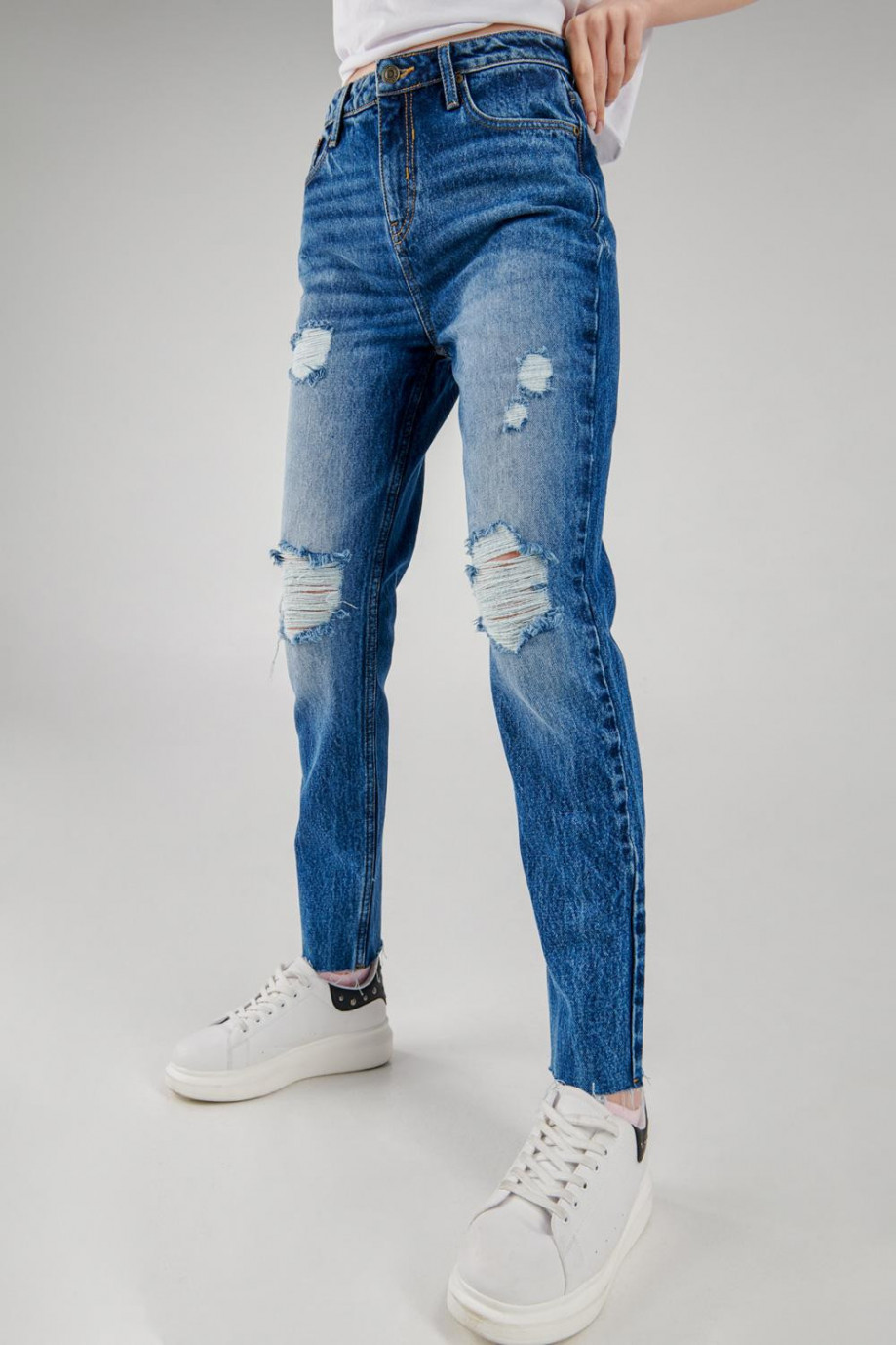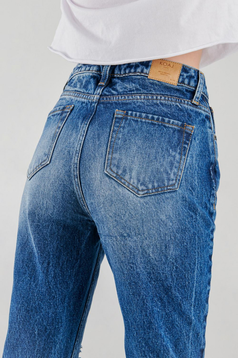 Jean para mujer, 5 bolsillos, tiro alto con lavado medio
