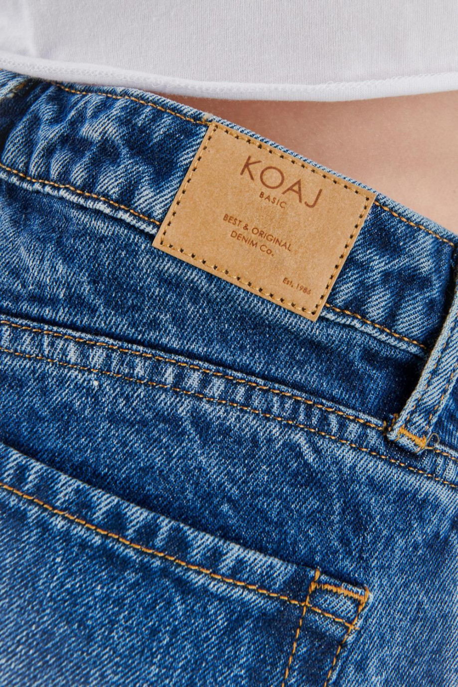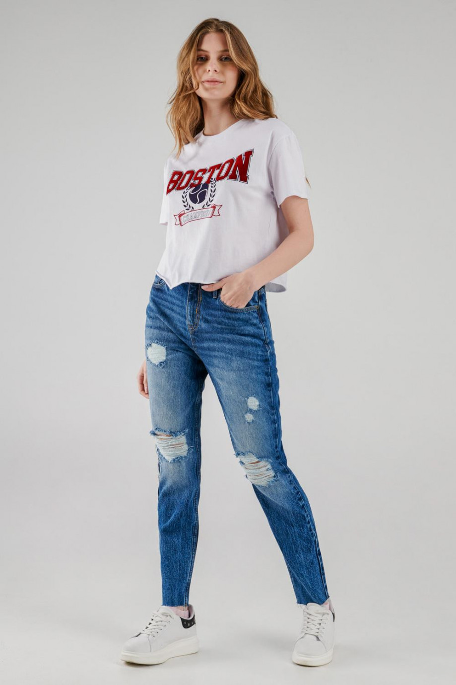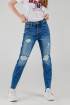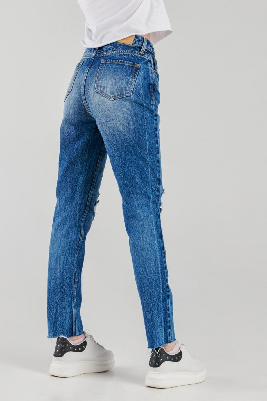 Jean para mujer, 5 bolsillos, tiro alto con lavado medio
