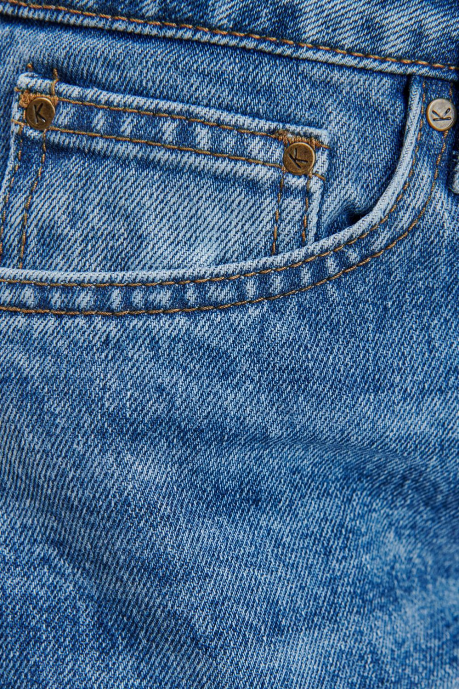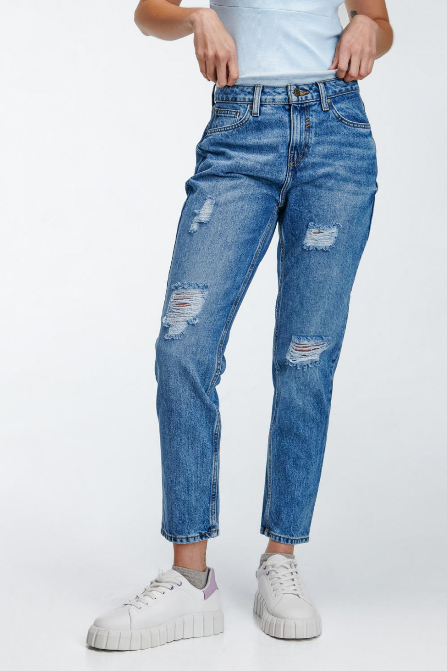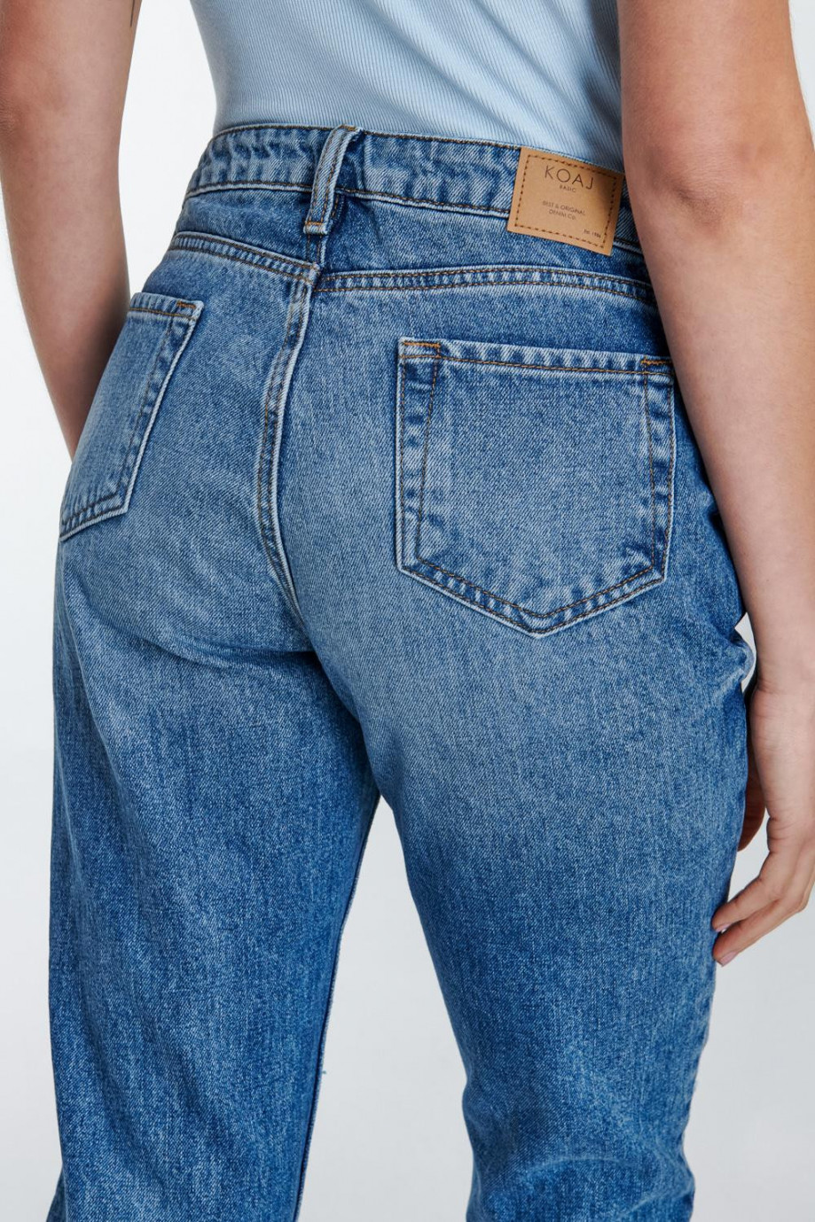 Jean para mujer, 5 bolsillos, tiro alto con lavado medio.