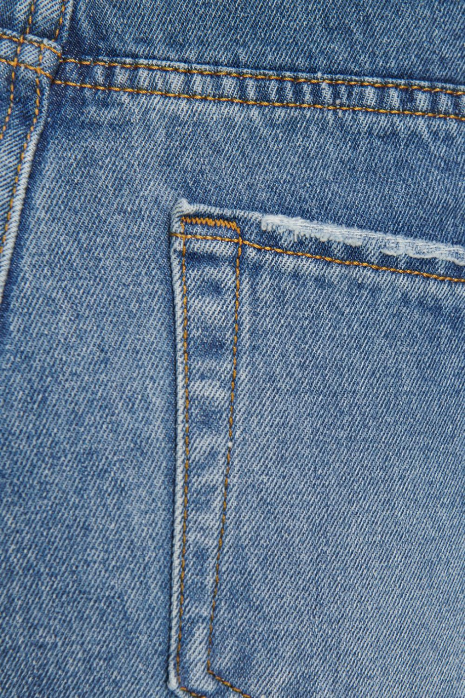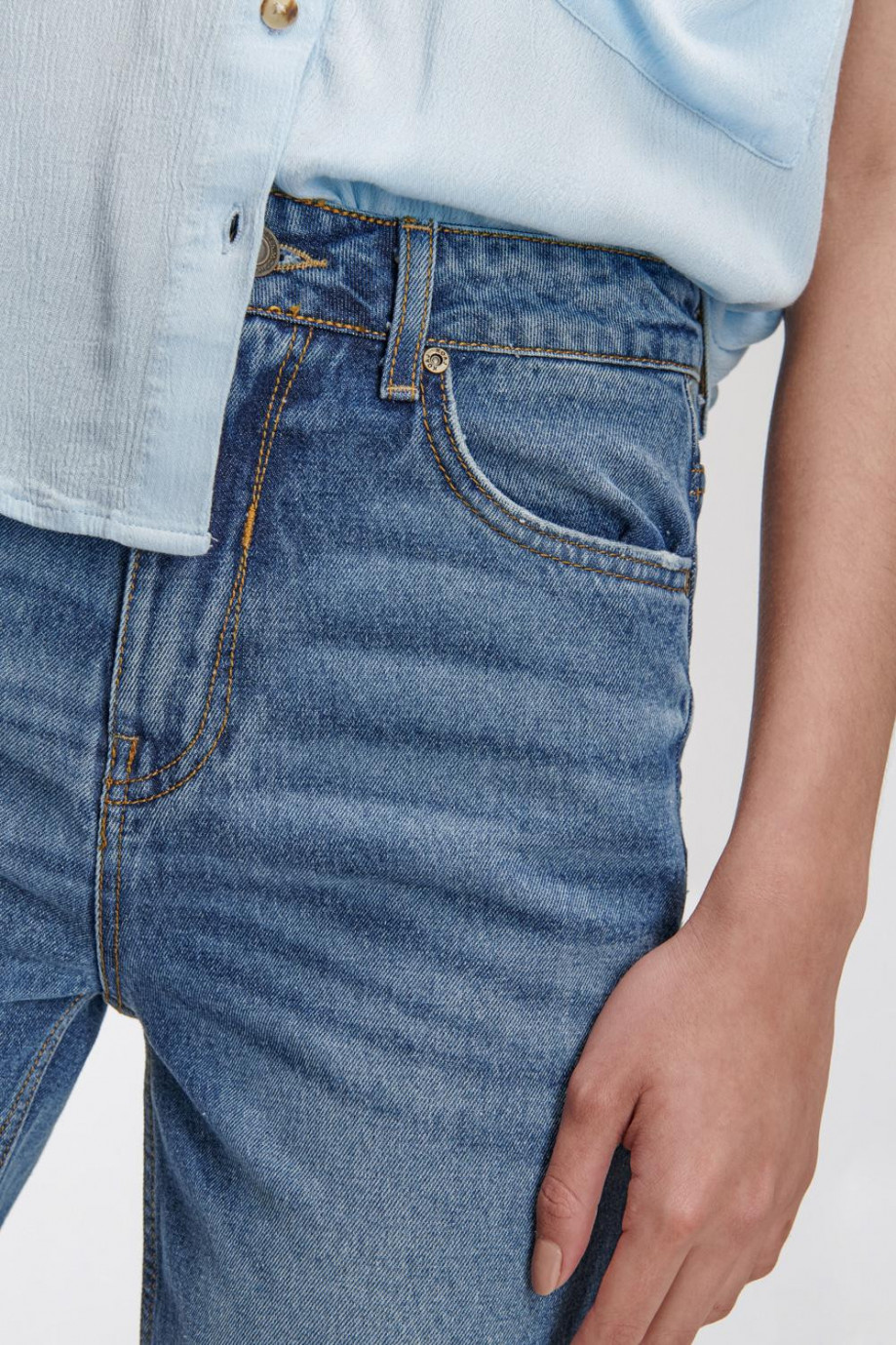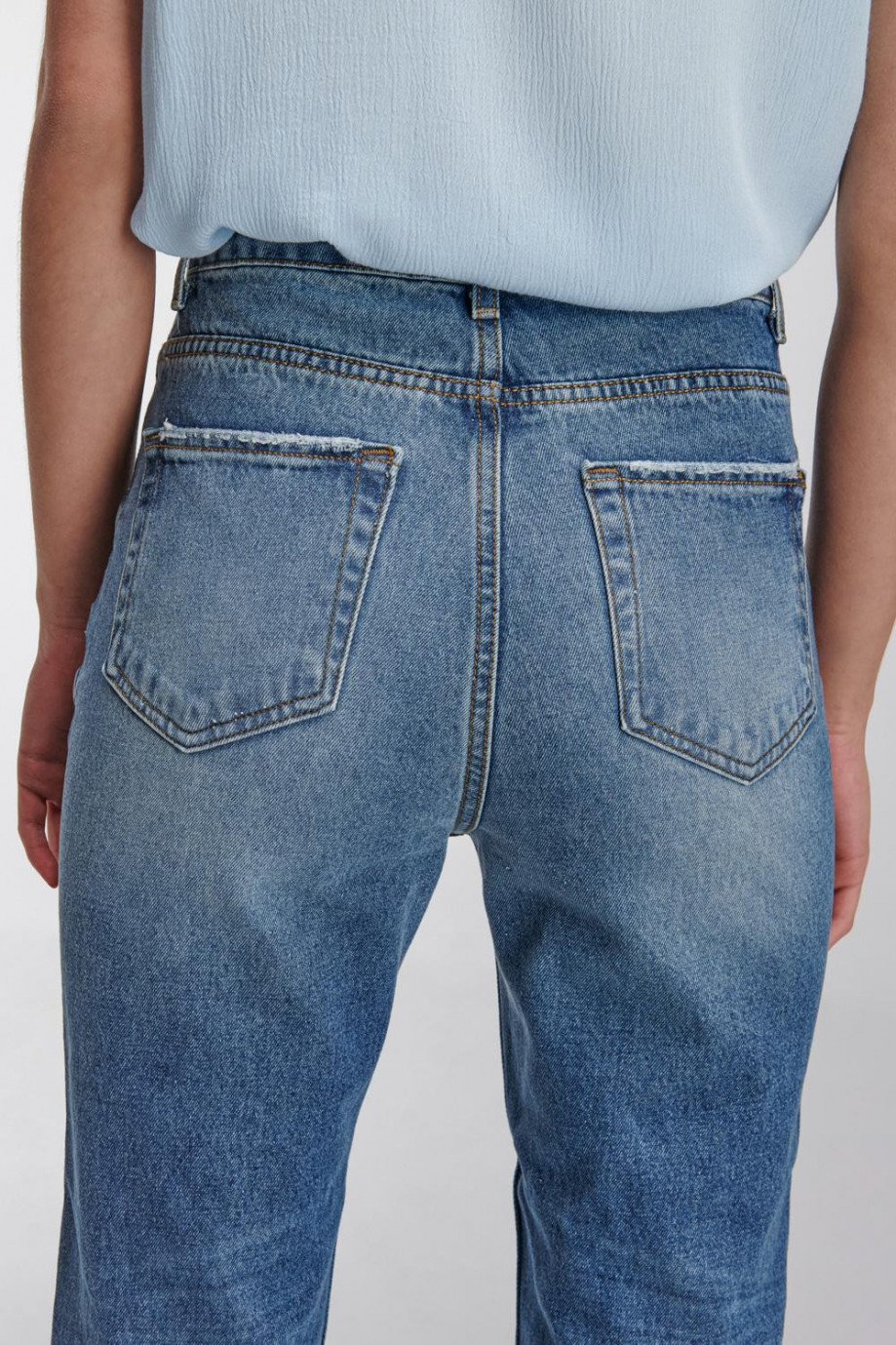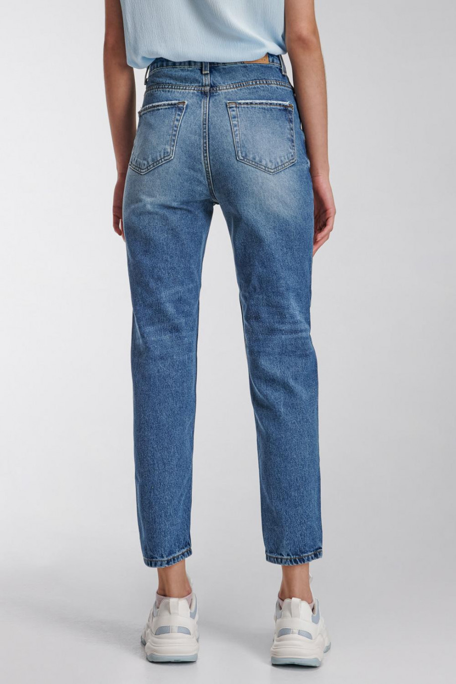 Jean mom fit para mujer, 5 bolsillos, super tiro alto, con proceso azul medio