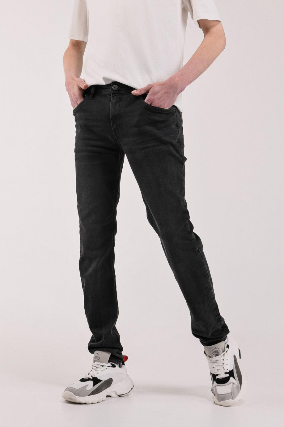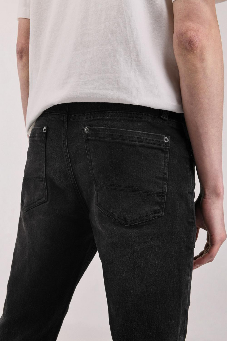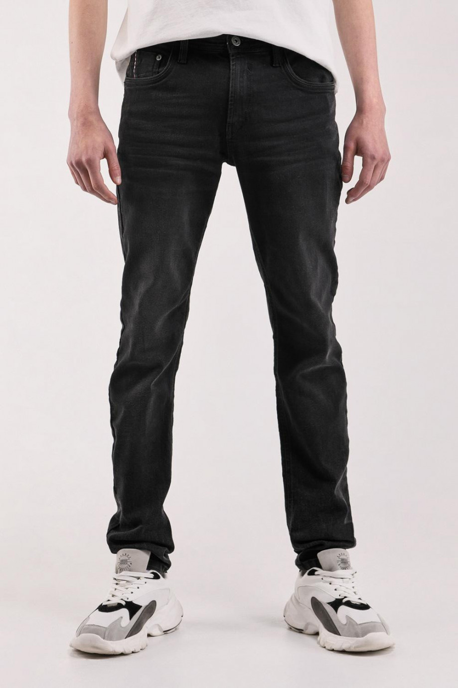 Jean para hombre, 5 bolsillos, tiro bajo ajuste ceñido con lavado negro,