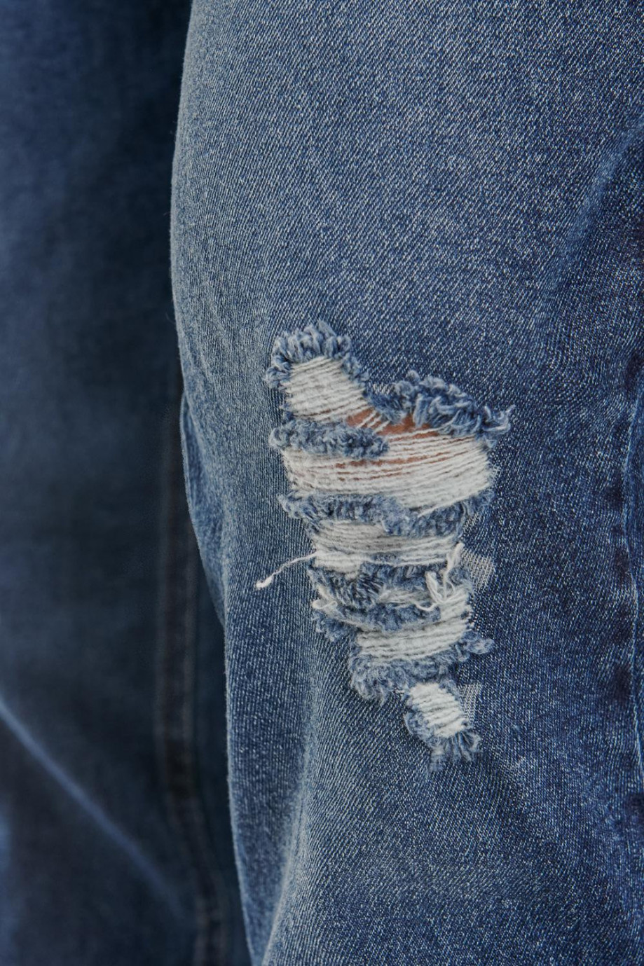 Jean para hombre, 5 bolsillos, tiro bajo ajuste ceñido con lavado oscuro y rotos,