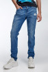 Jean para hombre, 5 bolsillos, tiro bajo ajuste ceñido con lavado medio y rotos,
