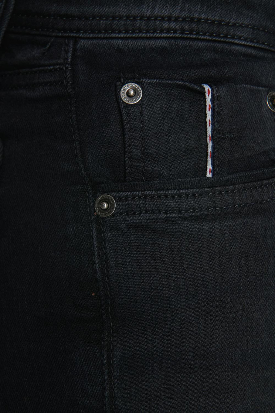 Jean para hombre, 5 bolsillos, tiro bajo ajuste ceñido con lavado negro,