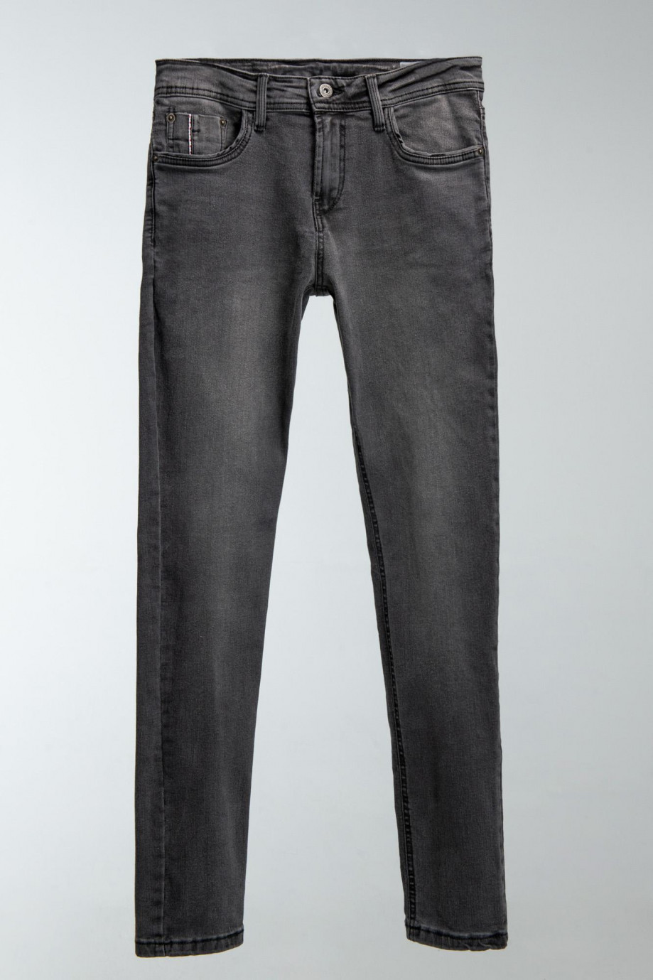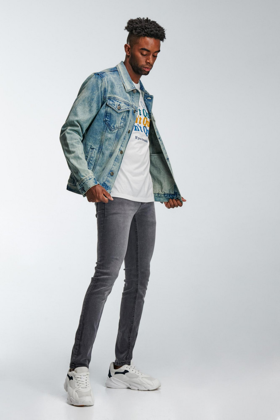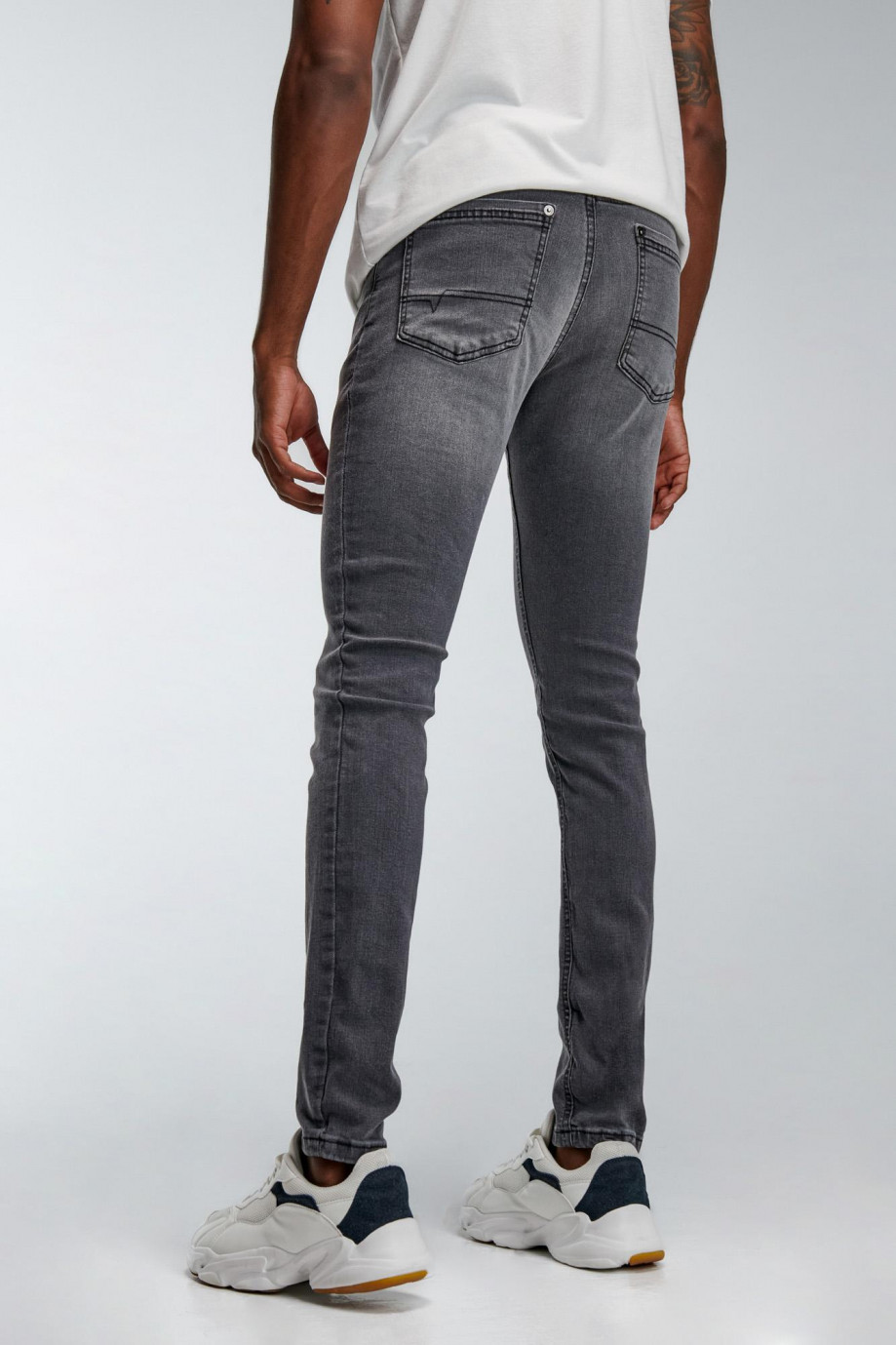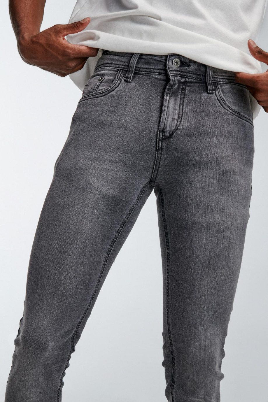 Jean para hombre, 5 bolsillos, tiro bajo ajuste ceñido con lavado gris..
