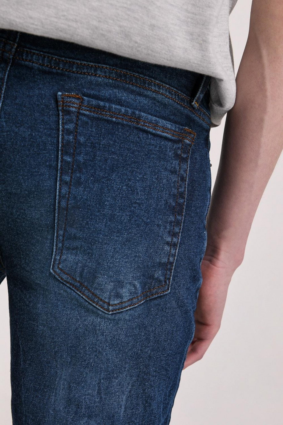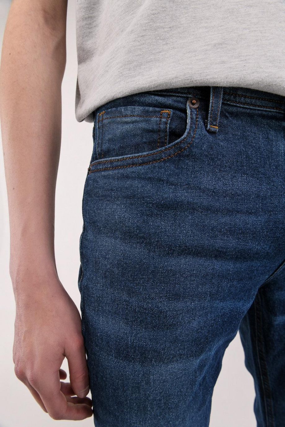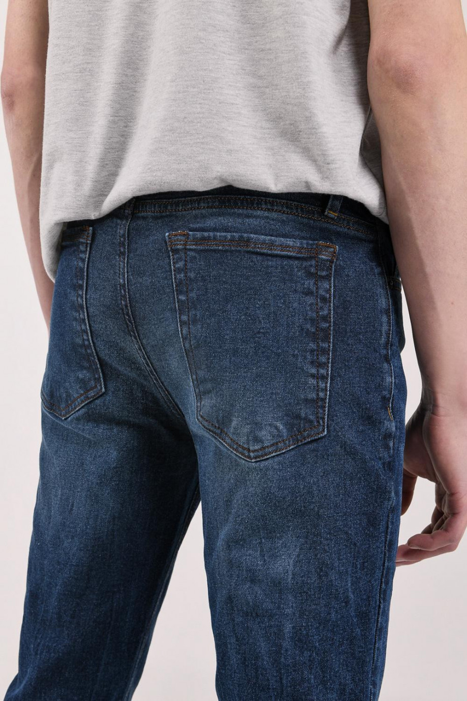 Jean para hombre, 5 bolsillos, tiro bajo, ajuste ceñido con lavado oscuro