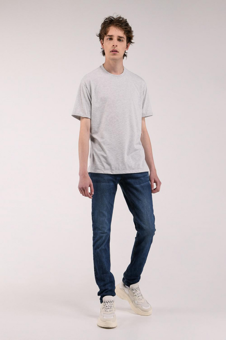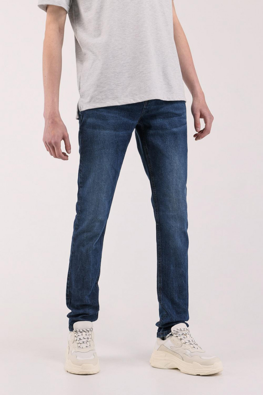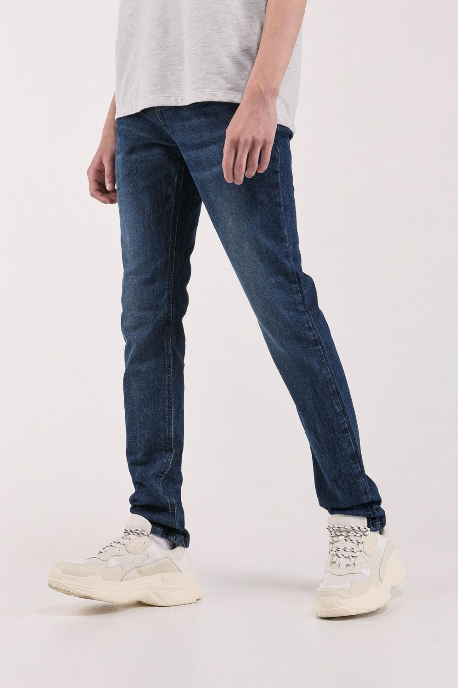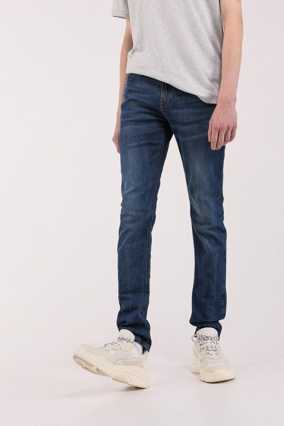 Jean para hombre, 5 bolsillos, tiro bajo, ajuste ceñido con lavado oscuro