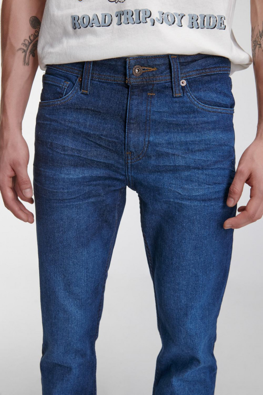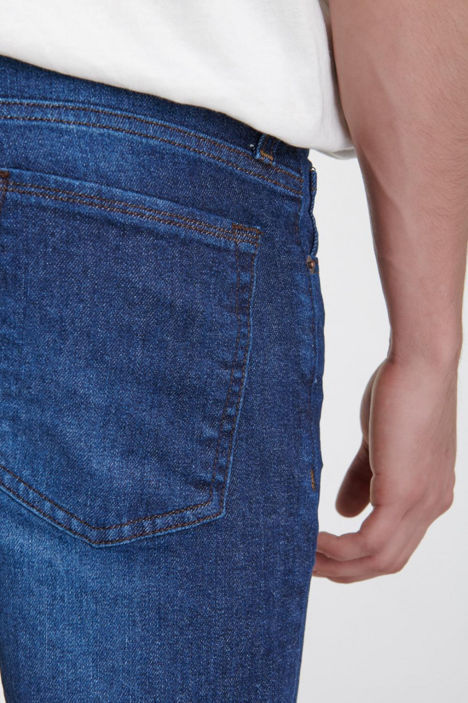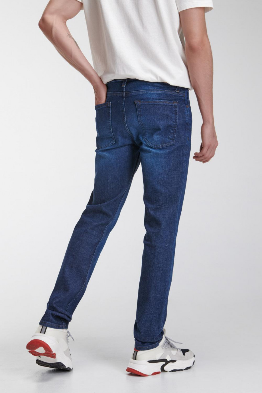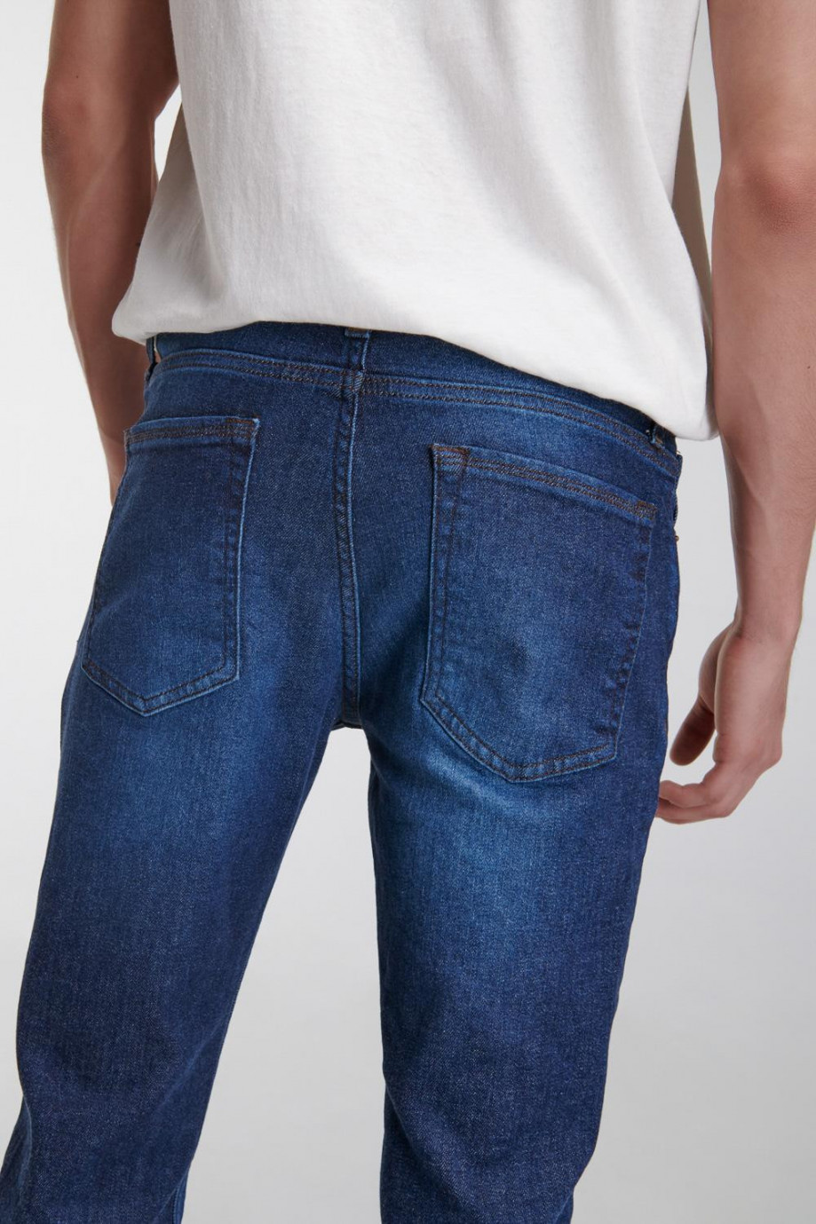 Jean para hombre, 5 bolsillos, tiro bajo, ajuste ceñido con lavado oscuro