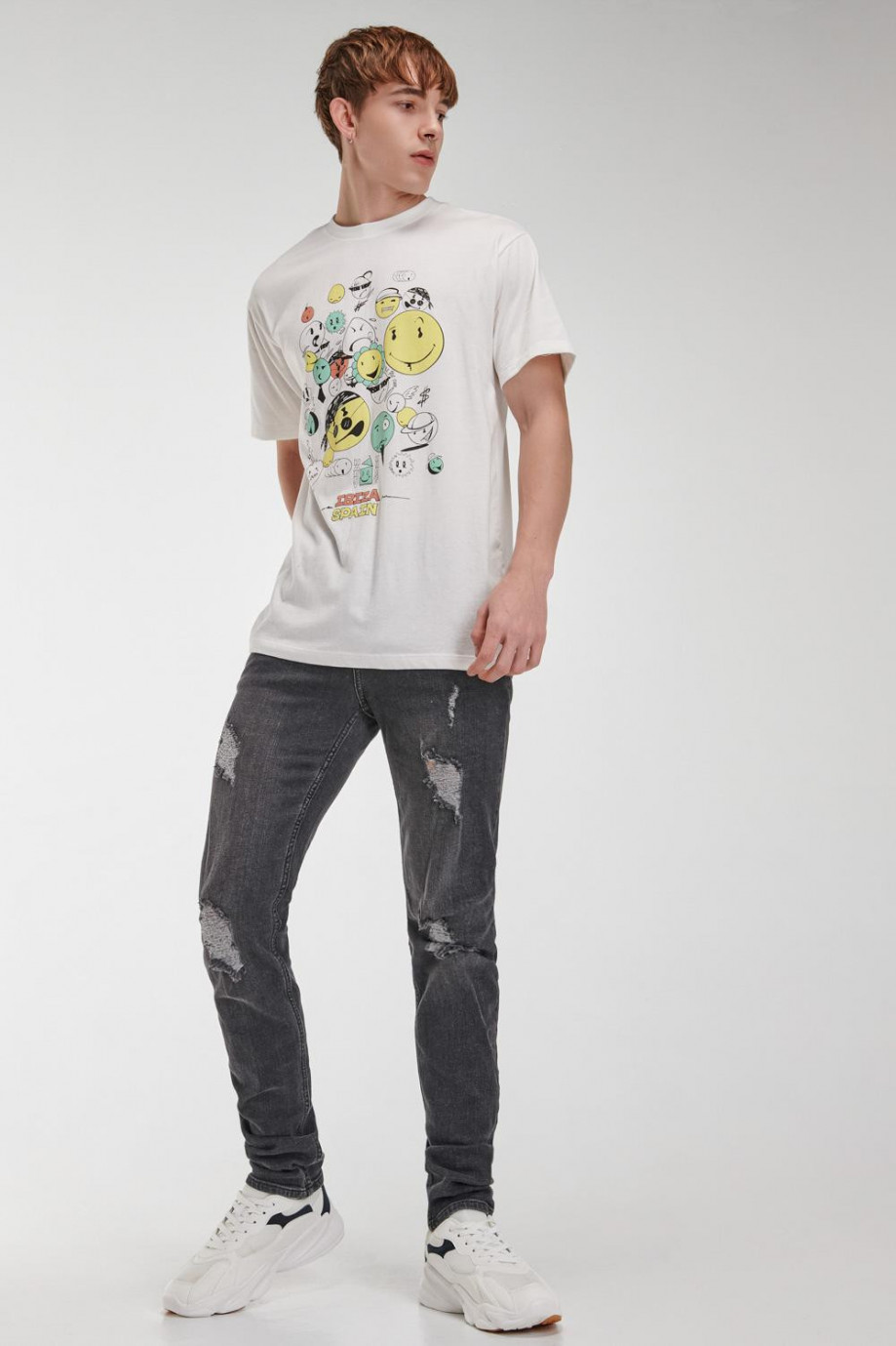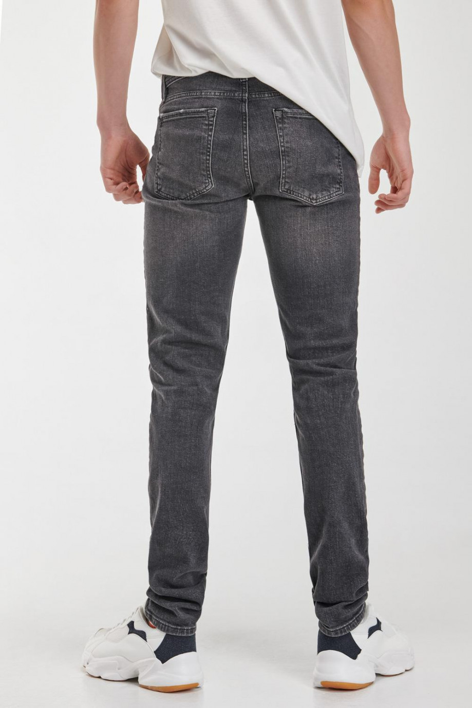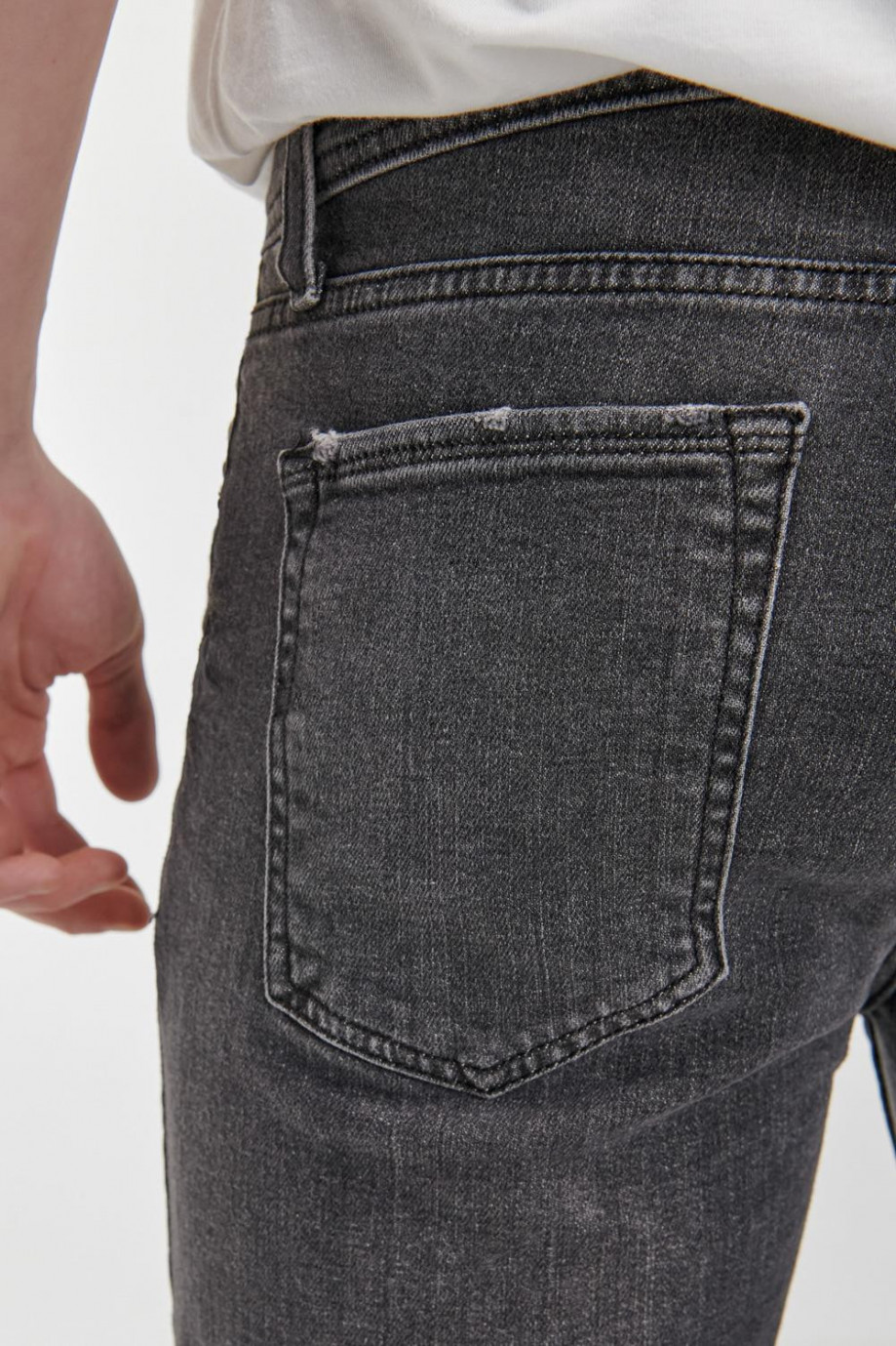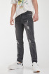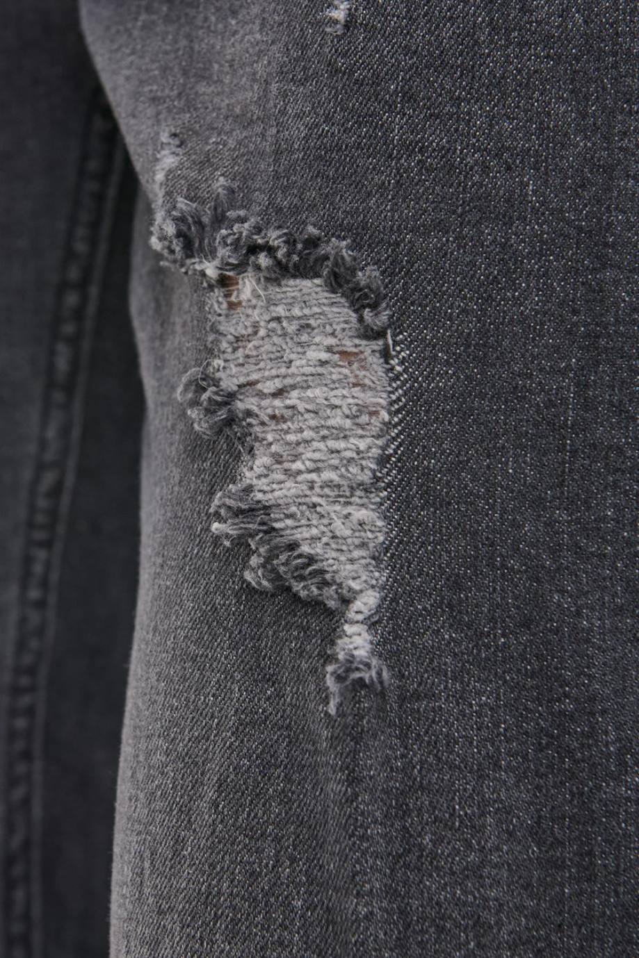 Jean para hombre, 5 bolsillos, tiro bajo, ajuste ceñido con lavado gris y rotos