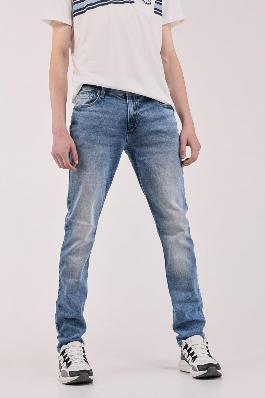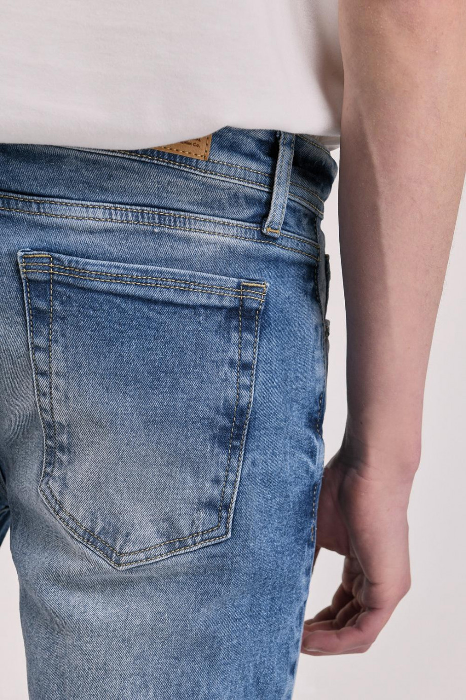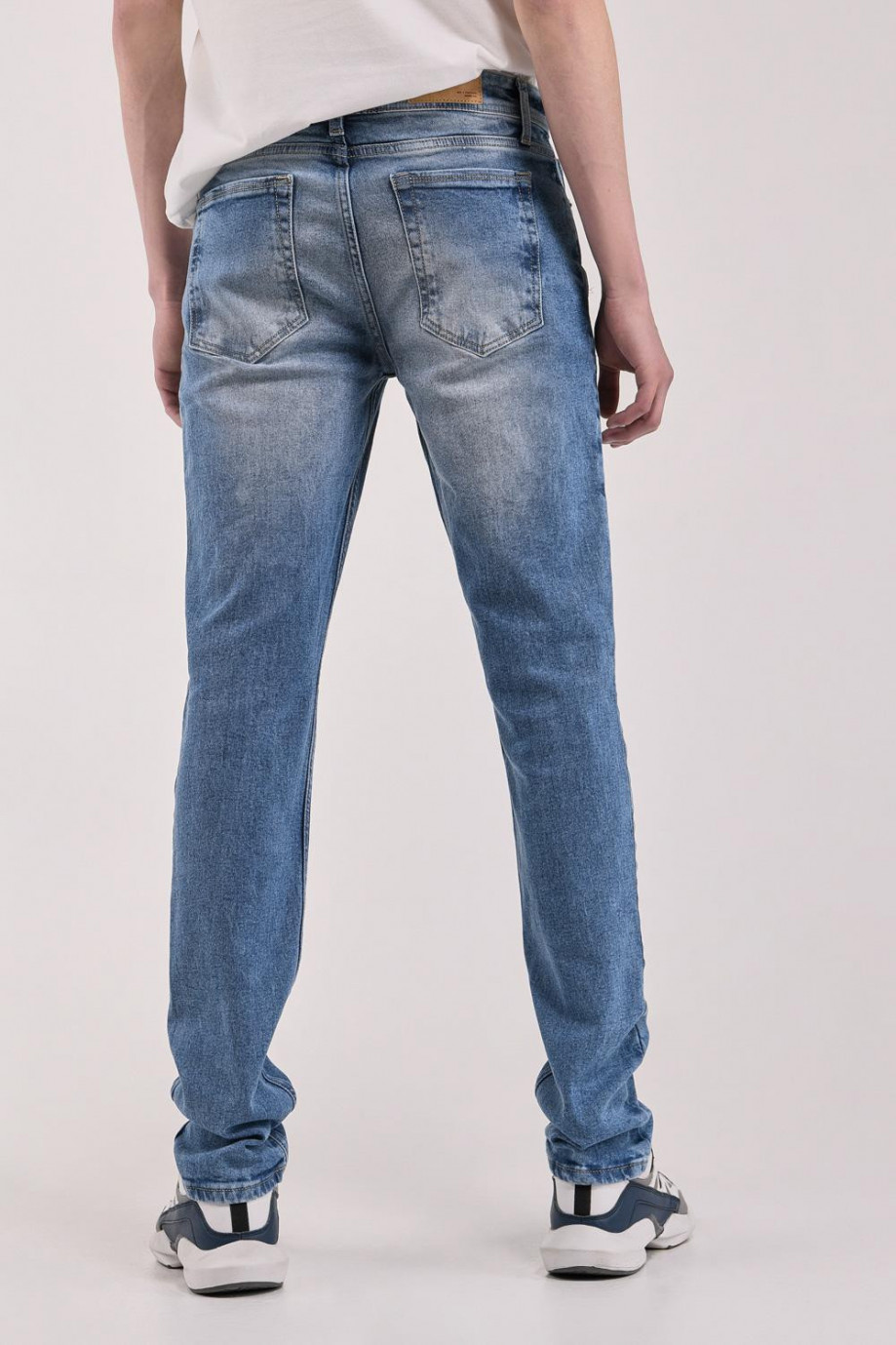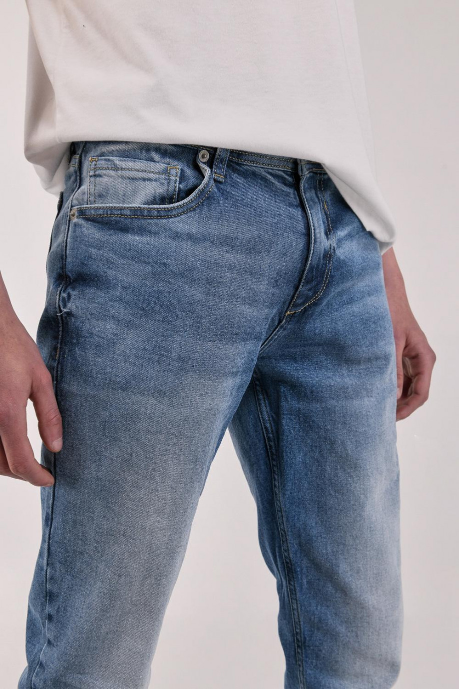Jean para hombre, 5 bolsillos, tiro bajo, ajuste ceñido con lavado muy claro