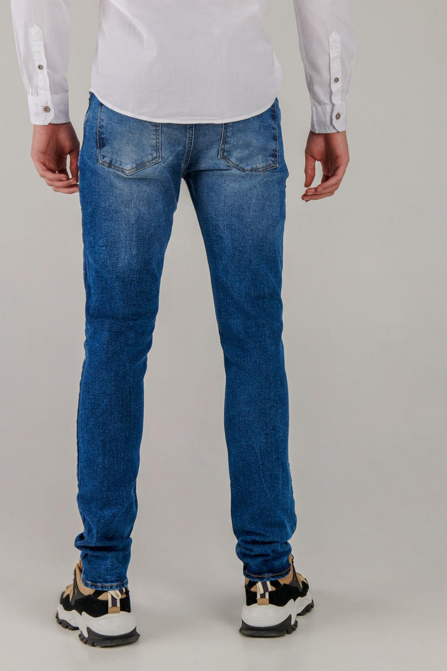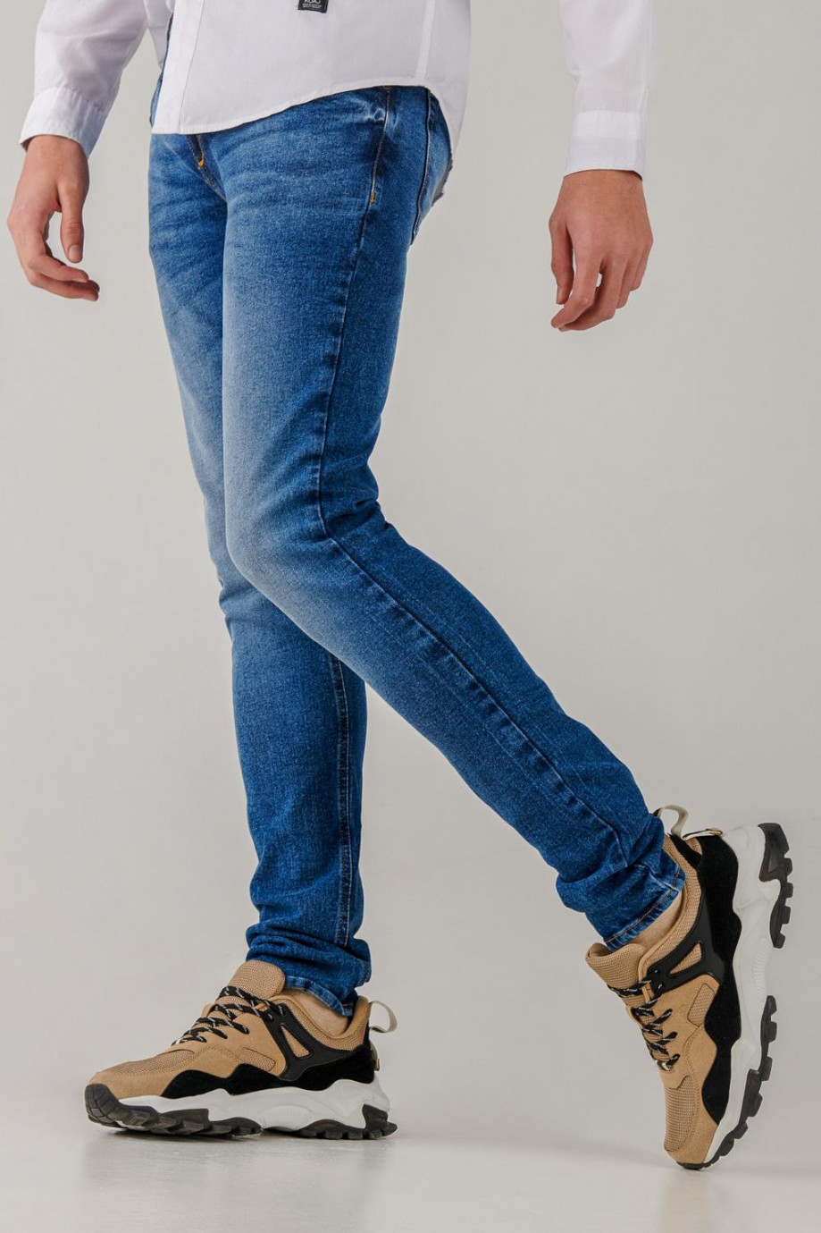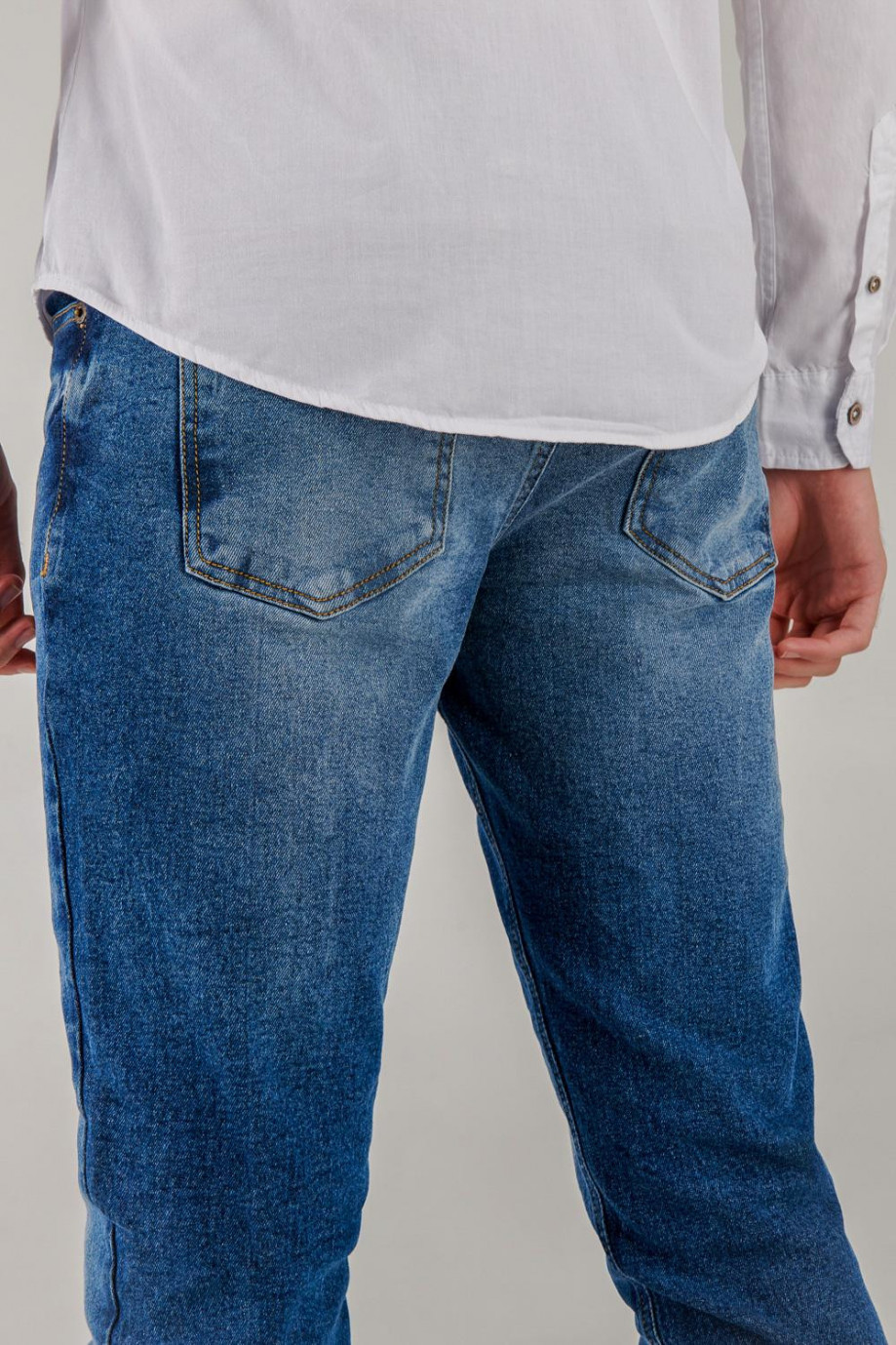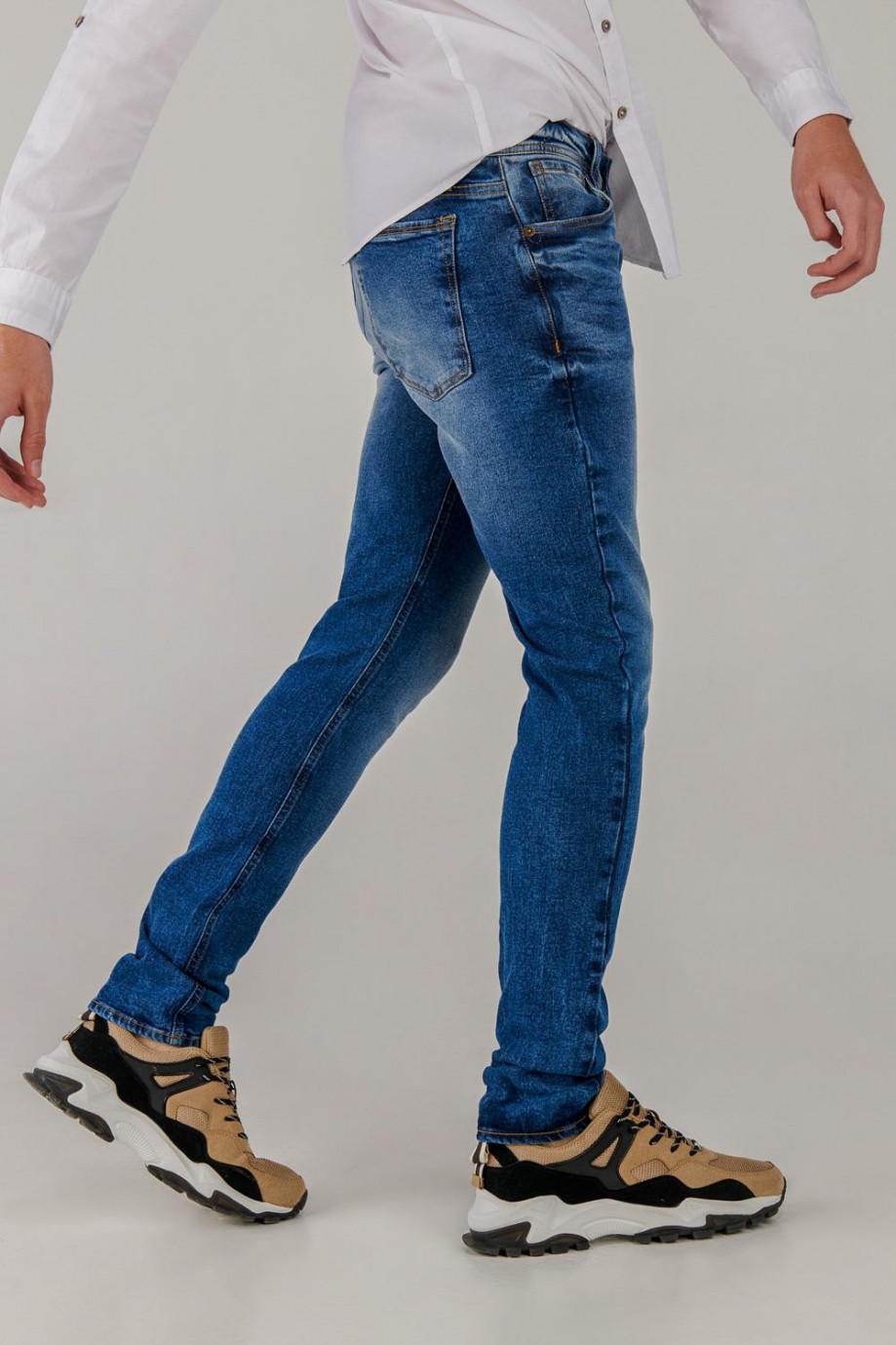 Jean para hombre, 5 bolsillos, tiro bajo, ajuste ceñido con lavado medio