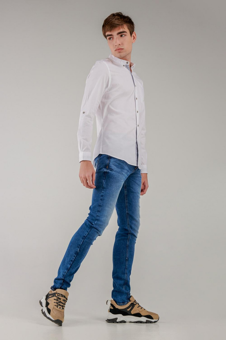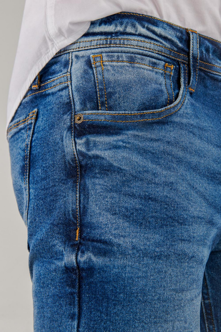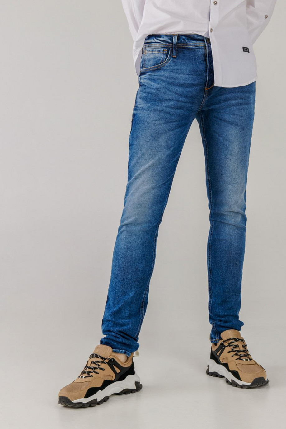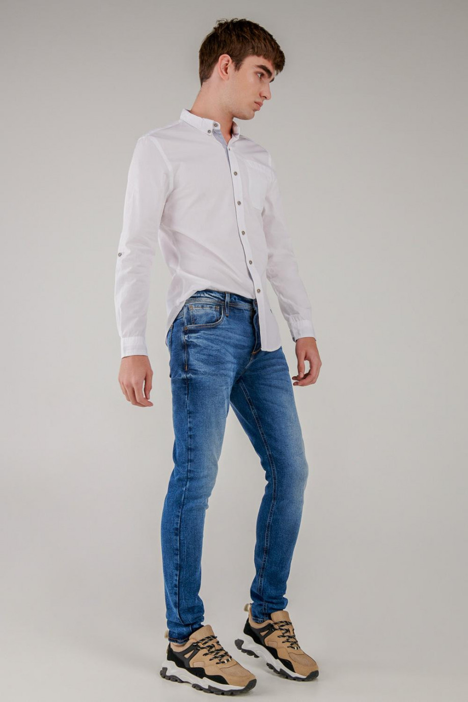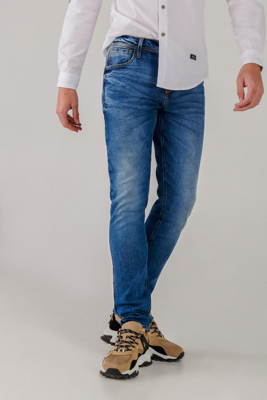 Jean para hombre, 5 bolsillos, tiro bajo, ajuste ceñido con lavado medio
